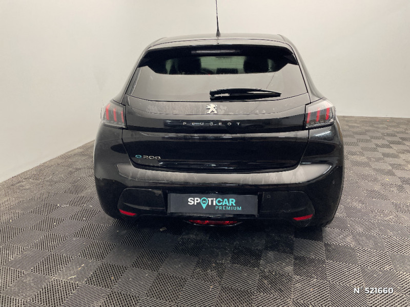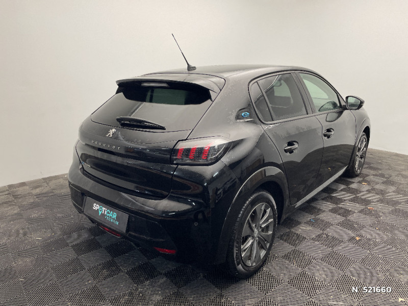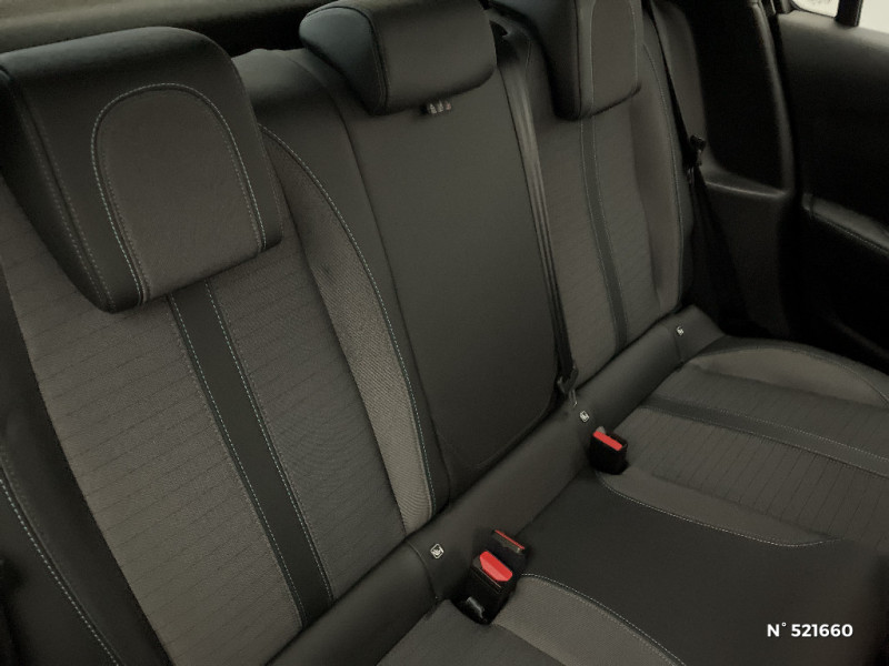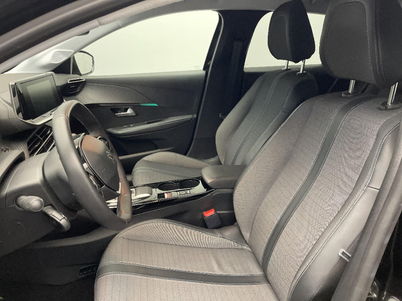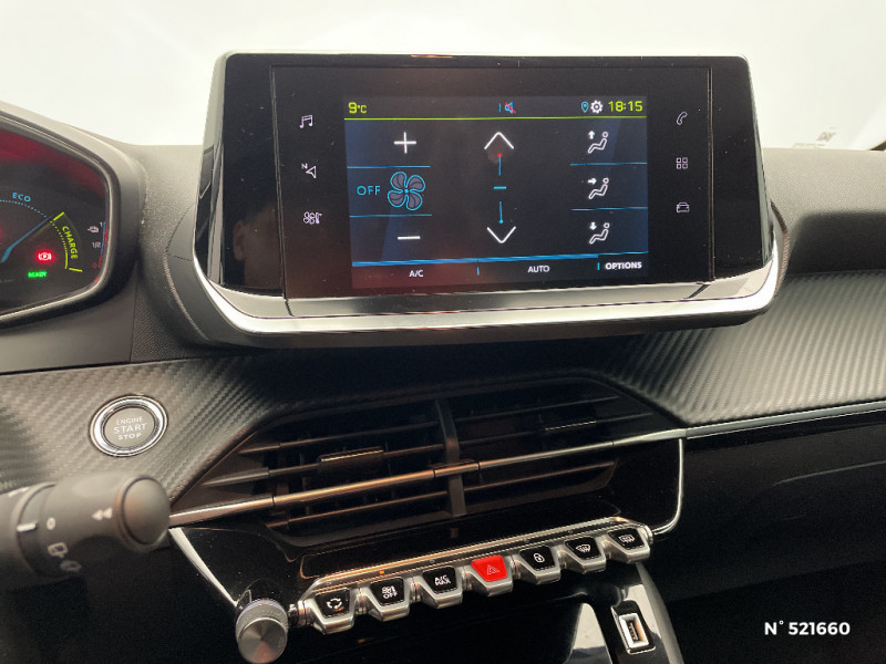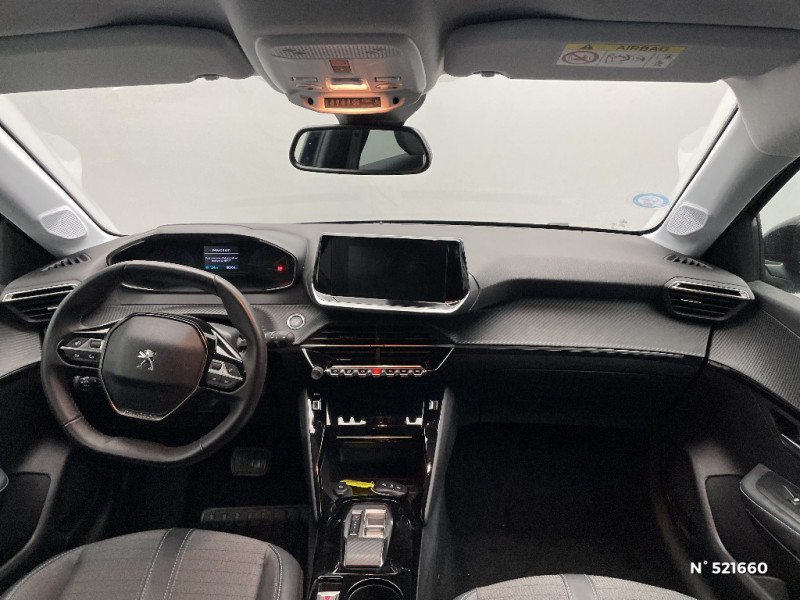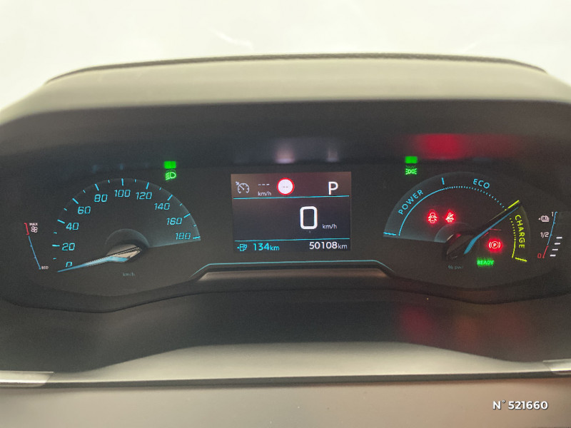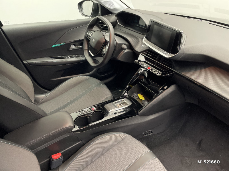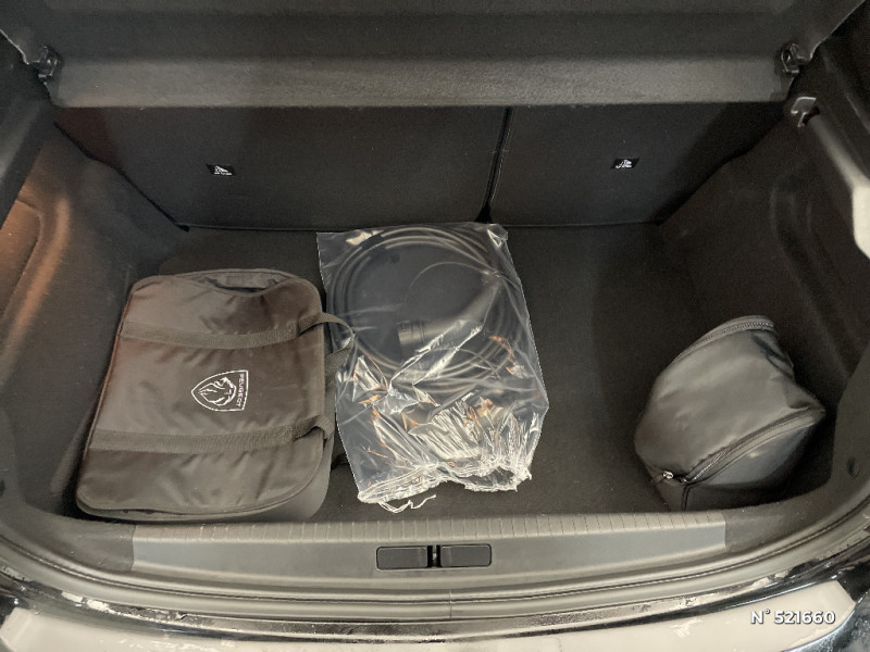 Planche de bord slush et panneaux de portes AV avec décors aspect carbone / Fonction "Mirror Screen" (Apple CarPlay / Android Auto ) / Calandre haut de gamme avec grille supérieure avec marquage couleur caisse et enjoliveur supérieur Noir Brillant / Pack Safety / Passages de roue Noir brillant / Chargeur embarqué 7,4 kW monophasé / Frein de stationnement électrique avec aide au démarrage en pente et serrage automatique / 2 prises USB (Recharge type A) sur console basse pour passagers AR / Eclairage intérieur à ampoules : plafonnier AV à 3 spots (1 lampe et 2 liseuses) / Jupes de pare-chocs AR inférieure et supérieure Noir brillant / Ceinture de sécurité AR centrale 3 points, avec détection de non bouclage / Fixations suivant norme ISOFIX aux places latérales AR avec étiquettes de localisation, et Top Tether / Pare-brise teinté acoustique / Radio avec écran tactile 7" couleur capacitif, 2 prises USB (DATA type A, recharge type C) sur console AV / Programme de Stabilité Electronique (ESC) avec ASR, ABS, REF, AFU, CDS et TSM / Ceintures de sécurité AV conducteur et passager à enrouleurs pyrotechniques avec limiteurs d'effort et détection de non bouclage / Fonction DAB (Radio Numérique Terrestre) / Feux diurnes à LED sous projecteurs / Décor panneaux de portes Noir et Azure / Avertisseur de temps de conduite / Rétroviseur intérieur photosensible / Lève-vitres AR électriques et séquentiels avec antipincement / Seuil de portes lettrage "PEUGEOT" / Projecteurs 'Peugeot LED Technology', indicateurs de direction à ampoules / Volant compact croute de cuir, Lion chromé et commandes multimédia sur volant / Ceintures de sécurité AR latérales avec enrouleurs pyrotechniques, limiteurs d'effort et détection de non bouclage / Démarrage mains libres avec 2 télécommandes 3 boutons / Enjoliveurs de pied milieu Noir brillant avec sérigraphie / Sans seuil de portes lettrage "PEUGEOT" / Peugeot i-Cockpit avec combiné tête haute analogique et matrice couleur 3"5 / Habitacle et ciel de pavillon gris clair / Air conditionné automatique mono-zone / Câble électrique mode 3, prises de charge T2/T2 / Console haute avec accoudoir intégré / Aide graphique et sonore au stationnement AR / PEUGEOT Connect SOS & Assistance et Telemaintenance / Câble électrique mode 2, prises de charge T2/EF type Green'up / Essuie-vitre AV à déclenchement automatique / Eclairage coffre à lampe / Vitres latérales AR et lunette AR chauffante temporisée surteintées / 6 haut-parleurs (2 tweeters et 2 woofers à l'AV et 2 larges bandes à l'AR) / Lève-vitres AV électriques et séquentiels avec antipincement / Détection de sous-gonflage indirecte / Bandeau entre feux AR noir brillant / Sellerie Tri-matières tissu COSY / TEP Mistral, surpiqûres Mentholées / Rétroviseurs extérieurs dégivrants avec réglage et rabattement électriques / Kit de dépannage de pneumatique / 1 Poignée de maintien passager AV / 3 poignées de maintien (1 à l'AV et 2 à l'AR)