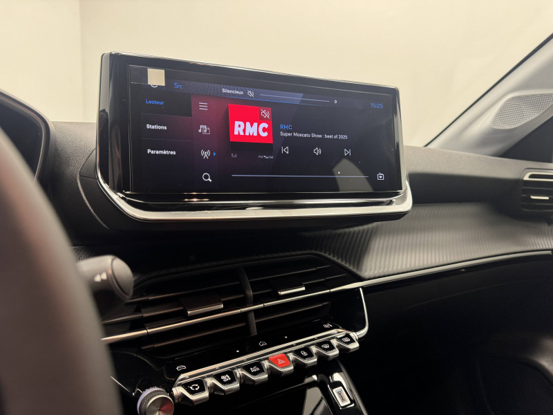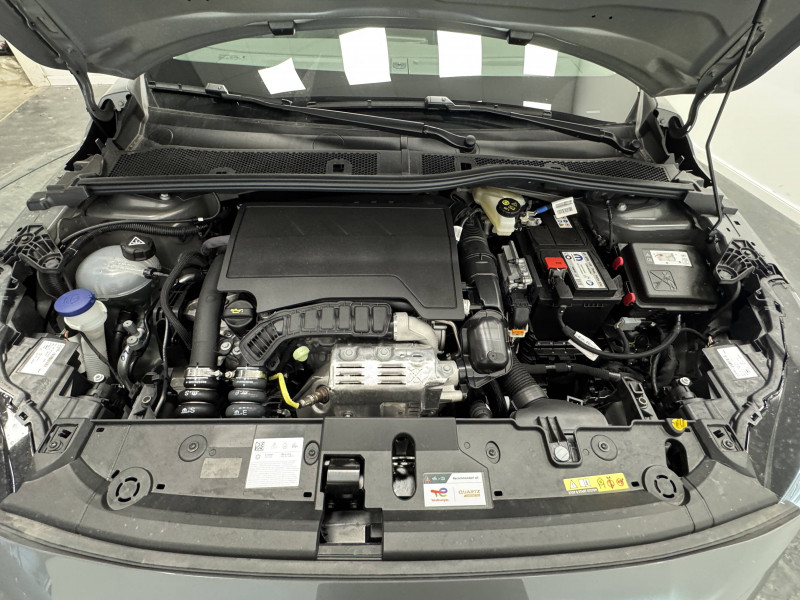 3 poignées de maintien rétractables (1passager à l'AV et 2 à l'AR) / 6 Airbags (Frontaux auto-adaptatifs, latéraux AV et rideaux AV/AR) / 6 HPs (2 tweeters et 2 woofers à l'AV et 2 HPs à l'AR) / Accoudoirs sur portes AV et AR en TEP avec surpiqûre Quartz / Air conditionné automatique mono-zone / Antenne requin / Becquet rapporté Noir Brillant / Boîte manuelle 6 vitesses / Calandre haute de gamme noir grainée avec marquage couleur caisse / Ceinture de sécurité AR centrale 3 points, avec détection de non bouclage / Ceintures de sécurité AR latérales avec enrouleurs pyrotechniques, limiteurs d'effort et détection de non bouclage / Ceintures de sécurité AV conducteur et passager à enrouleurs pyrotechniques avec limiteurs d'effort et détection de non bouclage / Commande d'ouverture des portes couleur caisse / Console haute avec accoudoir & frein de stationnement électrique 1 prise USB type C (Charge) et 1 prise USB type A (Charge) pour passagers AR, Sélecteur de mode de conduite Normal/Eco / Détection de sous-gonflage indirecte / Eclairage coffre à lampe / Eclairage intérieur Plafonnier AV A-DOME 3 ampoules (1 lampe, 2 liseuses AV) / Enjoliveur bas de calandre noir grainé / Enjoliveur DRL Noir grainé / Enjoliveur entre feux AR noir brillant / Enjoliveurs d'ailes Noir Brillant / Enjoliveur supérieur de calandre Noir grainé / ESP Déconnectable avec aide au démarrage en pente / Essuie-vitre AV à déclenchement automatique / Feux AR signature 3 griffes, stop à LEDs, recul et indicateur de direction à lampe / Habitacle et ciel de pavillon clair / Intervalle de maintenance 20 000 km ou 1 an / Jantes alliage 17" diamantées YANAKA bi--ton vernis brillant et Noir Orbital avec inserts Noir Orbital et vernis mat / Jupes AR inférieure noir grainé / Jupes AR supérieure Noir brillant / Lécheurs de vitres Noir mat / Lève-vitres AR électriques et séquentiels avec antipincement / Lève-vitres AV électriques et séquentiels avec antipincement / Pack Safety Régulateur / Limiteur de vitesse, Freinage d'urgence automatique avec alerte risque de collision, Freinage automatique d'urgence avec détection élargie (3 caméras haut de pare-brise) et protection des usagers de la route vulnérables (piétons, cyclistes,), Alerte active de franchissement involontaire de ligne et bas côté, Reconnaissance étendue des panneaux de signalisation et préconisation de vitesse, Alerte attention conducteur / Pack Visibilité Allumage automatique des feux de croisement / Panneaux de porte AV avec médaillon décor Carbone injecté et baguette Noir brillante avec tampographie Quartz / Panneaux de portes AR injectés grain Karsten sans baguette / Peugeot Connect SOS & Assistance et Teleservices SOS & Assistance : Appel d'urgence automatique ou manuel par push SOS, et mise en relation directe avec la plateforme d'assistance PEUGEOT (24h/24 7j/7) , Teleservices : Détection du besoin d'une intervention technique ou d'une opération d'entretien périodique et transmission au réseau PEUGEOT pour prise de rendez vous / Peugeot i-Cockpit avec combiné tête haute 10" numérique / Peugeot i-Connect: Radio DAB avec écran tactile couleur personnalisable 10" HD, Bluetooth - Mirror Screen sans fil (Apple CarPlay/Android Auto) - Wifi - 1 prise USB type C ( Data+charge), 1 prise USB type C (Charge) sur console AV - 1 prise USB type C (Charge) et 1 prise USB type A (Charge) pour passagers AR / Planche de bord Slush avec Décor Carbone slush et baguette Noir brillante avec jonc Chromé / Prise 12V et rangement pour smartphone en façade centrale / Programme de Stabilité Electronique (ESC) avec ASR, ABS, REF, AFU, CDS et TSM / Projecteurs Peugeot LED Technology avec feux diurnes à LED 3 griffes / Rétroviseur intérieur électrochrome / Rétroviseurs extérieurs dégivrants avec réglage et rabattement électriques / Sellerie tissu CASUAL LOMSA embossé, accompagnement TEP Isabella, trimatière LOMSA et surpiqûres Quartz / Seuils de portes aluminium avec lettrage PEUGEOT / Télécommande 3 boutons + clé standard / Visiopark 1 Caméra de recul HD, aide au stationnement AV et AR graphique et sonore / Vitres latérales AR et lunette AR chauffante temporisée surteintées / Volant compact en croûte de cuir avec commandes multimédia intégrées