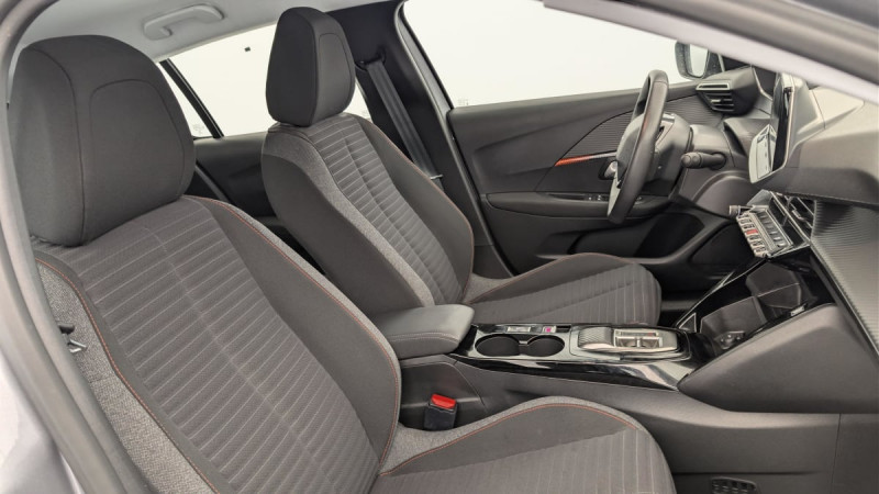 Détection de sous-gonflage indirecte / Lève-vitres AR électriques et séquentiels avec antipincement / Pack Safety : Reconnaissance des panneaux de vitesse et préconisation de vitesse Alerte active de franchissement involontaire de ligne et bas côté Freinage d'urgence automatique (Active Safety Brake) avec alerte risque de collision (Distance Alert) Alerte attention conducteur par caméra / Frein de stationnement électrique avec aide au démarrage en pente et serrage automatique / Ceintures de sécurité AV conducteur et passager à enrouleurs pyrotechniques avec limiteurs d'effort et détection de non bouclage / Ceinture de sécurité AR centrale 3 points, avec détection de non bouclage / Ceintures de sécurité AR latérales avec enrouleurs pyrotechniques, limiteurs d'effort et détection de non bouclage / Programme de Stabilité Electronique (ESC) avec ASR, ABS, REF, AFU, CDS et TSM / Fixations suivant norme ISOFIX aux places latérales AR avec étiquettes de localisation, et Top Tether / Chargeur embarqué 7,4kW monophasé / Passages de roue Noir brillant / Habitacle et ciel de pavillon gris clair / Volant compact croute de cuir, Lion chromé et commandes multimédia sur volant / Eclairage intérieur à ampoules : plafonnier AV à 3 spots (1 lampe et 2 liseuses) / Peugeot i-Cockpit avec combiné tête haute analogique et matrice couleur 3,5" / Rétroviseur intérieur à réglage jour/nuit manuel / 6 HP (2 tweeters et 2 woofers à l'AV et 2 larges bandes à l'AR) / Eclairage coffre à lampe / Bandeau entre feux AR Noir brillant / Feux diurnes à LED sous projecteurs / Console haute avec accoudoir intégré / Vitres latérales AR et lunette AR chauffante temporisée teintées / Fonction DAB (Radio Numérique Terrestre) / Air conditionné automatique mono-zone / Sellerie Tri matière Tissu PNEUMA 3D, surpiqûre Orange Intense / Planche de bord slush et panneaux de portes AV avec décors aspect carbone / Calandre haut de gamme avec grille supérieure avec marquage couleur caisse et enjoliveur supérieur Noir Brillant / Jupes de pare-chocs AR inférieure et supérieure Noir grainée / Radio avec écran tactile 7" couleur capacitif, 2 prises USB (DATA type A, recharge type C) sur console AV / 2 prises USB (Recharge type A) sur console basse pour passagers AR / Fonction "Mirror Screen" (Apple CarPlay / Android Auto ) / Rétroviseurs extérieurs dégivrants avec réglage et rabattement électriques / PEUGEOT Connect SOS / Jantes tôle 16'' avec enjoliveurs PLAKA / Câble électrique mode 3, prises de charge T2/T2 / Lève-vitres AV électriques et séquentiels avec antipincement / Kit de dépannage de pneumatique / Pare-brise teinté acoustique / / Véhicules équivalents: Clio - C3 - Yaris