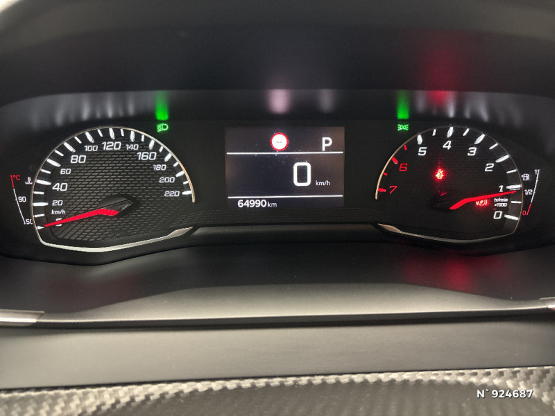 Volant compact croute de cuir, Lion chromé et commandes multimédia sur volant / Planche de bord slush et panneaux de portes AV avec décors aspect carbone / Frein de stationnement électrique avec aide au démarrage en pente et serrage automatique / Projecteurs 'Peugeot LED Technology' / Enjoliveurs de pied milieu Noir brillant avec sérigraphie / Monogramme extérieur "Style" Noir Onyx / Décor panneaux de portes Noir et Azure / Pack Safety / Lève-vitres AR électriques et séquentiels avec antipincement / Pare-brise teinté acoustique / Télécommande 3 boutons + clé standard / Bandeau entre feux AR noir brillant / Feux diurnes à LED sous projecteurs / Sellerie Tri matière Tissu PNEUMA 3D, surpiqûre Bleu Azure / Ceinture de sécurité AR centrale 3 points, avec détection de non bouclage / Programme de Stabilité Electronique (ESC) avec ASR, ABS, REF, AFU, CDS et TSM / Rétroviseur intérieur à réglage jour/nuit manuel / Kit de dépannage de pneumatique / Fonction Mirror Screen / Peugeot i-Cockpit avec combiné tête haute analogique et matrice couleur 3"5 / Radio avec écran tactile 7" couleur capacitif, 2 prises USB (DATA type A, recharge type C) sur console AV / 2 prises USB (Recharge type A) sur console basse pour passagers AR / Eclairage coffre à lampe / 6 haut-parleurs (2 tweeters et 2 woofers à l'AV et 2 larges bandes à l'AR) / Ceintures de sécurité AR latérales avec enrouleurs pyrotechniques, limiteurs d'effort et détection de non bouclage / Jupes de pare-chocs AR inférieure et supérieure Noir grainée / Ceintures de sécurité AV conducteur et passager à enrouleurs pyrotechniques avec limiteurs d'effort et détection de non bouclage / Fonction "Mirror Screen" (Apple CarPlay / Android Auto ) / Surtapis Style / Détection de sous-gonflage indirecte / 1 Poignée de maintien passager AV / 3 poignées de maintien (1 à l'AV et 2 à l'AR) / Fixations suivant norme ISOFIX aux places latérales AR avec étiquettes de localisation, et Top Tether / Rétroviseurs extérieurs dégivrants avec réglage et rabattement électriques / Console haute avec accoudoir intégré / Radio avec écran tactile capacitif 7" couleur, 1 prise USB type A (DATA) sur console AV / Seuils de portes "Peugeot" / Eclairage intérieur à ampoules : plafonnier AV à 3 spots (1 lampe et 2 liseuses) / Calandre avec grille supérieure avec marquage Chrome Brillant et enjoliveur supérieur noir grainé / Fonction DAB (Radio Numérique Terrestre) / Lève-vitres AV électriques et séquentiels avec antipincement / Seuil de portes lettrage "PEUGEOT" / Projecteurs 'Peugeot LED Technology', indicateurs de direction à ampoules / Radio avec écran tactile capacitif 7" couleur, 1 prise USB (DATA type A) sur console AV / Habitacle et ciel de pavillon gris clair / Vitres latérales AR et lunette AR chauffante temporisée surteintées / Aide graphique et sonore au stationnement AR / Jantes alliage 16" SOHO diamantées peintes Gris Storm / Sellerie Tissu PNEUMA 3D, surpiqûre Bleu Azur