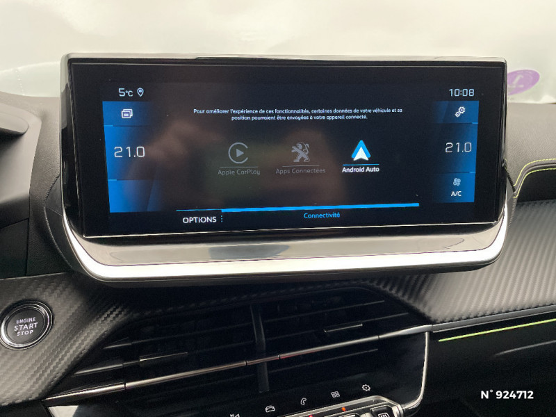 Lève-vitres AV électriques et séquentiels avec antipincement / Commutation automatique des feux de route / feux de croisement / Siège passager AV à réglage manuel en hauteur / Jupes de pare-chocs AR inférieure et supérieure Noir brillant / Monogramme extérieur GT sur custode et volet de coffre / Lécheurs de vitres latérales Noir Brillant / Canule d'échappement chromée (droite) / Planche de bord slush surpiquée et panneaux de portes AV avec décors aspect carbone et éclairage polyambiant 8 couleurs / Seuil de portes lettrage "PEUGEOT" / Vitres latérales AR et lunette AR chauffante temporisée surteintées / Surtapis AV et AR noirs avec surpiqûres Vert Adamite / Aide graphique et sonore au stationnement AR / Frein de stationnement électrique avec aide au démarrage en pente et serrage automatique / Démarrage mains libres avec 2 télécommandes 3 boutons / Décor panneaux de portes Noir et Azure / PEUGEOT Connect SOS & Assistance et Telemaintenance / Pack Safety / Aide graphique et sonore au stationnement AV / Lève-vitres AR électriques et séquentiels avec antipincement / Seuils de portes AV en Inox / Décor panneaux de portes de portes Noir et Orange / Pare-brise teinté acoustique / Bandeau entre feux AR noir brillant / 4 poignées de maintien (2 à l'AV et 2 à l'AR) / Navigation 3D connectée avec reconnaissance vocale, écran tactile capacitif 10" HD / Feux diurnes à LED sous projecteurs / Pédalier aluminium / Ceinture de sécurité AR centrale 3 points, avec détection de non bouclage / Programme de Stabilité Electronique (ESC) avec ASR, ABS, REF, AFU, CDS et TSM / Avertisseur de temps de conduite / Jantes alliage 17'' CAMDEN avec inserts Gris Storm mat / Peugeot i-Cockpit 3D avec combiné tête haute numérique 3D / Radio avec écran tactile 7" couleur capacitif, 2 prises USB (DATA type A, recharge type C) sur console AV / 2 prises USB (Recharge type A) sur console basse pour passagers AR / Rétroviseur intérieur photosensible frameless / Ceintures de sécurité AR latérales avec enrouleurs pyrotechniques, limiteurs d'effort et détection de non bouclage / Ceintures de sécurité AV conducteur et passager à enrouleurs pyrotechniques avec limiteurs d'effort et détection de non bouclage / Habitacle et ciel de pavillon noir / Visio Park 1 Caméra de recul avec restitution sur l'écran tactile d'une vue AR et d'une vue de dessus de l'environnement AR du véhicule + Aide graphique et sonore au stationnement AR / Fixations suivant norme ISOFIX aux places latérales AR avec étiquettes de localisation, et Top Tether / Fonction "Mirror Screen" (Apple CarPlay / Android Auto ) / Détection de sous-gonflage indirecte / Eclairage coffre à lampe / 6 haut-parleurs (2 tweeters et 2 woofers à l'AV et 2 larges bandes à l'AR) / Enjoliveurs de pied milieu brillant avec sérigraphies AV / 1 Poignée de maintien passager AV / Fixations suivant norme ISOFIX sur siège passager AV avec étiquettes de localisation / Console haute avec accoudoir intégré / Rétroviseurs extérieurs dégivrants avec réglage et rabattement électriques / Calandre haut de gamme avec grille supérieure avec marquage Dark Chrome et enjoliveur supérieur Noir Brillant / Fonction DAB (Radio Numérique Terrestre) / Passages de roue Noir brillant / Navigation 3D connectée avec reconnaissance vocale, écran tactile capacitif 7" 2 prises USB sur console AV, Cartographie Europe,Trafic en temps réel by TomTom Services (Informations trafic, Stations services, Parkings, Météo, Recherche Locale), abonnement 3 ans inclus, Zones de danger by TomTom Services, abonnement 3 ans inclus. Connexion automatique et permanente via carte SIM intégrée au véhicule / Jantes alliage 17'' BRONX avec inserts Noir Brillant et vernis Dark Coat / Sellerie Tri matière Tissu CAPY/TEP surpiqûres Vert Adamite / Volant compact cuir fleur avec laçage vert, Lion chromé et badge GT et commandes multimédia sur volant / Air conditionné automatique mono-zone / Projecteurs "Peugeot Full LED Technology" avec signature 3 griffes / Essuie-vitre AV à déclenchement automatique / Eclairage intérieur à LED : plafonniers tactiles AV (1 lampe et 2 liseuses) et AR (2 liseuses), pares-soleils, cave à pieds