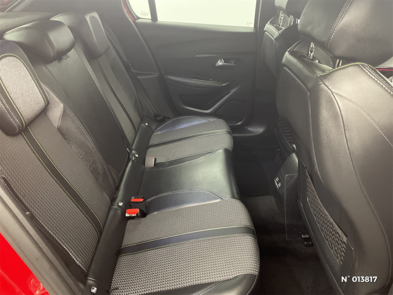 Vitres latérales AR et lunette AR surteintées / PEUGEOT Connect SOS & Assistance et Telemaintenance / Frein de stationnement électrique avec aide au démarrage en pente et serrage automatique / Siège passager AV à réglage manuel en hauteur / Ceintures de sécurité AV conducteur et passager à enrouleurs pyrotechniques avec limiteurs d'effort et détection de non bouclage / Ceinture de sécurité AR centrale 3 points, avec détection de non bouclage / Ceintures de sécurité AR latérales, avec enrouleurs pyrotechniques et limiteurs d'effort et détection de non bouclage / Programme de Stabilité Electronique (ESC) avec ASR, ABS, REF, AFU, CDS et TSM / Fixations suivant norme ISOFIX aux places latérales AR avec étiquettes de localisation, et Top Tether / Fixations suivant norme ISOFIX sur siège passager AV avec étiquettes de localisation / Canule d'échappement chromée (droite) / Jupes de pare-chocs AR inférieure et supérieure Noir brillant / Lécheurs de vitres latérales Noir Brillant / Passages de roue Noir brillant / Planche de bord slush surpiquée et panneaux de portes AV avec décors aspect carbone et éclairage polyambiant 8 couleurs / Surtapis AV et AR noirs avec surpiqures Vert Adamite / Volant compact cuir fleur avec laçage vert, Lion chromé et badge GT et commandes multimédia sur volant / Eclairage intérieur à LED : plafonniers tactiles AV (1 lampe et 2 liseuses) et AR (2 liseuses), pares-soleils, cave à pieds / Peugeot i-Cockpit 3D avec combiné tête haute numérique 3D / 4 poignées de maintien (2 à l'AV et 2 à l'AR) / Rétroviseur intérieur photosensible frameless / 6 haut-parleurs (2 tweeters et 2 woofers à l'AV et 2 larges bandes à l'AR) / Eclairage coffre à lampe / Bandeau entre feux AR noir brillant / Navigation 3D connectée avec reconnaissance vocale, écran tactile capacitif 10" HD / Sellerie Tri matière Tissu CAPY/TEP surpiqures Vert Adamite / Visio Park 1 Caméra de recul avec restitution sur l'écran tactile d'une vue AR et d'une vue de dessus de l'environnement AR du véhicule + Aide graphique et sonore au stationnement AR / Teinte métallisée Jaune Faro / Calandre haut de gamme avec grille supérieure avec marquage Dark Chrome et enjoliveur supérieur Noir Brillant / Filets aumônières au dos des sièges AV / 2 prises USB (Recharge type A) sur console basse pour passagers AR / Jantes alliage 17'' CAMDEN avec inserts Gris Storm mat / Fonction "Mirror Screen" (Apple CarPlay / Android Auto ) / Rétroviseurs extérieurs dégivrants avec réglage et rabattement électriques / Enjoliveurs de pied milieu brillant avec sérigraphies AV / Projecteurs "Peugeot Full LED Technology" avec feux diurnes et clignotants AV à LED / Démarrage mains libres avec 2 télécommandes 3 boutons / Projecteurs "Peugeot Full LED Technology" avec clignotants AV à LED / Projecteurs "Peugeot Full LED Technology" avec signature 3 griffes / Pédalier aluminium / Lève-vitres AV électriques et séquentiels avec antipincement / Pare-brise teinté acoustique / Seuils de portes "Peugeot" / Détection de sous-gonflage indirecte / Seuils de portes AV en Inox / Avertisseur de temps de conduite / Pack Safety Plus / Aide graphique et sonore au stationnement AR / Essuie-vitre AV à déclenchement automatique / Lève-vitres AR électriques et séquentiels avec antipincement / Aide graphique et sonore au stationnement AV / Fonction Mirror Screen / Habitacle et ciel de pavillon noir / Commutation automatique des feux de route / feux de croisement / Feux diurnes à LED sous projecteurs / Démarrage mains libres avec 2 télécommandes 3 boutons mains libres / Console haute avec accoudoir intégré / Vitres latérales AR et lunette AR chauffante temporisée teintées / Vitres latérales AR et lunette AR chauffante temporisée surteintées / Fonction DAB (Radio Numérique Terrestre) / Air conditionné automatique mono-zone