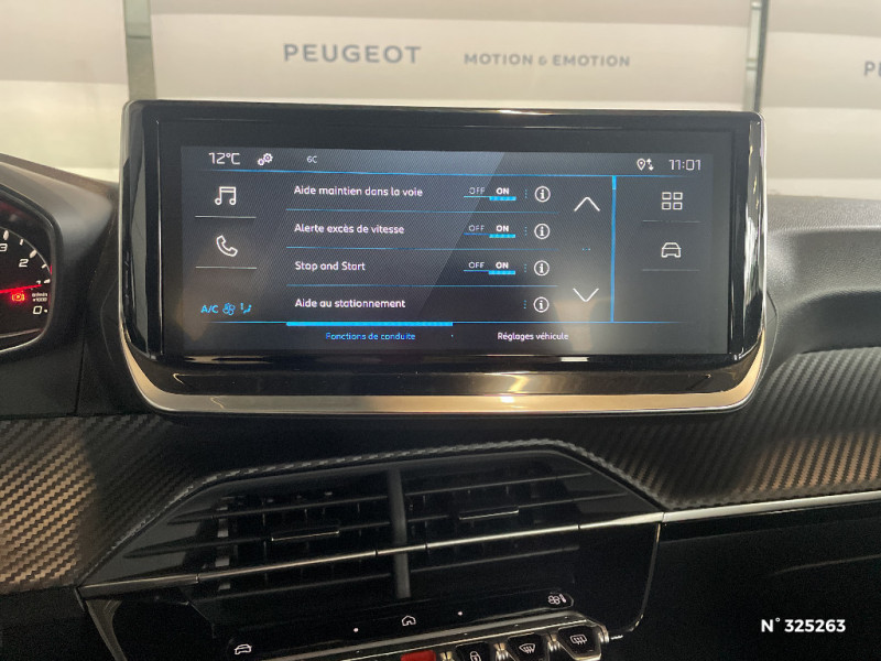 Commande d'ouverture des portes couleur caisse / Console basse avec frein de stationnement mécanique / Détection de sous-gonflage indirecte / Eclairage coffre à lampe / Eclairage intérieur Plafonnier AV A-DOME 3 ampoules (1 lampe, 2 liseuses AV) / Eclairage intérieur Plafonnier AV A-DOME 3 LEDs (1 lampe, 2 liseuses AV) / Enjoliveur bas de calandre noir grainé / Enjoliveur DRL Noir grainé / Enjoliveur entre feux AR noir brillant / Enjoliveur supérieur de calandre Noir grainé / ESP Déconnectable avec aide au démarrage en pente / Feux AR signature 3 griffes, stop à LEDs, recul et indicateur de direction à lampe / Habitacle et ciel de pavillon clair / 6 Airbags (Frontaux auto-adaptatifs, latéraux AV et rideaux AV/AR) / 6 HP (2 tweeters et 2 woofers à l'AV et 2 larges bandes à l'AR) / Jupes AR supérieure noir grainé / Kit de dépannage de pneumatique / Lécheurs de vitres Noir mat / Lève-vitres AR électriques et séquentiels avec antipincement / Lève-vitres AV électriques et séquentiels avec antipincement / Pack Safety / Pack Safety Régulateur / Limiteur de vitesse, Freinage d'urgence automatique avec alerte risque de collision, Alerte active de franchissement involontaire de ligne et bas côté, Reconnaissance étendue des panneaux de signalisation et préconisation de vitesse, Alerte attention conducteur / Pack Visibilité / Pack Visibilité Allumage automatique des feux de croisement / Panneaux de porte AR avec grain Karsten / Panneaux de porte AV avec médaillon décoration Carbone et baguette noire brillante avec tampographie Calcite / PEUGEOT Connect SOS & Assistance et Teleservices SOS & Assistance : Appel d'urgence automatique ou manuel par push SOS, et mise en relation directe avec la plateforme d'assistance PEUGEOT (24h/24 7j/7) Teleservices: Détection du besoin d¿une intervention technique ou d¿une opération d'entretien périodique et transmission au réseau PEUGEOT pour prise de rendez vous / Peugeot i-Cockpit avec combiné tête haute analogique et matrice couleur 3,5" / Planche de bord Injecté avec Décor Carbone injecté et baguette Noir brillante avec jonc chromé / Planche de bord Injecté avec Décor Carbone injecté et baguette Noir brillante avec jonc chromé ( planche slush en électrique) / Prise 12 V et rangement pour smartphone en façade centrale / Programme de Stabilité Electronique (ESC) avec ASR, ABS, REF, AFU, CDS et TSM / Projecteurs halogènes avec feux diurnes à LED / Projecteurs Peugeot LED Technology avec feux diurnes à LED 3 griffes / Rétroviseur intérieur à réglage jour/nuit manuel / Sellerie tissu PNEUMA embossé 3D, tri matières Leorki chiné et surpiqûres Vert Calcite / Système stop & go couplé avec l'assistance au positionnement sur la voie / Télécommande 3 boutons + clé standard / Touch screen 10'' & Bluetooth Radio & Telephone: Radio DAB avec écran tactile couleur 10'' SD, Bluetooth, Mirror Screen sans fil (Apple CarPlay / Android Auto), Ecran avec Toggles Switches, 1 prise USB type C ( Data+charge ) sur console AV / Vitres latérales AR et lunette AR chauffante temporisée teintées / Volant compact cuir avec commandes multimédia intégrées / 1 prise USB type C (Charge) et 1 prise USB type A (Charge) pour passagers AR / 3 poignées de maintien rétractables (1passager à l'AV et 2 à l'AR) / Jantes tôle 16" avec enjoliveurs MONTI Gris Eclat avec vernis brillant & noir grainé / Jupes AR inférieure noir grainé / Accoudoirs sur portes AV et AR tissu Rimini Mistral / Aide au stationnement AR, graphique et sonore / Airbags frontaux auto-adaptatifs, latéraux AV et rideaux AV et AR / Becquet rapporté Noir Brillant / Calandre Noir grainée avec marquage noir brillant polymirroir / Ceinture de sécurité AR centrale 3 points, avec détection de non bouclage / Ceintures de sécurité AR latérales avec enrouleurs pyrotechniques, limiteurs d'effort et détection de non bouclage / Ceintures de sécurité AV conducteur et passager à enrouleurs pyrotechniques avec limiteurs d'effort et détection de non bouclage