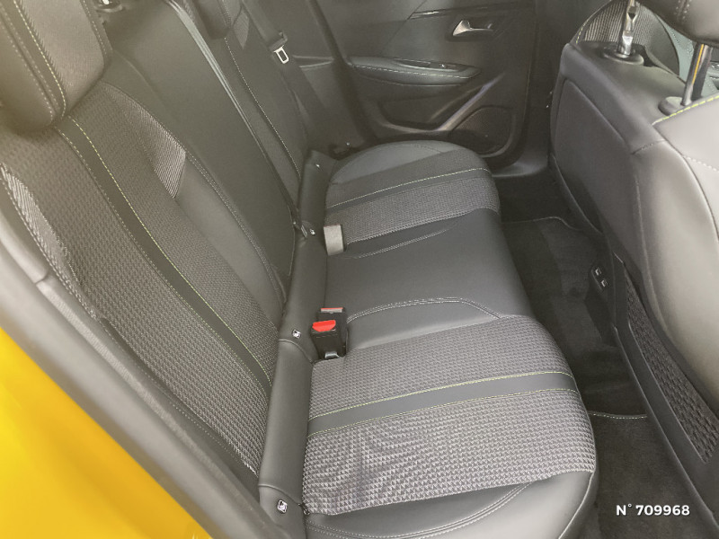 Lève-vitres AV électriques et séquentiels avec antipincement / Visio Park 1 / Fixations suivant norme ISOFIX aux places latérales AR avec étiquettes de localisation, et Top Tether / Fixations suivant norme ISOFIX sur siège passager AV avec étiquettes de localisation / Vitres latérales AR et lunette AR chauffante temporisée teintées / Jantes alliage 17'' SHAW avec inserts spécifique EV / Radio avec écran tactile 7" couleur capacitif, 2 prises USB (DATA type A, recharge type C) sur console AV / Rétroviseurs extérieurs dégivrants avec réglage et rabattement électriques / Pare-brise teinté acoustique / Pack Safety Plus / Pack Safety Plus / Jupes de pare-chocs AR inférieure et supérieure Noir brillant / Pédalier aluminium / Commutation automatique des feux de route / feux de croisement / Siège passager AV à réglage manuel en hauteur et lombaire pneumatique / Ceintures de sécurité AV conducteur et passager à enrouleurs pyrotechniques avec limiteurs d'effort et détection de non bouclage / Ceinture de sécurité AR centrale 3 points, avec détection de non bouclage / Passages de roue Noir brillant / Bandeau entre feux AR Noir brillant / Navigation 3D Connectée avec écran tactile 10'' HD couleur : 2 prises USB (Data et recharge) sur console AV, 2 prises AR sur console haut(recharge), Fonction DAB (Radio Numérique Terrestre) / Seuils de portes "Peugeot" / Projecteurs "Peugeot Full LED Technology" avec feux diurnes et clignotants AV à LED / Visio Park 1: Caméra de recul avec restitution sur l'écran tactile d'une vue AR et d'une vue de dessus de l'environnement AR du véhicule + Aide graphique et sonore au stationnement AR / Console haute avec accoudoir intégré / 2 prises USB (Recharge type A) sur console basse pour passagers AR / Détection de sous-gonflage indirecte / Avertisseur de temps de conduite / Lécheurs de vitres latérales Noir Brillant / Eclairage intérieur à LED : plafonniers tactiles AV (1 lampe et 2 liseuses) et AR (2 liseuses), pares-soleils, cave à pieds / Jantes alliage 17'' SHAW avec inserts spécifique EV / Aide graphique et sonore au stationnement AR / Lève-vitres AR électriques et séquentiels avec antipincement / Aide graphique et sonore au stationnement AV / Frein de stationnement électrique avec aide au démarrage en pente et serrage automatique / Programme de Stabilité Electronique (ESC) avec ASR, ABS, REF, AFU, CDS et TSM / Chargeur embarqué 7,4 kW monophasé / 4 poignées de maintien (2 à l'AV et 2 à l'AR) / Fonction "Mirror Screen" (Apple CarPlay / Android Auto / MirrorLink) / Eclairage coffre à lampe / Démarrage mains libres avec 2 télécommandes 3 boutons mains libres / Fonction DAB (Radio Numérique Terrestre) / Sellerie Tri matière Tissu CAPY/TEP surpiqûres Vert Adamite / Teinte métallisée Jaune Faro / Calandre haut de gamme avec grille supérieure avec marquage couleur caisse et enjoliveur supérieur Noir Brillant / Enjoliveurs de pied milieu brillant avec sérigraphies AV / Peugeot i-Cockpit avec combiné tête haute analogique et matrice couleur 3,5" / Décor panneaux de portes Noir et Azure / Navigation 3D connectée avec reconnaissance vocale, écran tactile capacitif 7" 2 prises USB sur console AV, Cartographie Europe,Trafic en temps réel by TomTom Services (Informations trafic, Stations services, Parkings, Météo, Recherche Locale), abonnement 3 ans inclus, Zones de danger by TomTom Services, abonnement 3 ans inclus. Connexion automatique et permanente via carte SIM intégrée au véhicule / Monogramme extérieur GT sur custode et volet de coffre / Démarrage mains libres avec 2 télécommandes 3 boutons / Vitres latérales AR et lunette AR chauffante temporisée surteintées / Projecteurs "Peugeot Full LED Technology" avec signature 3 griffes / Décor panneaux de portes de portes Noir et Orange / Projecteurs "Peugeot Full LED Technology" avec clignotants AV à LED / Rétroviseur intérieur photosensible frameless / Fonction Mirror Screen / Navigation 3D Connectée avec écran tactile 10'' HD couleur : 2 prises USB (Data et recharge) sur console AV, 2 prises AR sur console haut(recharge), Fonction DAB (Radio Numérique Terrestre) / Kit de dépannage de pneumatique / Signature LED sur pare-choc AV / Habitacle et ciel de pavillon Noir / Aide graphique et sonore au stationnement AR / Planche de bord slush et panneaux de portes AV avec décors aspect carbone / Pack Safety / PEUGEOT Connect SOS & Assistance et Telemaintenance / Jantes alliage 17'' BRONX avec inserts Noir Brillant et vernis Dark Coat / Filets aumônières au dos des sièges AV / Surtapis AV et AR noirs avec surpiqûres Vert Adamite / Volet de rangement smartphone / Signature lumineuse avant DRL à LED sous projecteurs / Câble électrique mode 2, prises de charge T2/EF type Green'up / Rétroviseurs extérieurs dégivrants avec réglage et rabattement électriques, éclairage de seuil / Pack Safety / Seuil de portes lettrage "PEUGEOT" / Feux diurnes à LED sous projecteurs / Vitres latérales AR et lunette AR surteintées / Système stop & go couplé avec l'assistance au positionnement sur la voie / PEUGEOT Connect SOS & Assistance et Telemaintenance / 1 Poignée de maintien passager AV / Navigation 3D connectée avec reconnaissance vocale, écran tactile capacitif 10" HD / Seuils de portes AV en Inox / Essuie-vitre AV à déclenchement automatique / PEUGEOT Connect SOS & Assistance / 2 prise USB sur console AV / Console haute avec accoudoir central finition TEP et surpiqûres tramontane / Navigation 3D connectée avec reconnaissance vocale, écran tactile capacitif 10" HD 2 prises USB sur console AV, Cartographie Europe,Trafic en temps réel by TomTom Services (Informations trafic, Stations services, Parkings, Météo, Recherche Locale), abonnement 3 ans inclus Zones de danger by TomTom Services, abonnement 3 ans inclus. Connexion automatique et permanente via carte SIM intégrée au véhicule / Démarrage mains libres avec 2 télécommandes 3 