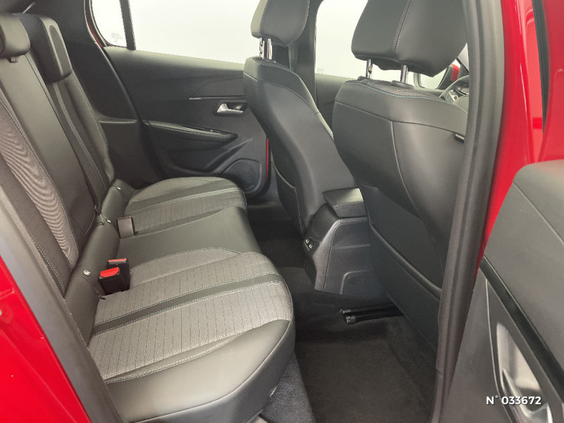 Essuie-vitre AV à déclenchement automatique / Lève-vitres AR électriques et séquentiels avec antipincement / Pack Safety / Reconnaissance étendue des panneaux / PEUGEOT Connect SOS & Assistance / Frein de stationnement électrique avec aide au démarrage en pente et serrage automatique / Pack Safety Plus / Aide graphique et sonore au stationnement AR / Ceintures de sécurité AV conducteur et passager à enrouleurs pyrotechniques avec limiteurs d'effort et détection de non bouclage / Ceinture de sécurité AR centrale 3 points, avec détection de non bouclage / Ceintures de sécurité AR latérales, avec enrouleurs pyrotechniques et limiteurs d'effort et détection de non bouclage / Radio avec écran tactile 7" couleur capacitif, Bluetooth, 1 prise USB type A (DATA) sur console AV / Fonction "Mirror Screen" (Apple CarPlay / Android Auto / MirrorLink) / 6 haut-parleurs (2 tweeters et 2 woofers à l'AV et 2 larges bandes à l'AR) / Eclairage coffre à lampe / 2 prise USB sur console AV / Bandeau entre feux AR noir brillant / Télécommande 3 boutons + clé standard / Volet de rangement smartphone / Signature lumineuse avant DRL à LED sous projecteurs / Rétroviseur intérieur photosensible et rétroviseurs extérieurs dégivrants avec réglage et rabattement électriques / Feux diurnes à LED sous projecteurs / Détection de sous-gonflage indirecte / Coques de rétroviseurs couleur carrosserie / Avertisseur de temps de conduite / Projecteurs "Peugeot Full Led Technology" / Programme de Stabilité Electronique (ESC) avec ASR, ABS, REF, AFU, CDS et TSM / Fixations suivant norme ISOFIX aux places latérales AR avec étiquettes de localisation, et Top Tether / Chargeur embarqué 7,4 kW monophasé / Jupes de pare-chocs AR inférieure noir teintée masse et supérieure noir brillant / Jupes de pare-chocs AR inférieure et supérieure Noir brillant / Passages de roue Noir brillant / Planche de bord slush et panneaux de portes AV avec décors aspect carbone / Habitacle et ciel de pavillon gris clair / Volant compact croute de cuir, Lion chromé et commandes multimédia sur volant / Eclairage intérieur à ampoules : plafonnier AV à 3 spots (1 lampe et 2 liseuses) / Peugeot i-Cockpit avec combiné tête haute analogique et matrice couleur 3"5 / Peugeot i-Cockpit 3D avec combiné tête haute numérique 3D / 3 poignées de maintien (1 à l'AV et 2 à l'AR) / Signature LED sur pare-choc AV / Rétroviseur intérieur électrochrome / Lève-vitres AV électriques et séquentiels avec antipincement / Kit de dépannage de pneumatique / Pare-brise teinté acoustique / Console haute avec accoudoir central finition TEP / Sellerie Tri matière Tissu/TEP COSY, surpiqures Vert Mint / Teinte métallisée Orange Fusion / Projecteurs 'Peugeot LED Technology' / Console haute avec accoudoir central finition TEP et surpiqures tramontane / Teinte métallisée Jaune Faro / Calandre haut de gamme avec grille supérieure avec marquage couleur caisse et enjoliveur supérieur Noir Brillant / Jupes de pare-chocs AR inférieure et supérieure Noir grainée / Filets aumônières au dos des sièges AV / Rétroviseurs extérieurs dégivrants avec réglage et rabattement électriques,éclairage de seuil / Radio avec écran tactile 7" couleur capacitif, 2 prises USB (DATA type A, recharge type C) sur console avant / 2 prises USB (Recharge type A) sur console basse pour passagers AR / Câble électrique mode 2, prises de charge T2/EF type Green'up / Planche de bord slush et panneaux de portes AV avec décors aspect carbone et baguette Noir Brillant avec jonc chromé / Démarrage mains libres avec 2 télécommandes 3 boutons mains libres / Vitres latérales AR et lunette AR chauffante temporisée teintées / Fonction DAB (Radio Numérique Terrestre) / Air conditionné automatique mono-zone / Calandre avec marquage à chaud chrome brillant