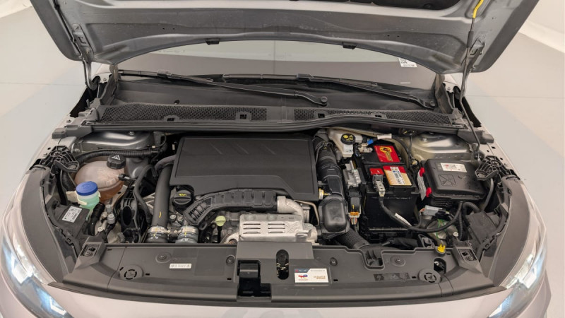 Aide graphique et sonore au stationnement AV et AR / Détection de sous-gonflage indirecte / Essuie-vitre AV à déclenchement automatique / Lève-vitres AR électriques et séquentiels avec antipincement / Ceintures de sécurité AV conducteur et passager à enrouleurs pyrotechniques avec limiteurs d'effort et détection de non bouclage / Ceinture de sécurité AR centrale 3 points, avec détection de non bouclage / Ceintures de sécurité AR latérales avec enrouleurs pyrotechniques, limiteurs d'effort et détection de non bouclage / Programme de Stabilité Electronique (ESC) avec ASR, ABS, REF, AFU, CDS et TSM / 6 HP (2 tweeters et 2 woofers à l'AV et 2 larges bandes à l'AR) / Eclairage coffre à lampe / Télécommande 3 boutons + clé standard / Vitres latérales AR et lunette AR chauffante temporisée surteintées / Air conditionné automatique mono-zone / Rétroviseurs extérieurs dégivrants avec réglage et rabattement électriques / Peugeot Connect SOS & Assistance / Sellerie tissu CASUAL LOMSA embossé, accompagnement TEP Isabella, trimatière LOMSA et surpiqûres Quartz / Volant compact en croûte de cuir avec commandes multimédia intégrées / Console haute avec accoudoir & frein de stationnement électrique 1 prise USB type C (Charge) et 1 prise USB type A (Charge) pour passagers AR / Peugeot i-Cockpit avec combiné tête haute 10" numérique / Peugeot i-Connect: Radio DAB avec écran tactile couleur personnalisable 10" HD, Bluetooth, Mirror Screen sans fil (Apple CarPlay/Android Auto), Wifi, 1 prise USB type C ( Data+charge) et 1 prise USB type C (Charge) sur console AV / Projecteurs Peugeot LED Technology avec feux diurnes à LED 3 griffes / Jantes alliage 16" diamantées NOMA bi--ton vernis brillant et Noir Orbital / ESP Déconnectable avec aide au démarrage en pente / 3 poignées de maintien rétractables (1passager à l'AV et 2 à l'AR) / Feux AR signature 3 griffes, stop à LEDs, recul et indicateur de direction à lampe / Antenne requin / Accoudoirs sur portes AV et AR en TEP avec surpiqûre Quartz / Enjoliveur supérieur de calandre Noir Brillant / Calandre haute de gamme noir grainée avec marquage couleur caisse / Prise 12V et rangement pour smartphone en façade centrale / Commande d'ouverture des portes couleur caisse / Enjoliveur entre feux AR noir brillant / Becquet rapporté Noir Brillant / 1 prise USB type C (Charge) et 1 prise USB type A (Charge) pour passagers AR / 6 Airbags (Frontaux auto-adaptatifs, latéraux AV et rideaux AV/AR) / Pack Safety Régulateur / Limiteur de vitesse, Freinage d'urgence automatique avec alerte risque de collision, Alerte active de franchissement involontaire de ligne et bas côté, Reconnaissance étendue des panneaux de signalisation et préconisation de vitesse, Alerte attention conducteur : Alerte attention conducteur Régulateur / Limiteur de vitesse Reconnaissance étendue des panneaux de signalisation et préconisation de vitesse Alerte active de franchissement involontaire de ligne et bas côté Freinage d'urgence automatique avec alerte risque de collision / Pack Visibilité Allumage automatique des feux de croisement : Allumage automatique des feux de croisement / Eclairage intérieur Plafonnier AV A-DOME 3 ampoules (1 lampe, 2 liseuses AV) / 1 prise USB type C ( Data+charge ) et 1 prise USB type C (Charge) sur console AV / Rétroviseur intérieur électrochrome / Lève-vitres AV électriques et séquentiels avec antipincement / / Véhicules équivalents: Clio - C3 - Yaris