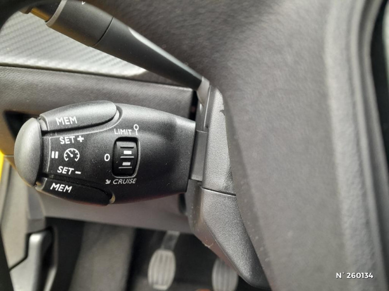 Jupes de pare-chocs AR inférieure et supérieure Noir grainée / 2 haut-parleurs à l'AV (2 larges bandes) / Lève-vitres AR manuels / Sellerie Tissu PARA Bleu, surpiqures Gris Zéphyr / Feux diurnes halogènes intégrés sur projecteur / Radio avec écran tactile 5'' noir et blanc capacitif, 1 prise USB en façade, avec pilotage de climatisation / Kit de dépannage de pneumatique / Détection de sous-gonflage indirecte / Pack Safety / Ceintures de sécurité AV conducteur et passager à enrouleurs pyrotechniques avec limiteurs d'effort et détection de non bouclage / Ceinture de sécurité AR centrale 3 points, avec détection de non bouclage / Ceintures de sécurité AR latérales, avec enrouleurs pyrotechniques et limiteurs d'effort et détection de non bouclage / Programme de Stabilité Electronique (ESC) avec ASR, ABS, REF, AFU, CDS et TSM / Fixations suivant norme ISOFIX aux places latérales AR avec étiquettes de localisation, et Top Tether / Coques de rétroviseurs extérieurs noir teintées masse / Calandre avec grille supérieure noir grainée et enjoliveur supérieur noir grainé / Planche de bord et panneaux de portes AV injectés avec décors aspect carbone / Habitacle et ciel de pavillon gris clair / Volant compact moussé avec Lion chromé / Eclairage intérieur à ampoules : plafonnier AV à 3 spots (1 lampe et 2 liseuses) / Peugeot i-Cockpit avec combiné tête haute analogique LCD / 1 Poignée de maintien passager AV / Rétroviseur intérieur à réglage jour / nuit manuel / Jantes tôle 15" avec enjoliveurs LAPA / Eclairage coffre à lampe / Télécommande 3 boutons + clé standard / Vitres latérales AR et lunette AR chauffante temporisée teintées / Fonction DAB (Radio Numérique Terrestre) / Teinte métallisée Jaune Faro