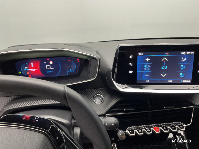 Détection de sous-gonflage indirecte / Aide graphique et sonore au stationnement AR / Avertisseur de temps de conduite / Air conditionné automatique mono-zone / Volant compact croute de cuir, Lion chromé et commandes multimédia sur volant / Sellerie Tri-matières tissu COSY / TEP Mistral, surpiqûres Mentholées / Fonction "Mirror Screen" (Apple CarPlay / Android Auto ) / Habitacle et ciel de pavillon gris clair / Pare-brise teinté acoustique / Lève-vitres AV électriques et séquentiels avec antipincement / Décor panneaux de portes Noir et Azure / Fonction DAB (Radio Numérique Terrestre) / Peugeot i-Cockpit 3D avec combiné tête haute numérique 3D / 1 Poignée de maintien passager AV / Feux diurnes à LED sous projecteurs / Essuie-vitre AV à déclenchement automatique / Console haute avec accoudoir intégré / Radio avec écran tactile 7" couleur capacitif, 2 prises USB (DATA type A, recharge type C) sur console AV / Lève-vitres AR électriques et séquentiels avec antipincement / 2 prises USB (Recharge type A) sur console basse pour passagers AR / Visio Park 1 Caméra de recul avec restitution sur l'écran tactile d'une vue AR et d'une vue de dessus de l'environnement AR du véhicule + Aide graphique et sonore au stationnement AR / Vitres latérales AR et lunette AR chauffante temporisée surteintées / Pack Safety / Frein de stationnement électrique avec aide au démarrage en pente et serrage automatique / Démarrage mains libres avec 2 télécommandes 3 boutons / Enjoliveurs de pied milieu Noir brillant avec sérigraphie / Jantes alliage 16" SOHO diamantées peintes Gris Storm / Sans seuil de portes lettrage "PEUGEOT" / Fixations suivant norme ISOFIX aux places latérales AR avec étiquettes de localisation, et Top Tether / Jupes de pare-chocs AR inférieure Noir grainée et supérieure Noir brillant / Projecteurs 'Peugeot LED Technology', indicateurs de direction à ampoules / Ceinture de sécurité AR centrale 3 points, avec détection de non bouclage / Eclairage coffre à lampe / Seuil de portes lettrage "PEUGEOT" / Calandre avec grille supérieure avec marquage Chrome Brillant et enjoliveur supérieur noir grainé / Programme de Stabilité Electronique (ESC) avec ASR, ABS, REF, AFU, CDS et TSM / 6 haut-parleurs (2 tweeters et 2 woofers à l'AV et 2 larges bandes à l'AR) / Jantes alliage 16'' SOHO diamantées peintes Gris Storm / Planche de bord slush et panneaux de portes AV avec décors aspect carbone / Ceintures de sécurité AV conducteur et passager à enrouleurs pyrotechniques avec limiteurs d'effort et détection de non bouclage / 3 poignées de maintien (1 à l'AV et 2 à l'AR) / Kit de dépannage de pneumatique / Ceintures de sécurité AR latérales avec enrouleurs pyrotechniques, limiteurs d'effort et détection de non bouclage / Rétroviseur intérieur photosensible / Télécommande 3 boutons + clé standard / Rétroviseurs extérieurs dégivrants avec réglage et rabattement électriques / Eclairage intérieur à ampoules : plafonnier AV à 3 spots (1 lampe et 2 liseuses) / Bandeau entre feux AR noir brillant