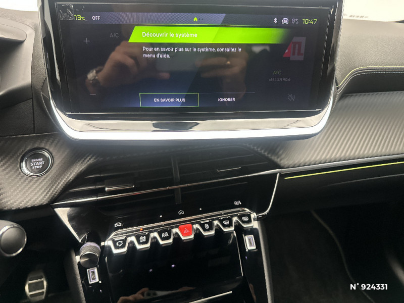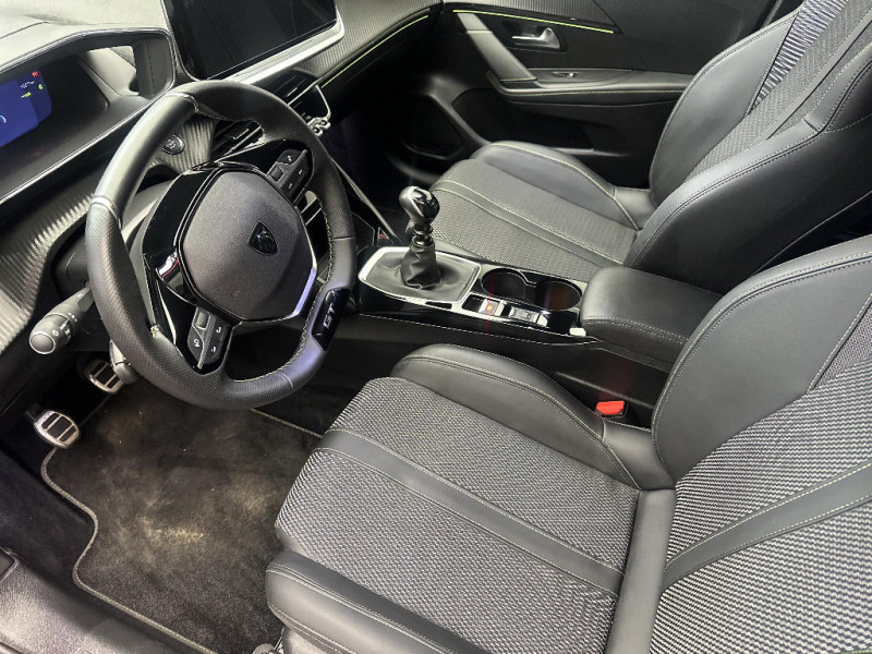 Eclairage polyambiant 8 couleurs (Liés aux modes de conduite) / Enjoliveur bas de calandre Noir Brillant / Enjoliveur supérieur de calandre Noir Brillant / Lève-vitres AV électriques et séquentiels avec antipincement / 6 Airbags - Frontaux auto-adaptatifs, latéraux AV et rideaux AV et AR / Pédalier Sport aluminium / Pack Safety Régulateur / Limiteur de vitesse Freinage d'urgence automatique avec alerte risque de collision Alerte active de franchissement involontaire de ligne et bas côté Reconnaissance étendue des panneaux de signalisation et préconisation de vitesse Alerte attention conducteur / Pack Visibilité Allumage automatique des feux de croisement / Recharge smartphone sans fil (15W) / 1 prise USB type C (Charge) et 1 prise USB type A (Charge) pour passagers AR / Vitres latérales AR et lunette AR chauffante temporisée surteintées / Surtapis AV et AR / Commutation automatique des feux de route / feux de croisement / Lécheurs de vitres latérales Noir Brillant / Jantes alliage 17?? diamantées YANAKA bi--ton vernis brillant et Noir Orbital avec inserts Noir Orbital et vernis mat / Aide graphique et sonore au stationnement AR / Prise 12V et rangement pour smartphone en façade centrale / 4 poignées de maintien rétractables (2 à l'AV et 2 à l'AR) / Ceintures de sécurité AR latérales avec enrouleurs pyrotechniques, limiteurs d'effort et détection de non bouclage / PEUGEOT Connect SOS & Assistance et Teleservices SOS & Assistance : Appel d'urgence automatique ou manuel par push SOS, et mise en relation directe avec la plateforme d'assistance PEUGEOT (24h/24 7j/7) Teleservices: Détection du besoin d?une intervention technique ou d?une opération d'entretien périodique et transmission au réseau PEUGEOT pour prise de rendez vous / Airbags frontaux auto-adaptatifs, latéraux AV et rideaux AV et AR / Ceintures de sécurité AV conducteur et passager à enrouleurs pyrotechniques avec limiteurs d'effort et détection de non bouclage / Projecteurs "Peugeot Full LED Technology" avec feux diurnes à LED 3 griffes / Commande d'ouverture des portes couleur caisse / Volant compact cuir fleur avec commandes multimédia intégrées et badge GT / Visiopark 1 Aide au stationnement avant et arrière, graphique et sonore, Caméra de recul avec restitution sur l'écran tactile d'une vue AR, et d'une vue de dessus de l?environnement arrière du véhicule / ESP Déconnectable avec aide au démarrage en pente / Jupes AR inférieure Noir brillant / Jupes AR supérieure Noir brillant / Calandre haut de gamme noir grainée avec marquage couleur caisse / Pack Safety / Pack Visibilité / Frein de stationnement électrique / Pédalier aluminium / Seuils de portes AV aluminium siglés PEUGEOT / Lève-vitres AR électriques et séquentiels avec antipincement / Console haute avec accoudoir intégré 1 prise USB type C (Charge) et 1 prise USB type A (Charge) pour passagers AR, Sélecteur de mode de conduite (Normal/Eco avec BVM, Normal/Eco/Sport avec DCT6, EAT8 et Electrique) / Antenne requin / Enjoliveur DRL Noir Brillant / Ceinture de sécurité AR centrale 3 points, avec détection de non bouclage / Habitacle et ciel de pavillon noir / Télécommande 3 boutons + clé standard / Eclairage intérieur Eclairager AV I-DOME à LED (1 plafonnier et 2 liseuses), 2 liseuses à LED AR, Miroir de courtoisie dans pare--soleil éclairéà LED, Eclairage à LED partie basse rangement et caves à pieds / Enjoliveurs d'ailes Noir Brillant / Accoudoirs sur portes AV et AR en TEPavec surpiqûre Adamite / Panneaux de porte AR avec grain Karsten avec baguette Noir brillant / Enjoliveur entre feux AR noir brillant / Panneaux de porte AV avec médaillon TPE surmoulé Carbone, baguette Noir brillante avec jonc lumineux (8 couleurs) et crosse de tirage TEP avec surpiqûres Adamite / Planche de bord Slush avec Décor Carbone TPE et double surpiqûres Adamite/Tramontane et baguette Noir brillante avec jonc chromé et jonc lumineux / Feux AR signature 3 griffes, stop,recul et indicateur de direction à LEDs / Becquet rapporté Noir Brillant / Détection de sous-gonflage indirecte / Eclairage coffre à lampe / 6 haut-parleurs (2 tweeters et 2 woofers à l'AV et 2 larges bandes à l'AR) / Peugeot i-Connect Radio DAB avec écran tactile couleur personnalisable 10" HD,Bluetooth, Mirror Screen sans fil (Apple CarPlay/Android Auto), Wifi, 1 prise USB type C ( Data+charge ) et 1 prise USB type C (Charge) sur console AV / Peugeot i-Cockpit 3D avec combiné tête haute numérique 3D 10'' / Rétroviseur intérieur électrochrome sans cadre / Sellerie tissu BELOMKA, accompagnement TEP Isabella, trimatière Uni Capy et surpiqûres Vert Adamit / Recharge smartphone sans fil / Siège passager AV à réglage manuel en hauteur / Accès et démarrage mains libres Proximity / Rétroviseur intérieur à réglage jour/nuit manuel / Console haute avec accoudoir & frein de stationnement électrique 1 prise USB type C (Charge) et 1 prise USB type A (Charge) pour passagers AR, Sélecteur de mode de conduite Normal/Eco / Rétroviseurs extérieurs dégivrants avec réglage et rabattement électriques,éclairage de seuil / Air conditionné automatique mono-zone / Essuie-vitre AV à déclenchement automatique / Programme de Stabilité Electronique (ESC) avec ASR, ABS, REF, AFU, CDS et TSM