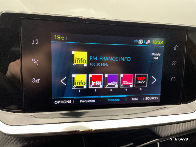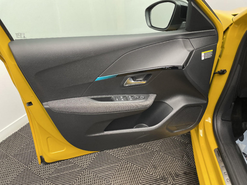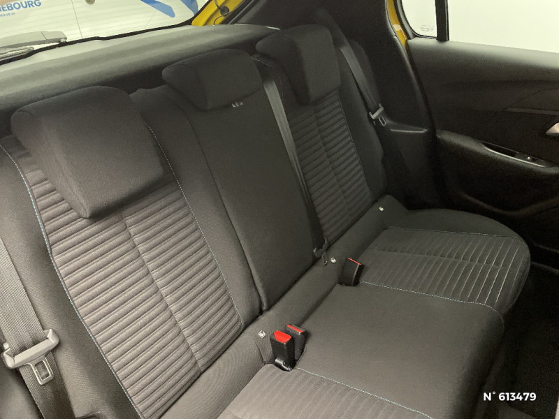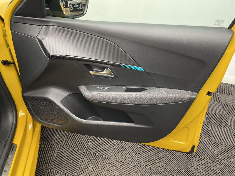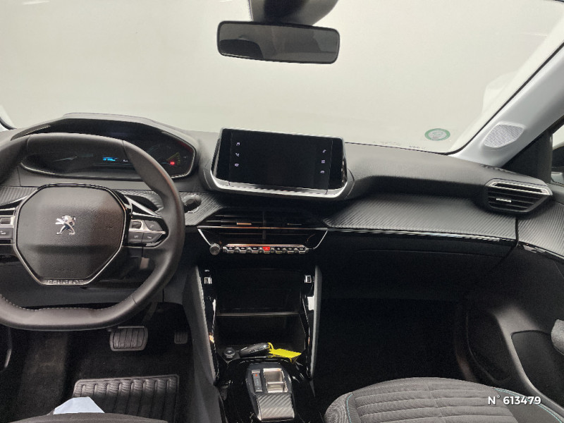 Eclairage intérieur à ampoules : plafonnier AV à 3 spots (1 lampe et 2 liseuses) / Eclairage coffre à lampe / Fixations suivant norme ISOFIX aux places latérales AR avec étiquettes de localisation, et Top Tether / 6 haut-parleurs (2 tweeters et 2 woofers à l'AV et 2 larges bandes à l'AR) / Ceintures de sécurité AV conducteur et passager à enrouleurs pyrotechniques avec limiteurs d'effort et détection de non bouclage / Calandre haut de gamme avec grille supérieure avec marquage couleur caisse et enjoliveur supérieur Noir Brillant / Radio avec écran tactile 7" couleur capacitif, 2 prises USB (DATA type A, recharge type C) sur console AV / 2 prises USB (Recharge type A) sur console basse pour passagers AR / Sellerie Tri matière Tissu PNEUMA 3D, surpiqûre Bleu Azure / Décor panneaux de portes Noir et Azure / Fonction "Mirror Screen" (Apple CarPlay / Android Auto ) / Volant compact croute de cuir, Lion chromé et commandes multimédia sur volant / Bandeau entre feux AR noir brillant / Peugeot i-Cockpit avec combiné tête haute analogique et matrice couleur 3"5 / Rétroviseur intérieur à réglage jour/nuit manuel / 1 Poignée de maintien passager AV / Habitacle et ciel de pavillon gris clair / 3 poignées de maintien (1 à l'AV et 2 à l'AR) / Programme de Stabilité Electronique (ESC) avec ASR, ABS, REF, AFU, CDS et TSM / Avertisseur de temps de conduite / Chargeur embarqué 7,4 kW monophasé / Détection de sous-gonflage indirecte / Air conditionné automatique mono-zone / Fonction DAB (Radio Numérique Terrestre) / Frein de stationnement électrique avec aide au démarrage en pente et serrage automatique / Pare-brise teinté acoustique / Aide graphique et sonore au stationnement AR / Console haute avec accoudoir intégré / Vitres latérales AR et lunette AR chauffante temporisée surteintées / Kit de dépannage de pneumatique / PEUGEOT Connect SOS & Assistance et Telemaintenance / Lève-vitres AR électriques et séquentiels avec antipincement / Feux diurnes à LED sous projecteurs / Planche de bord slush et panneaux de portes AV avec décors aspect carbone / Lève-vitres AV électriques et séquentiels avec antipincement / Pack Safety / Passages de roue Noir brillant / Câble électrique mode 3, prises de charge T2/T2 / Rétroviseurs extérieurs dégivrants avec réglage et rabattement électriques / Jupes de pare-chocs AR inférieure et supérieure Noir grainée / Seuil de portes lettrage "PEUGEOT" / Démarrage mains libres avec 2 télécommandes 3 boutons / Projecteurs 'Peugeot LED Technology', indicateurs de direction à ampoules / Ceinture de sécurité AR centrale 3 points, avec détection de non bouclage / Ceintures de sécurité AR latérales avec enrouleurs pyrotechniques, limiteurs d'effort et détection de non bouclage