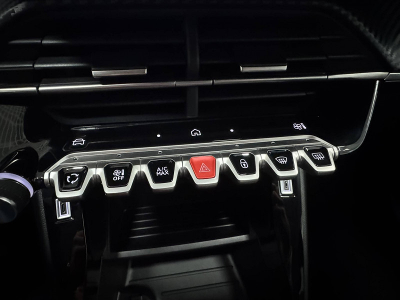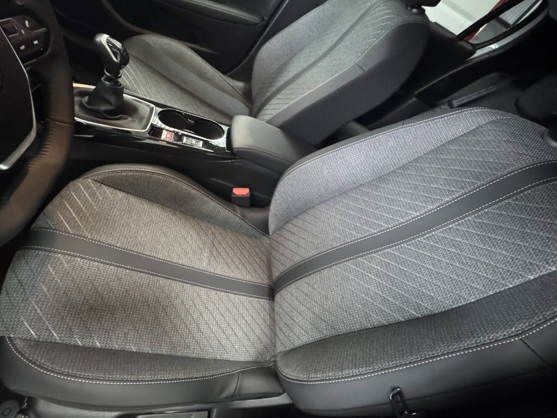 3 poignées de maintien rétractables (1passager à l'AV et 2 à l'AR) / 6 Airbags (Frontaux auto-adaptatifs, latéraux AV et rideaux AV/AR) / 6 HPs (2 tweeters et 2 woofers à l'AV et 2 HPs à l'AR) / Accoudoirs sur portes AV et AR en TEP avec surpiqûre Quartz / Aide graphique et sonore au stationnement AV et AR / Air conditionné automatique mono-zone / Antenne requin / Becquet rapporté Noir Brillant / Boîte manuelle 6 vitesses / Calandre haute de gamme noir grainée avec marquage couleur caisse / Ceinture de sécurité AR centrale 3 points, avec détection de non bouclage / Ceintures de sécurité AR latérales avec enrouleurs pyrotechniques, limiteurs d'effort et détection de non bouclage / Ceintures de sécurité AV conducteur et passager à enrouleurs pyrotechniques avec limiteurs d'effort et détection de non bouclage / Commande d'ouverture des portes couleur caisse / Console haute avec accoudoir & frein de stationnement électrique 1 prise USB type C (Charge) et 1 prise USB type A (Charge) pour passagers AR, Sélecteur de mode de conduite Normal/Eco / Détection de sous-gonflage indirecte / Eclairage coffre à lampe / Eclairage intérieur Plafonnier AV A-DOME 3 ampoules (1 lampe, 2 liseuses AV) / Enjoliveur bas de calandre noir grainé / Enjoliveur DRL Noir grainé / Enjoliveur entre feux AR noir brillant / Enjoliveur supérieur de calandre Noir grainé / ESP Déconnectable avec aide au démarrage en pente / Essuie-vitre AV à déclenchement automatique / Feux AR signature 3 griffes, stop à LEDs, recul et indicateur de direction à lampe / Habitacle et ciel de pavillon clair / Jantes alliage 16" diamantées NOMA bi--ton vernis brillant et Noir Orbital / Jupes AR inférieure noir grainé / Jupes AR supérieure Noir brillant / Lécheurs de vitres Noir mat / Lève-vitres AR électriques et séquentiels avec antipincement / Lève-vitres AV électriques et séquentiels avec antipincement / Pack Safety Régulateur / Limiteur de vitesse, Freinage d'urgence automatique avec alerte risque de collision, Freinage automatique d'urgence avec détection élargie (3 caméras haut de pare-brise) et protection des usagers de la route vulnérables (piétons, cyclistes,), Alerte active de franchissement involontaire de ligne et bas côté, Reconnaissance étendue des panneaux de signalisation et préconisation de vitesse, Alerte attention conducteur / Pack Visibilité Allumage automatique des feux de croisement / Panneaux de porte AV avec médaillon décor Carbone injecté et baguette Noir brillante avec tampographie Quartz / Panneaux de portes AR injectés grain Karsten sans baguette / Peugeot Connect SOS & Assistance et Teleservices SOS & Assistance : Appel d'urgence automatique ou manuel par push SOS, et mise en relation directe avec la plateforme d'assistance PEUGEOT (24h/24 7j/7) , Teleservices : Détection du besoin d'une intervention technique ou d'une opération d'entretien périodique et transmission au réseau PEUGEOT pour prise de rendez vous / Peugeot i-Cockpit avec combiné tête haute 10" numérique / Peugeot i-Connect: Radio DAB avec écran tactile couleur personnalisable 10" HD, Bluetooth - Mirror Screen sans fil (Apple CarPlay/Android Auto) - Wifi - 1 prise USB type C ( Data+charge), 1 prise USB type C (Charge) sur console AV / Planche de bord Slush avec Décor Carbone slush et baguette Noir brillante avec jonc Chromé / Prise 12V et rangement pour smartphone en façade centrale / Programme de Stabilité Electronique (ESC) avec ASR, ABS, REF, AFU, CDS et TSM / Projecteurs Peugeot LED Technology avec feux diurnes à LED 3 griffes / Rétroviseur intérieur électrochrome / Rétroviseurs extérieurs dégivrants avec réglage et rabattement électriques / Sellerie tissu CASUAL LOMSA embossé, accompagnement TEP Isabella, trimatière LOMSA et surpiqûres Quartz / Télécommande 3 boutons + clé standard / Vitres latérales AR et lunette AR chauffante temporisée surteintées / Volant compact en croûte de cuir avec commandes multimédia intégrées