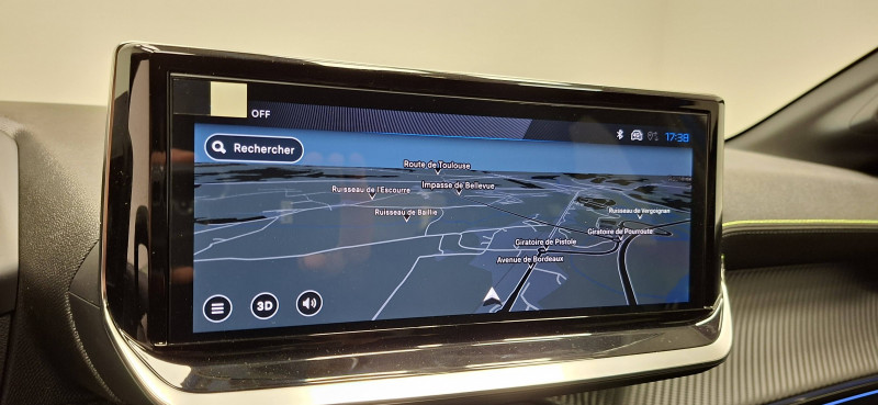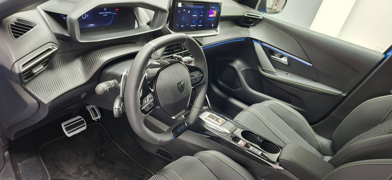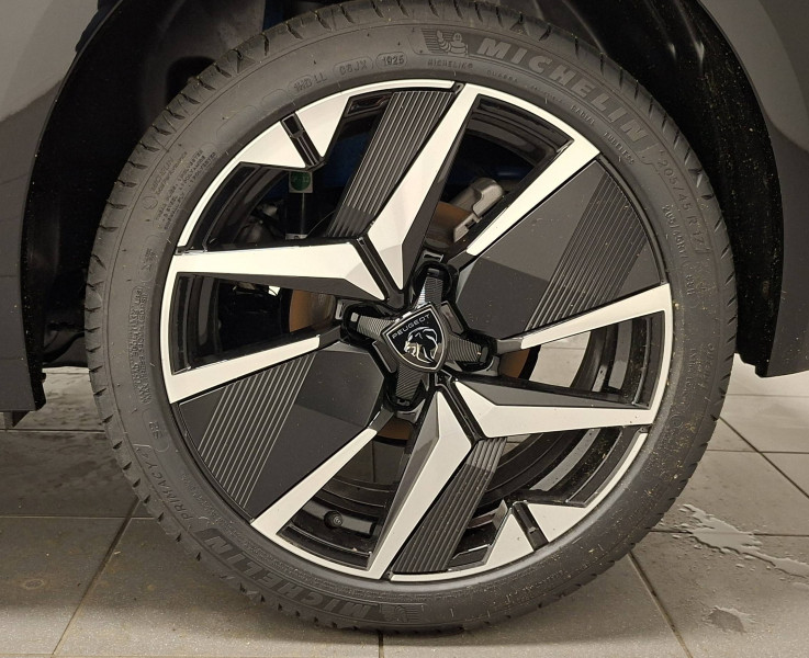 4 poignées de maintien rétractables (2 à l'AV et 2 à l'AR) / 6 Airbags (Frontaux auto-adaptatifs, latéraux AV et rideaux AV/AR) / 6 HPs (2 tweeters et 2 woofers à l'AV et 2 HPs à l'AR) / Accès et démarrage mains libres Proximity / Accoudoirs sur portes AV et AR en TEP avec surpiqûre Adamite / Air conditionné automatique mono-zone / Antenne requin / Becquet rapporté Noir Brillant / Boîte de vitesse automatique, séquentielle (6 rapports) / Calandre haute de gamme noir grainée avec marquage couleur caisse / Ceinture de sécurité AR centrale 3 points, avec détection de non bouclage / Ceintures de sécurité AR latérales avec enrouleurs pyrotechniques, limiteurs d'effort et détection de non bouclage / Ceintures de sécurité AV conducteur et passager à enrouleurs pyrotechniques avec limiteurs d'effort et détection de non bouclage / Commande d'ouverture des portes couleur caisse / Commutation automatique des feux de route / feux de croisement / Console haute avec accoudoir & frein de stationnement électrique 1 prise USB type C (Charge) et 1 prise USB type A (Charge) pour passagers AR, Sélecteur de mode de conduite Normal/Eco/Sport / Détection de sous-gonflage indirecte / Eclairage coffre à lampe / Eclairage intérieur Eclairager AV I-DOME à LED (1 plafonnier et 2 liseuses), 2 liseuses à LED AR, Miroir de courtoisie dans pare-soleil éclairéà LED, Eclairage à LED partie basse rangement et caves à pieds / Eclairage polyambiant 8 couleurs (Liés aux modes de conduite) / Enjoliveur bas de calandre noir grainé / Enjoliveur DRL Noir grainé / Enjoliveur entre feux AR noir brillant / Enjoliveurs d'ailes Noir Brillant / Enjoliveur supérieur de calandre Noir grainé / ESP Déconnectable avec aide au démarrage en pente / Essuie-vitre AV à déclenchement automatique / Feux AR signature 3 griffes, stop, recul et indicateur de direction à LEDs / Habitacle et ciel de pavillon Noir / Jantes alliage 17" diamantées YANAKA bi--ton vernis brillant et Noir Orbital avec inserts Noir Orbital et vernis mat / Jupes AR inférieure Noir brillant / Jupes AR supérieure Noir brillant / Lécheurs de vitres latérales Noir Brillant / Lève-vitres AR électriques et séquentiels avec antipincement / Lève-vitres AV électriques et séquentiels avec antipincement / Pack Safety Régulateur / Limiteur de vitesse, Freinage d'urgence automatique avec alerte risque de collision, Freinage automatique d'urgence avec détection élargie (3 caméras haut de pare-brise) et protection des usagers de la route vulnérables (piétons, cyclistes,), Alerte active de franchissement involontaire de ligne et bas côté, Reconnaissance étendue des panneaux de signalisation et préconisation de vitesse, Alerte attention conducteur / Pack Visibilité Allumage automatique des feux de croisement / Panneaux de porte AR avec grain Karsten avec baguette Noir brillant / Panneaux de porte AV avec médaillon TPE surmoulé Carbone, baguette Noir brillante avec jonc lumineux (8 couleurs) et crosse de tirage TEP avec surpiqûres Adamite / Pédalier Sport aluminium / Peugeot Connect SOS & Assistance et Teleservices SOS & Assistance : Appel d'urgence automatique ou manuel par push SOS, et mise en relation directe avec la plateforme d'assistance PEUGEOT (24h/24 7j/7) , Teleservices : Détection du besoin d'une intervention technique ou d'une opération d'entretien périodique et transmission au réseau PEUGEOT pour prise de rendez vous / Peugeot i-Cockpit 3D avec combiné tête haute numérique 10'' / Peugeot i-Connect: Radio DAB avec écran tactile couleur personnalisable 10" HD, Bluetooth, Mirror Screen sans fil (Apple CarPlay/Android Auto), Wifi, 1 prise USB type C ( Data+charge) et 1 prise USB type C (Charge) sur console AV / Planche de bord Slush avec décor carbone slush et double surpiqûres Adamite/Tramontane et baguette Noir brillante avec jonc chromé et jonc lumineux / Prise 12V et rangement pour smartphone en façade centrale / Programme de Stabilité Electronique (ESC) avec ASR, ABS, REF, AFU, CDS et TSM / Projecteurs "Peugeot Full LED Technology" avec feux diurnes à LED 3 griffes / Rétroviseur intérieur électrochrome / Rétroviseurs extérieurs dégivrants avec réglage et rabattement électriques / Sellerie tissu BELOMKA, accompagnement TEP Isabella, trimatière Uni Capy et surpiqûres Vert Adamite / Seuils de portes aluminium avec lettrage PEUGEOT / Siège passager AV à réglage manuel en hauteur / Surtapis AV/AR / Télécommande 3 boutons + clé standard / Visiopark 1 Caméra de recul HD, aide au stationnement AV et AR graphique et sonore / Vitres latérales AR et lunette AR chauffante temporisée surteintées / Volant compact cuir fleur avec commandes multimédia intégrées et badge GT
