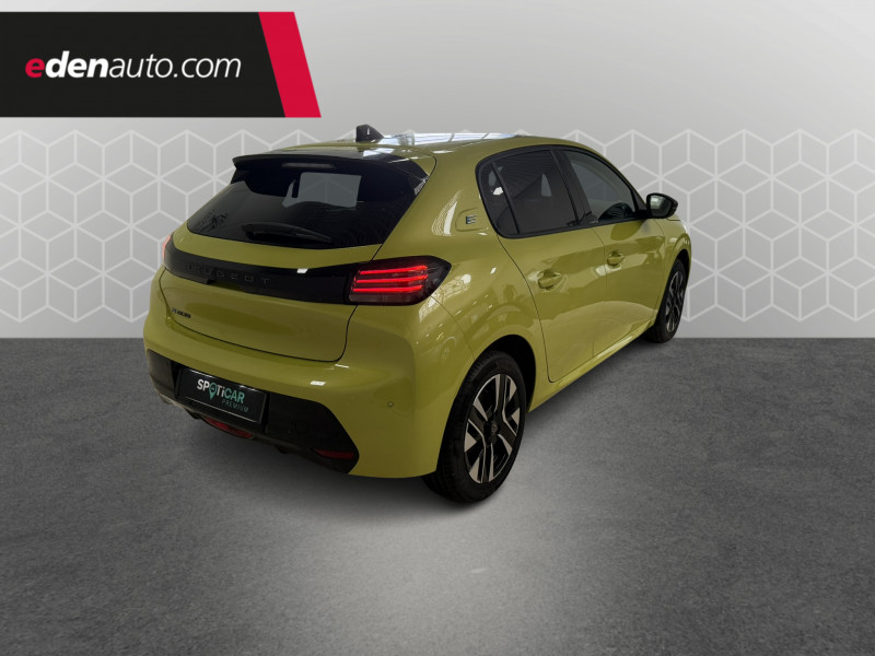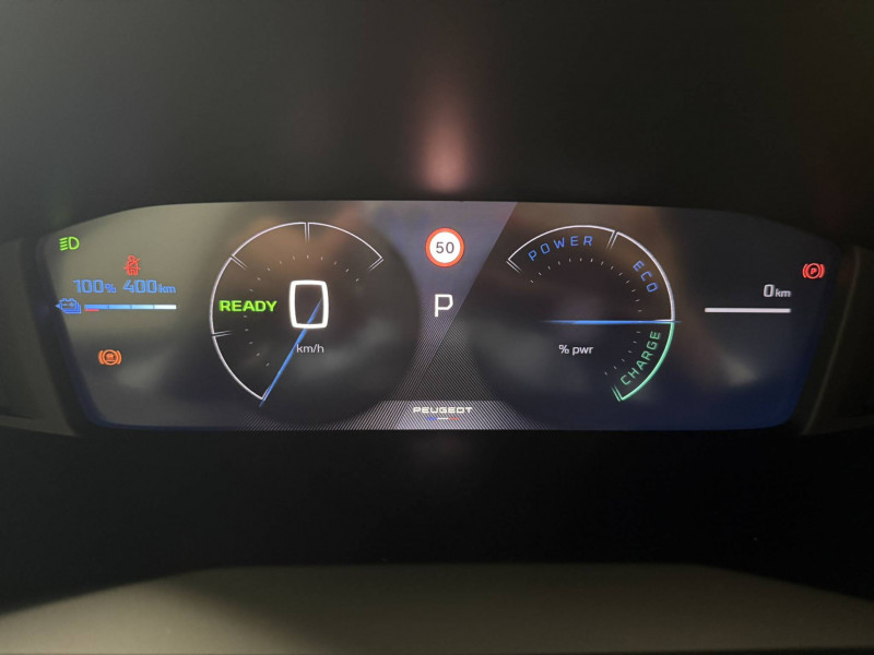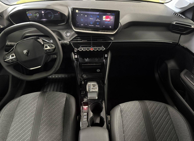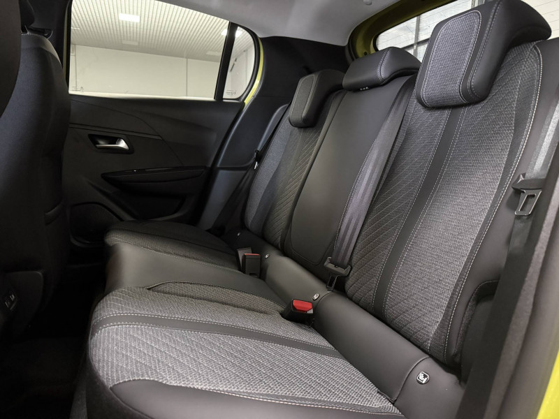 1 prise USB type C (Charge) et 1 prise USB type A (Charge) pour passagers AR / 1 prise USB type C ( Data+charge ) et 1 prise USB type C (Charge) sur console AV / 3 poignées de maintien rétractables (1passager à l'AV et 2 à l'AR) / 6 Airbags (Frontaux auto-adaptatifs, latéraux AV et rideaux AV/AR) / 6 HPs (2 tweeters et 2 woofers à l'AV et 2 HPs à l'AR) / Accoudoirs sur portes AV et AR en TEP avec surpiqûre Quartz / Aide graphique et sonore au stationnement AV et AR / Air conditionné automatique mono-zone / Antenne requin / Becquet rapporté Noir Brillant / Boîte automatique à variation continue / Câble électrique mode 3 triphasé 22 kW / Calandre haute de gamme noir grainée avec marquage couleur caisse / Ceinture de sécurité AR centrale 3 points, avec détection de non bouclage / Ceintures de sécurité AR latérales avec enrouleurs pyrotechniques, limiteurs d'effort et détection de non bouclage / Ceintures de sécurité AV conducteur et passager à enrouleurs pyrotechniques avec limiteurs d'effort et détection de non bouclage / Chargeur embarqué 7,4kW monophasé / Commande d'ouverture des portes couleur caisse / Console haute avec accoudoir & frein de stationnement électrique 1 prise USB type C (Charge) et 1 prise USB type A (Charge) pour passagers AR, Sélecteur de mode de conduite Normal/Eco/Sport / Détection de sous-gonflage indirecte / Eclairage coffre à lampe / Eclairage intérieur Plafonnier AV A-DOME 3 ampoules (1 lampe, 2 liseuses AV) / Enjoliveur bas de calandre noir grainé / Enjoliveur DRL Noir grainé / Enjoliveur entre feux AR noir brillant / Enjoliveur supérieur de calandre Noir grainé / ESP Déconnectable avec aide au démarrage en pente / Essuie-vitre AV à déclenchement automatique / Feux AR signature 3 griffes, stop à LEDs, recul et indicateur de direction à lampe / Habitacle et ciel de pavillon clair / Jantes alliage 16" diamantées NOMA bi--ton vernis brillant et Noir Orbital / Jupes AR inférieure Noir brillant / Jupes AR supérieure Noir brillant / Lécheurs de vitres Noir mat / Lève-vitres AR électriques et séquentiels avec antipincement / Lève-vitres AV électriques et séquentiels avec antipincement / Pack Safety Régulateur / Limiteur de vitesse, Freinage d'urgence automatique avec alerte risque de collision, Freinage automatique d'urgence avec détection élargie (3 caméras haut de pare-brise) et protection des usagers de la route vulnérables (piétons, cyclistes,), Alerte active de franchissement involontaire de ligne et bas côté, Reconnaissance étendue des panneaux de signalisation et préconisation de vitesse, Alerte attention conducteur / Pack Visibilité Allumage automatique des feux de croisement / Panneaux de porte AV avec médaillon décor Carbone injecté et baguette Noir brillante avec tampographie Quartz / Panneaux de portes AR injectés grain Karsten sans baguette / Peugeot Connect SOS & Assistance et Teleservices SOS & Assistance : Appel d'urgence automatique ou manuel par push SOS, et mise en relation directe avec la plateforme d'assistance PEUGEOT (24h/24 7j/7) , Teleservices : Détection du besoin d'une intervention technique ou d'une opération d'entretien périodique et transmission au réseau PEUGEOT pour prise de rendez vous / Peugeot i-Cockpit avec combiné tête haute 10" numérique / Peugeot i-Connect: Radio DAB avec écran tactile couleur personnalisable 10" HD, Bluetooth - Mirror Screen sans fil (Apple CarPlay/Android Auto) - Wifi - 1 prise USB type C ( Data+charge), 1 prise USB type C (Charge) sur console AV / Planche de bord Slush avec Décor Carbone slush et baguette Noir brillante avec jonc Chromé / Prise 12V et rangement pour smartphone en façade centrale / Programme de Stabilité Electronique (ESC) avec ASR, ABS, REF, AFU, CDS et TSM / Projecteurs Peugeot LED Technology avec feux diurnes à LED 3 griffes / Rétroviseur intérieur électrochrome / Rétroviseurs extérieurs dégivrants avec réglage et rabattement électriques / Sellerie tissu CASUAL LOMSA embossé, accompagnement TEP Isabella, trimatière LOMSA et surpiqûres Quartz / Télécommande 3 boutons + clé standard / Vitres latérales AR et lunette AR chauffante temporisée surteintées / Volant compact en croûte de cuir avec commandes multimédia intégrées