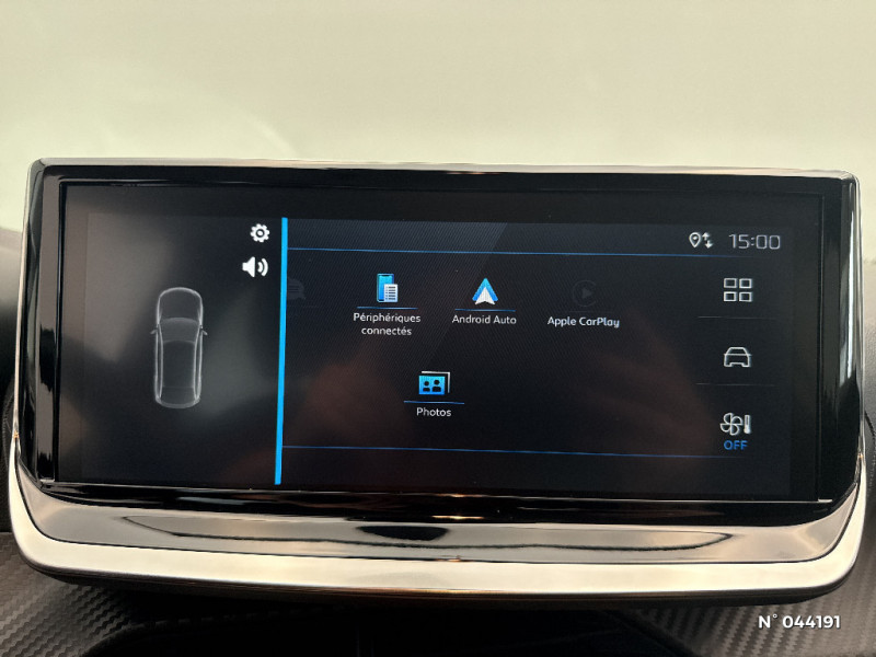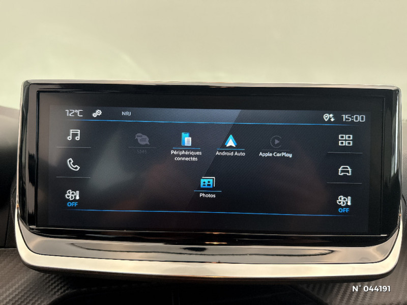 Habitacle et ciel de pavillon clair / Jupes AR inférieure noir grainé / Jupes AR supérieure noir grainé / Lécheurs de vitres Noir mat / Lève-vitres AR électriques et séquentiels avec antipincement / Lève-vitres AV électriques et séquentiels avec antipincement / Pack Safety Régulateur / Limiteur de vitesse, Freinage d'urgence automatique avec alerte risque de collision, Alerte active de franchissement involontaire de ligne et bas côté, Reconnaissance étendue des panneaux de signalisation et préconisation de vitesse, Alerte attention conducteur / Pack Visibilité Allumage automatique des feux de croisement / Panneaux de porte AV avec médaillon décor Carbone injecté et baguette noire brillante et tampographie noir mat / Panneaux de portes AR injectés grain Karsten sans baguette / Peugeot Connect SOS & Assistance et Teleservices SOS & Assistance : Appel d'urgence automatique ou manuel par push SOS, et mise en relation directe avec la plateforme d'assistance PEUGEOT (24h/24 7j/7) , Teleservices : Détection du besoin d'une intervention technique ou d'une opération d'entretien périodique et transmission au réseau PEUGEOT pour prise de rendez vous / Peugeot i-Cockpit avec combiné tête haute analogique et matrice couleur 3,5" / Programme de Stabilité Electronique (ESC) avec ASR, ABS, REF, AFU, CDS et TSM / Projecteurs Peugeot LED Technology avec feux diurnes à LED 3 griffes / Rétroviseur intérieur à réglage jour/nuit manuel / Sellerie tissu RENZO, accompagnement Rimini, surpiqûres Orange Sunrise / Télécommande 3 boutons + clé standard / Touch screen 10'' & Bluetooth Radio & Telephone: Radio DAB avec écran tactile couleur 10'' SD, Bluetooth, Mirror Screen sans fil (Apple CarPlay / Android Auto), Ecran avec Toggles Switches, 1 prise USB type C ( Data+charge ) sur console AV / Vitres latérales AR et lunette AR chauffante temporisée teintées / Volant compact en croûte de cuir avec commandes multimédia intégrées / 3 poignées de maintien rétractables (1passager à l'AV et 2 à l'AR) / 6 Airbags (Frontaux auto-adaptatifs, latéraux AV et rideaux AV/AR) / 6 HP (2 tweeters et 2 woofers à l'AV et 2 larges bandes à l'AR) / Prise 12 V et rangement pour smartphone en façade centrale / Planche de bord Injecté avec Décor Carbone injecté et baguette Noir brillante avec jonc chromé / Accoudoirs de porte AV et AR textile Baladin gris chiné et surpiqûres Orange Sunrise / Aide au stationnement AR, graphique et sonore / Badge STYLE sur custode / Becquet rapporté Noir Brillant / Calandre Noir grainée avec marquage noir brillant polymirroir / Ceinture de sécurité AR centrale 3 points, avec détection de non bouclage / Ceintures de sécurité AR latérales avec enrouleurs pyrotechniques, limiteurs d'effort et détection de non bouclage / Ceintures de sécurité AV conducteur et passager à enrouleurs pyrotechniques avec limiteurs d'effort et détection de non bouclage / Commande d'ouverture des portes couleur caisse / Console basse avec frein de stationnement mécanique / Détection de sous-gonflage indirecte / Eclairage coffre à lampe / Eclairage intérieur Plafonnier AV A-DOME 3 ampoules (1 lampe, 2 liseuses AV) / Enjoliveur bas de calandre noir grainé / Enjoliveur DRL Noir grainé / Enjoliveur entre feux AR noir brillant / Enjoliveur supérieur de calandre Noir grainé / ESP Déconnectable avec aide au démarrage en pente / Feux AR signature 3 griffes, stop à LEDs, recul et indicateur de direction à lampe / Jantes tôle 16" avec enjoliveurs MONTI Gris Eclat avec vernis brillant & noir grainé