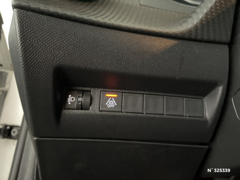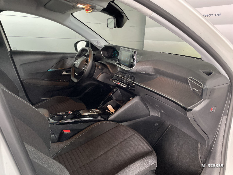 Fixations suivant norme ISOFIX aux places latérales AR avec étiquettes de localisation, et Top Tether / Fonction DAB (Radio Numérique Terrestre) / Fonction "Mirror Screen" (Apple CarPlay / Android Auto ) / Frein de stationnement électrique avec aide au démarrage en pente et serrage automatique / Habitacle et ciel de pavillon gris clair / Jupes de pare-chocs AR inférieure et supérieure Noir grainée / Kit de dépannage de pneumatique / Lève-vitres AR électriques et séquentiels avec antipincement / Lève-vitres AV électriques et séquentiels avec antipincement / Pack Safety / Pare-brise teinté acoustique / Passages de roue Noir brillant / PEUGEOT Connect SOS & Assistance et Telemaintenance / PEUGEOT Connect SOS & Assistance et Telemaintenance / Peugeot i-Cockpit avec combiné tête haute analogique et matrice couleur 3,5" / Planche de bord slush et panneaux de portes AV avec décors aspect carbone / Programme de Stabilité Electronique (ESC) avec ASR, ABS, REF, AFU, CDS et TSM / Projecteurs 'Peugeot LED Technology', indicateurs de direction à ampoules / Aide graphique et sonore au stationnement AR / Air conditionné automatique mono-zone / Avertisseur de temps de conduite / Bandeau entre feux AR Noir brillant / Câble électrique mode 3, prises de charge T2/T2 / Calandre haut de gamme avec grille supérieure avec marquage couleur caisse et enjoliveur supérieur Noir Brillant / Ceinture de sécurité AR centrale 3 points, avec détection de non bouclage / Ceintures de sécurité AR latérales avec enrouleurs pyrotechniques, limiteurs d'effort et détection de non bouclage / Eclairage intérieur à ampoules : plafonnier AV à 3 spots (1 lampe et 2 liseuses) / Feux diurnes à LED sous projecteurs / Radio avec écran tactile 7" couleur capacitif, 2 prises USB (DATA type A, recharge type C) sur console AV / Rétroviseur intérieur à réglage jour/nuit manuel / Rétroviseurs extérieurs dégivrants avec réglage et rabattement électriques / Sellerie Tri matière Tissu PNEUMA 3D, surpiqûre Bleu Azure / Seuil de portes lettrage "PEUGEOT" / Système stop & go couplé avec l'assistance au positionnement sur la voie / Teinte métallisée Jaune Faro / Vitres latérales AR et lunette AR chauffante temporisée surteintées / Volant compact croute de cuir, Lion chromé et commandes multimédia sur volant / 1 Poignée de maintien passager AV / 2 prises USB (Recharge type A) sur console basse pour passagers AR / 3 poignées de maintien (1 à l'AV et 2 à l'AR) / 6 HP (2 tweeters et 2 woofers à l'AV et 2 larges bandes à l'AR) / Ceintures de sécurité AV conducteur et passager à enrouleurs pyrotechniques avec limiteurs d'effort et détection de non bouclage / Chargeur embarqué 7,4 kW monophasé / Console haute avec accoudoir intégré / Décor panneaux de portes Noir et Azure / Démarrage mains libres avec 2 télécommandes 3 boutons / Détection de sous-gonflage indirecte / Eclairage coffre à lampe