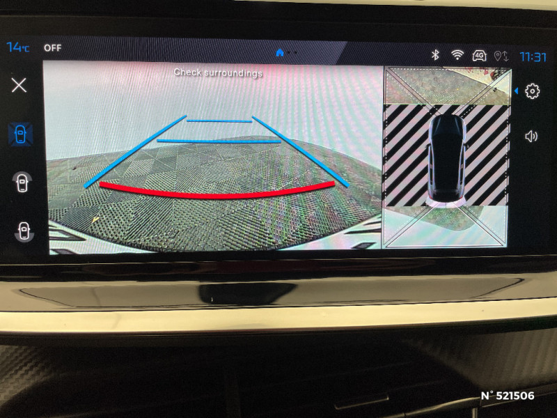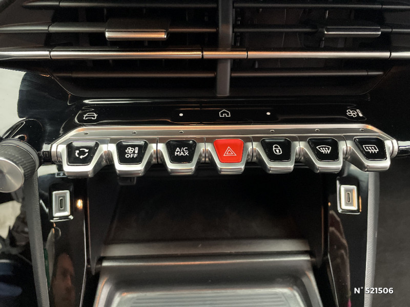 Sellerie tissu CASUAL LOMSA embossé, accompagnement TEP Isabella, tri matière LOMSA et surpiqûres Quartz / Détection de sous-gonflage indirecte / Air conditionné automatique mono-zone / Panneaux de portes AR injectés grain Karsten sans baguette / Planche de bord Slush avec Décor Carbone slush et baguette Noir brillante avec jonc Chromé / Essuie-vitre AV à déclenchement automatique / Lève-vitres AV électriques et séquentiels avec antipincement / Ceintures de sécurité AR latérales avec enrouleurs pyrotechniques, limiteurs d'effort et détection de non bouclage / Vitres latérales AR et lunette AR chauffante temporisée surteintées / Pack Safety Régulateur / Limiteur de vitesse Freinage d'urgence automatique avec alerte risque de collision Alerte active de franchissement involontaire de ligne et bas côté Reconnaissance étendue des panneaux de signalisation et préconisation de vitesse Alerte attention conducteur / Pack Visibilité Allumage automatique des feux de croisement / Eclairage intérieur Plafonnier AV A-DOME 3 ampoules (1 lampe, 2 liseuses AV) / 6 haut-parleurs (2 tweeters et 2 woofers à l'AV et 2 haut-parleurs à l'AR) / Projecteurs "Peugeot LED Technology" avec feux diurnes à LED 3 griffes / Panneaux de porte AV avec médaillon décor Carbone injecté et baguette Noir brillante avec tampographie Quartz / 1 prise USB type C ( Data+charge ) et 1 prise USB type C (Charge) sur console AV / Ceintures de sécurité AV conducteur et passager à enrouleurs pyrotechniques avec limiteurs d'effort et détection de non bouclage / 6 Airbags - Frontaux auto-adaptatifs, latéraux AV et rideaux AV et AR / Ceinture de sécurité AR centrale 3 points, avec détection de non bouclage / Télécommande 3 boutons + clé standard / Rétroviseurs extérieurs dégivrants avec réglage et rabattement électriques / Feux AR signature 3 griffes, stop à LEDs, recul et indicateur de direction à lampe / Antenne requin / Accoudoirs sur portes AV et AR en TEP avec surpiqûre Quartz / 3 poignées de maintien rétractables (1passager à l'AV et 2 à l'AR) / Calandre haut de gamme noir grainée avec marquage couleur caisse / Prise 12V et rangement pour smartphone en façade centrale / Enjoliveur DRL Noir grainé / Enjoliveur bas de calandre noir grainé / Enjoliveur supérieur de calandre Noir grainé / Enjoliveur entre feux AR noir brillant / Becquet rapporté Noir Brillant / Commande d'ouverture des portes couleur caisse / Lécheurs de vitres Noir Mat / 1 prise USB type C (Charge) et 1 prise USB type A (Charge) pour passagers AR / Jupes AR inférieure noir grainé / ESP Déconnectable avec aide au démarrage en pente / Jantes alliage 16" diamantées NOMA bi--ton vernis brillant et Noir Orbital / Programme de Stabilité Electronique (ESC) avec ASR, ABS, REF, AFU, CDS et TSM / Habitacle et ciel de pavillon clair / Jupes AR supérieure Noir brillant / Lève-vitres AR électriques et séquentiels avec antipincement / Peugeot i-Cockpit avec combiné tête haute 10'' numérique / Peugeot i-Connect Radio DAB avec écran tactile couleur personnalisable 10" HD,Bluetooth, Mirror Screen sans fil (Apple CarPlay/Android Auto), Wifi, 1 prise USB type C ( Data+charge ) et 1 prise USB type C (Charge) sur console AV / Aide graphique et sonore au stationnement AV et AR / Volant compact croute de cuir avec commandes multimédia intégrées / Console haute avec accoudoir & frein de stationnement électrique 1 prise USB type C (Charge) et 1 prise USB type A (Charge) pour passagers AR, Sélecteur de mode de conduite Normal/Eco/Sport / Boîte de vitesse automatique, séquentielle (6 rapports) / Pack Safety Régulateur / Limiteur de vitesse, Freinage d'urgence automatique avec alerte risque de collision, Freinage automatique d'urgence avec détection élargie (3 caméras haut de pare-brise) et protection des usagers de la route vulnérables (piétons, cyclistes,), Alerte active de franchissement involontaire de ligne et bas côté, Reconnaissance étendue des panneaux de signalisation et préconisation de vitesse, Alerte attention conducteur / PEUGEOT Connect SOS & Assistance et Teleservices SOS & Assistance : Appel d'urgence automatique ou manuel par push SOS, et mise en relation directe avec la plateforme d'assistance PEUGEOT (24h/24 7j/7) Teleservices : Détection du besoin d?une intervention technique ou d?une opération d?entretien périodique et transmission au réseau PEUGEOT pour prise de rendez vous / Rétroviseur intérieur électrochrome / Eclairage coffre à lampe