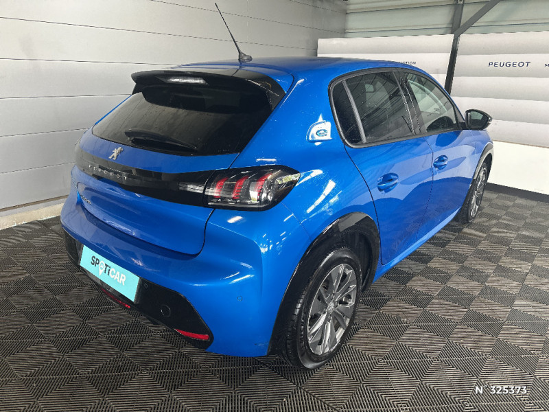 Jupes de pare-chocs AR inférieure et supérieure Noir brillant / Kit de dépannage de pneumatique / Aide graphique et sonore au stationnement AR / Lève-vitres AR électriques et séquentiels avec antipincement / Lève-vitres AV électriques et séquentiels avec antipincement / Pack Safety / Pare-brise teinté acoustique / Passages de roue Noir brillant / PEUGEOT Connect SOS & Assistance et Telemaintenance / PEUGEOT Connect SOS & Assistance et Telemaintenance / Peugeot i-Cockpit avec combiné tête haute analogique et matrice couleur 3,5" / Planche de bord slush et panneaux de portes AV avec décors aspect carbone / Programme de Stabilité Electronique (ESC) avec ASR, ABS, REF, AFU, CDS et TSM / Projecteurs 'Peugeot LED Technology', indicateurs de direction à ampoules / Radio avec écran tactile 7" couleur capacitif, 2 prises USB (DATA type A, recharge type C) sur console AV / Rétroviseur intérieur photosensible / Rétroviseurs extérieurs dégivrants avec réglage et rabattement électriques / Sans seuil de portes lettrage "PEUGEOT" / Sellerie Tri-matières tissu COSY / TEP Mistral, surpiqûres Mentholées / Système stop & go couplé avec l'assistance au positionnement sur la voie / Teinte métallisée Jaune Faro / Visio Park 1: Caméra de recul avec restitution sur l'écran tactile d'une vue AR et d'une vue de dessus de l'environnement AR du véhicule + Aide graphique et sonore au stationnement AR / Vitres latérales AR et lunette AR chauffante temporisée surteintées / Volant compact croute de cuir, Lion chromé et commandes multimédia sur volant / 1 Poignée de maintien passager AV / 2 prises USB (Recharge type A) sur console basse pour passagers AR / 3 poignées de maintien (1 à l'AV et 2 à l'AR) / 6 HP (2 tweeters et 2 woofers à l'AV et 2 larges bandes à l'AR) / Air conditionné automatique mono-zone / Avertisseur de temps de conduite / Bandeau entre feux AR Noir brillant / Câble électrique mode 3, prises de charge T2/T2 / Calandre haut de gamme avec grille supérieure avec marquage couleur caisse et enjoliveur supérieur Noir Brillant / Ceinture de sécurité AR centrale 3 points, avec détection de non bouclage / Ceintures de sécurité AR latérales avec enrouleurs pyrotechniques, limiteurs d'effort et détection de non bouclage / Ceintures de sécurité AV conducteur et passager à enrouleurs pyrotechniques avec limiteurs d'effort et détection de non bouclage / Chargeur embarqué 7,4 kW monophasé / Console haute avec accoudoir intégré / Décor panneaux de portes Noir et Azure / Démarrage mains libres avec 2 télécommandes 3 boutons / Détection de sous-gonflage indirecte / Eclairage coffre à lampe / Eclairage intérieur à ampoules : plafonnier AV à 3 spots (1 lampe et 2 liseuses) / Essuie-vitre AV à déclenchement automatique / Feux diurnes à LED sous projecteurs / Fixations suivant norme ISOFIX aux places latérales AR avec étiquettes de localisation, et Top Tether / Fonction DAB (Radio Numérique Terrestre) / Fonction "Mirror Screen" (Apple CarPlay / Android Auto ) / Frein de stationnement électrique avec aide au démarrage en pente et serrage automatique / Habitacle et ciel de pavillon gris clair
