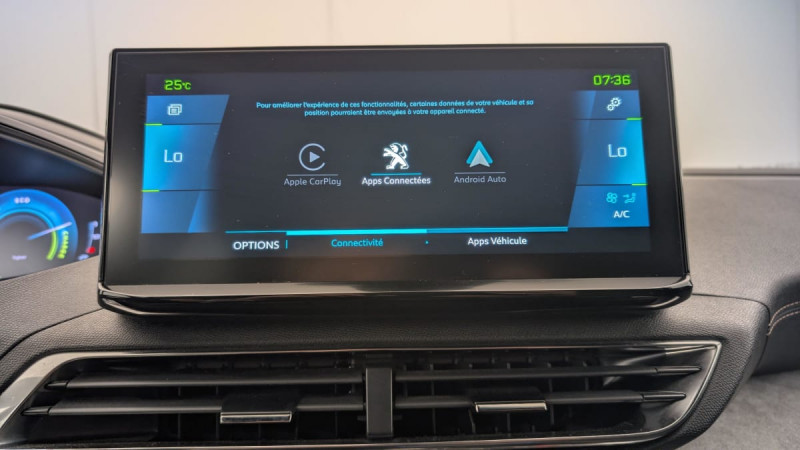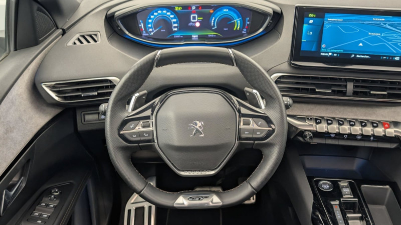 Accès et démarrage mains libres / Détection de sous-gonflage indirecte / Coques de rétroviseurs extérieurs Noir Perla Nera / Pack City 1 : Aide graphique et sonore au stationnement AV Aide graphique et sonore au stationnement AR Visiopark 1 : caméra de recul avec restitution sur l'écran tactile d'une vue AR et d'une vue de dessus de l'environnement AR du véhicule / Avertisseur de temps de conduite / Pack Safety Plus : Alerte Risque de Collision (Distance Alert) Alerte attention conducteur Commutation automatique des feux de route / feux de croisement Alerte active de franchissement involontaire de ligne et bas côté Freinage d'urgence automatique avec caméra & radar Système de surveillance d'angle mort / Pack Eclairage d'ambiance : Eclairage à LED des caves à pied, éclairage d'ambiance à LED sur panneaux de portes AV / Canules d'echappement de style chromées / Indicateur de rapport conseillé / Sécurité enfants électrique des vitres AR / Accoudoir central AV à ouverture papillon, avec compartiment de rangement éclairé et réfrigérable / Essuie-vitre AV avec système de lavage "Magic Wash" / Poches/filets aumonières au dos des sièges AV / Prise 12 V (x3 : zone connectique, AR de console et coffre) / Plafonniers AV/AR à LED avec 2 spots de lecture / Air conditionné automatique bi-zone avec aérateurs aux places AR / Kit de dépannage de pneumatique : compresseur 12 volts, flacon de produit de colmatage, anneau de remorquage, deux cales de roue, manivelle de frein de stationnement électrique / Toggle Switches chromés (touches piano d'activation des fonctions de l'écran tactile) / Pédalier et repose-pied conducteur en aluminium / Barres de toit longitudinales en aluminium / Frein de stationnement électrique avec aide au démarrage en pente et serrage automatique / Plancher de coffre fixe avec articulation pour accès au coffre de rangement du câble de recharge / PEUGEOT Connect SOS / Décors de planche de bord et panneaux de portes Alcantara Gris Greval / Prises USB de charge (x2) au 2ème rang / Commandes de lève-vitres avec inserts chromés / Rétroviseur intérieur photosensible sans cadre / Fonction "Mirror Screen" (Apple CarPlay / Android Auto ) / Pack Drive Assist Plus : Régulateur de vitesse adaptatif avec fonction Stop&Go Aide au maintien de la position dans la voie (Lane Positioning Assist) / Toit "Black Diamond" / Navigation 3D connectée avec écran tactile capacitif 10" HD Avec reconnaissance vocale, cartographie Europe / Câble de recharge T2 mode 2 (10 A / 2,3 kW) / Garnissage Tissu BELOMKA / TEP / Pack Visibilité : Eclairage d'accompagnement automatique Allumage automatique des feux de croisement Essuie-vitre AV à déclenchement automatique / 6 airbags (Frontaux adaptatifs, latéraux AV, rideaux AV/AR) / Appuis-tête à sécurité optimisée réglables en hauteur (conducteur, passager et AR x3) / Banquette AR rabattable 1/3 - 2/3 avec accoudoir central, trappe à skis et commandes de rabattement depuis le coffre / Calandre avec design évolutif chromé / Enjoliveur d'arc de pavillon en Inox Brillant / Enjoliveurs d'ailes AV chromés / Jantes alliage 18" diamantées DETROIT bi-ton Noir Onyx brillant avec pneumatiques 225/55 R18 102 V / Lécheurs de vitres, joncs de vitres latérales en Inox Brillant / Pares-soleil avec miroirs de courtoisie éclairés / Passages de roues rapportés Noir Mat / Peugeot i-Cockpit avec combiné tête haute numérique, volant compact multi-fonctions / Rétroviseurs extérieurs dégivrants avec réglage et rabattement électriques, éclairage d'accueil à LED, témoin de surveillance d'angles morts / Sabot de pare-chocs AV peint Métallure / Siège conducteur avec réglage lombaire / Sélecteur de modes de conduite (Electric, Hybrid, Sport, 4WD) / Trappe de recharge électrique avec indicateur d'état de charge / Vitres latérales AR et lunette AR chauffante surteintées / Vitres latérales AV feuilletées acoustiques / Volant cuir fleur perforé Mistral avec bagues chromées et badge GT / Avertisseur sonore audible depuis l'extérieur pour la sécurité piétons / Projecteurs "Peugeot Full LED Technology" avec correction automatique de site, fonction Eclairage Virage Statique,"Foggy Mode" et feux diurnes à LED sous projecteurs / Lève-vitres AV/AR électriques et séquentiels avec antipincement / / Véhicules équivalents: C5 Aircross - Tiguan - X3