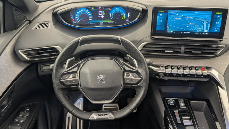 Accès et démarrage mains libres / Détection de sous-gonflage indirecte / Coques de rétroviseurs extérieurs Noir Perla Nera / Pack City 1 : Aide graphique et sonore au stationnement AV Aide graphique et sonore au stationnement AR Visiopark 1 : caméra de recul avec restitution sur l'écran tactile d'une vue AR et d'une vue de dessus de l'environnement AR du véhicule / Avertisseur de temps de conduite / Pack Safety Plus : Alerte Risque de Collision (Distance Alert) Alerte attention conducteur Commutation automatique des feux de route / feux de croisement Alerte active de franchissement involontaire de ligne et bas côté Freinage d'urgence automatique avec caméra & radar Système de surveillance d'angle mort / Pack Eclairage d'ambiance : Eclairage à LED des caves à pied, éclairage d'ambiance à LED sur panneaux de portes AV / Canules d'echappement de style chromées / Indicateur de rapport conseillé / Sécurité enfants électrique des vitres AR / Accoudoir central AV à ouverture papillon, avec compartiment de rangement éclairé et réfrigérable / Essuie-vitre AV avec système de lavage "Magic Wash" / Poches/filets aumonières au dos des sièges AV / Prise 12 V (x3 : zone connectique, AR de console et coffre) / Plafonniers AV/AR à LED avec 2 spots de lecture / Air conditionné automatique bi-zone avec aérateurs aux places AR / Kit de dépannage de pneumatique : compresseur 12 volts, flacon de produit de colmatage, anneau de remorquage, deux cales de roue, manivelle de frein de stationnement électrique / Toggle Switches chromés (touches piano d'activation des fonctions de l'écran tactile) / Pédalier et repose-pied conducteur en aluminium / Barres de toit longitudinales en aluminium / Frein de stationnement électrique avec aide au démarrage en pente et serrage automatique / Plancher de coffre fixe avec articulation pour accès au coffre de rangement du câble de recharge / PEUGEOT Connect SOS / Décors de planche de bord et panneaux de portes Alcantara Gris Greval / Prises USB de charge (x2) au 2ème rang / Commandes de lève-vitres avec inserts chromés / Rétroviseur intérieur photosensible sans cadre / Fonction "Mirror Screen" (Apple CarPlay / Android Auto ) / Pack Drive Assist Plus : Régulateur de vitesse adaptatif avec fonction Stop&Go Aide au maintien de la position dans la voie (Lane Positioning Assist) / Navigation 3D connectée avec écran tactile capacitif 10" HD Avec reconnaissance vocale, cartographie Europe / Câble de recharge T2 mode 2 (10 A / 2,3 kW) / Garnissage Tissu BELOMKA / TEP / Pack Visibilité : Eclairage d'accompagnement automatique Allumage automatique des feux de croisement Essuie-vitre AV à déclenchement automatique / 6 airbags (Frontaux adaptatifs, latéraux AV, rideaux AV/AR) / Appuis-tête à sécurité optimisée réglables en hauteur (conducteur, passager et AR x3) / Banquette AR rabattable 1/3 - 2/3 avec accoudoir central, trappe à skis et commandes de rabattement depuis le coffre / Calandre avec design évolutif chromé / Enjoliveur d'arc de pavillon en Inox Brillant / Enjoliveurs d'ailes AV chromés / Jantes alliage 18" diamantées DETROIT bi-ton Noir Onyx brillant avec pneumatiques 225/55 R18 102 V / Lécheurs de vitres, joncs de vitres latérales en Inox Brillant / Pares-soleil avec miroirs de courtoisie éclairés / Passages de roues rapportés Noir Mat / Peugeot i-Cockpit avec combiné tête haute numérique, volant compact multi-fonctions / Rétroviseurs extérieurs dégivrants avec réglage et rabattement électriques, éclairage d'accueil à LED, témoin de surveillance d'angles morts / Sabot de pare-chocs AV peint Métallure / Siège conducteur avec réglage lombaire / Sélecteur de modes de conduite (Electric, Hybrid, Sport, 4WD) / Trappe de recharge électrique avec indicateur d'état de charge / Vitres latérales AR et lunette AR chauffante surteintées / Vitres latérales AV feuilletées acoustiques / Volant cuir fleur perforé Mistral avec bagues chromées et badge GT / Avertisseur sonore audible depuis l'extérieur pour la sécurité piétons / Projecteurs "Peugeot Full LED Technology" avec correction automatique de site, fonction Eclairage Virage Statique,"Foggy Mode" et feux diurnes à LED sous projecteurs / Lève-vitres AV/AR électriques et séquentiels avec antipincement / / Véhicules équivalents: C5 Aircross - Tiguan - X3