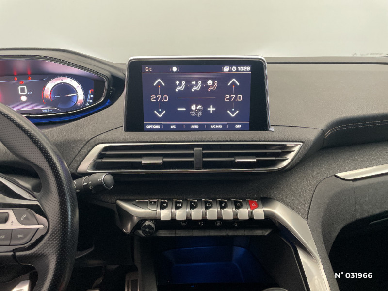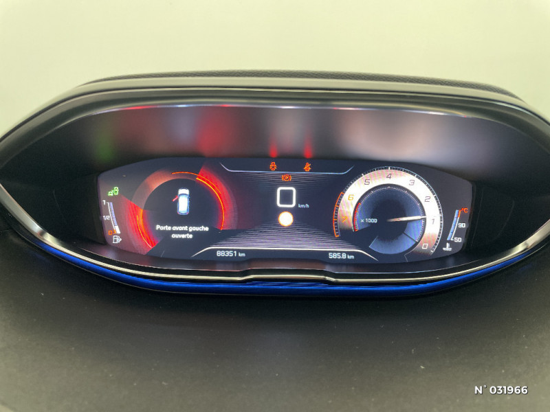Eclairage intérieur à LED : plafonniers, rangements, coffre / Siège passager AV mécanique réglable en hauteur / Siège passager AV mécanique avec mise en tablette / Spots de lecture (2x) AR / Fonction "Mirror Screen" / Radio 6 HP, bi-tuner compatible MP3 et connectivité Bluetooth (audio streaming, kit mains libres), avec commandes au volant, écran tactile capacitif 8" / Pack Visibilité / Poignées de portes couleur carrosserie / ABS, AFU, REF / Accès et démarrage mains libres / Pédalier et repose-pied conducteur aluminium / Détection de sous-gonflage indirecte / Réglage en hauteur du siège passager (mécanique) / Seuils de portes AV en Inox / Surtapis AV et AR / Peinture opaque / Pack City 1 / Visiopark 1 / Toit "Black Diamond" (toit Noir Perla Nera) / PEUGEOT i-Cockpit Amplify / Peugeot Connect / Avertisseur de temps de conduite / Calandre avec jonc périphérique et facettes chromés / Enjoliveur d'arc de pavillon en inox / Lève-vitres électriques AV et AR séquentiels avec antipincement / Appuis-tête à sécurité optimisée réglables en hauteur sur les sièges conducteur et passager AV ainsi que sur les places AR / Ceintures de sécurité AV 3 points à enrouleur, réglables en hauteur avec prétensionneurs et limiteurs d'effort / Ceintures de sécurité AR 3 points à enrouleur (x3) avec prétensionneurs et limiteurs d'effort aux places latérales / Contrôle dynamique de stabilité CDS avec antipatinage électronique ASR / Indicateur de rapport conseillé / Sécurité enfants électrique des vitres AR / Bandeaux de pare-chocs AR chromé / Calandre avec jonc périphérique chrome brillant et satiné, damier chromé et lettrage Peugeot noir / Passages de roues rapportés noirs / Décors intérieurs chromés / Accoudoir central AV à ouverture papillon, avec compartiment de rangement éclairé et réfrigérable / Boîte à gants floquée et éclairée / Console centrale AV avec 2 porte-gobelets / Direction assistée électrique, colonne de direction réglable en hauteur et profondeur (mécanique) / Essuie-vitre AV avec système de lavage "Magic Walsh" / Kit de dépannage de pneumatique / Frein de stationnement électrique avec aide au démarrage en pente / Vitres latérales AR et lunette AR surteintées / Projecteurs "Peugeot Full Led Technology" / Plancher de coffre 2 positions / Réglage en hauteur du siège conducteur / Inserts d'ailes AV chromés / Ecran tactile capacitif 8" et "Toggles Switches" / Pack Safety Plus / Jantes alliage 18" "Detroit" bi-ton diamantées / Enjoliveur en inox sur les protecteurs de bas de portes / Sabots de pare-chocs AV gris métallisé / Décors de planche de bord et panneaux de portes en maille "Brumeo" / Pack Eclairage d'ambiance / Mise en tablette du siège passager / Projecteurs antibrouillard à LED avec fonction cornering / Boitiers de rétroviseurs extérieurs Noir Perla Nera / Sellerie TEP & Tissu "Imila" / Bouclier AV exclusif et calandre à damier chromé / Canules d'echappement de style chromées / Jonc de vitres en inox / Habitacle et ciel de pavillon Noir Mistral / Volant Cuir pleine fleur perforé avec bagues chromées et badge GT Line / Essuie-vitre AR avec enclenchement automatique en marche AR / Lunette AR chauffante avec antennes sérigraphiées / Plafonnier AV avec spots de lecture (x2) et plafonnier AR à extinction temporisée / Poches/filets aumonières au dos des sièges AV / Poignées de maintien (x4) rétractables avec frein (crochets pour cintres aux places AR) / Banquette AR rabattable 1/3 - 2/3 (avec modularité "Magic Flat"et commandes dans le coffre) avec accoudoir et trappe à skis / Prise USB (dans la zone connectique) / Prise 12V (x3 : zone connectique, AR de console et coffre) / Fixations pour 3 sièges enfants suivant norme ISOFIX aux places passager AV et latérales AR / Aide sonore et graphique au stationnement AR / Air conditionné automatique bi-zone avec aérateurs aux places AR / Commande de verrouillage à distance (2 plips) / Airbags frontaux conducteur et passager adaptatifs (passager neutralisable par clé), airbags latéraux conducteur et passager AV, airbags rideaux de tête aux places AV et AR