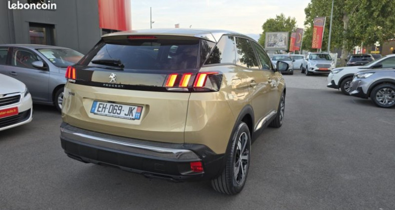 Peugeot 3008 1.6 BlueHDi 120ch SetS BVM6 Allure tout-terrain, or, 6 cv, 5 portes, première mise en circulation le 08/12/2016, garantie 3 mois. 5 places OPTIONS ET ÉQUIPEMENTS : Audio - Télécommunications : - Fonction Mirror Screen - Peugeot Connect - Radio 6HP - Prise audio usb - ecran tactile Conduite : - Accès et démarrage mains libres - limiteur de vitesse - pack visibilite Couleur : - Peinture opaque Extérieur : - Aide au stationnement AR - Aide au stationnement AV - Aide sonore et graphique au stationnement AR - Boitiers de rétroviseurs extérieurs et poignées de portes dans la couleur de la carrosserie - Pack City 1 - Rétroviseurs extérieurs rabattables électriquement et éclairage d'accueil à LED - jantes : alliage - jantes alliage - rétroviseurs dégivrants - rétroviseurs rabattables - rétroviseurs électriques Intérieur : - Air conditionné automatique bi-zone - Air conditionné automatique bi-zone avec aérateurs aux places AR - Boîte à gants floquée et éclairée - Eclairages intérieurs à LED - Indicateur de rapport conseillé - Mise en tablette du siège passager - Pack Eclairage d'ambiance - Plancher de coffre 2 positions - Poches/filets aumonières au dos des sièges AV - Réglage en hauteur du siège passager (mécanique) - Réglage lombaire du siège conducteur - Siège conducteur mécanique réglable en hauteur - Siège conducteur à réglage lombaire - Siège passager AV avec mise en tablette - Siège passager AV mécanique avec mise en tablette - Siège passager AV mécanique réglable en hauteur - Siège passager AV réglable en hauteur - Spots de lecture (2x) AR - Spots de lecture AR - Sécurité enfants électrique des vitres AR - accoudoir central - direction assistée - fermeture centralisée - siège conducteur réglable en hauteur - trappe à ski - verrouillage automatique des portes en roulant - verrouillage à distance - vitres électriques - volant cuir Pack : - Boitiers de rétroviseurs extérieurs dans la couleur de la carrosserie - Ceintures de sécurité AV 3 points à enrouleur - Console centrale AV avec 2 porte-gobelets - Décors intérieurs chromés - Miroirs de courtoisie éclairés - Pack Safety Plus - Projecteurs halogènes avec feux diurnes à LED - Radio bi-tuner - Sabots de pare-chocs AV gris métallisé - Vitres latérales AR et lunette AR surteintées - ASR - Cockpit numérique - Sieges arrières rabattable - frein parking automatique - nombre de rapports : 6 vitesses Sellerie : - Sellerie TEP & Tissu Evron - Sellerie TEP & Tissu Piedimonte Sécurité : - Kit de dépannage de pneumatique - Reconnaissance des panneaux de vitesse et préconisation de vitesse - latéraux AV et rideaux) - 6 Airbags (frontaux - ABS - Aide au demarrage en pente - aide au freinage d'urgence - airbags frontaux - anti-patinage - contrôle pression des pneus - fixations ISOFIX - phares antibrouillard Autres équipements et informations : - AR de console et coffre) - Appuis-tête à sécurité optimisée réglables en hauteur sur les sièges conducteur et passager AV ainsi que sur les places latérales AR - Avertisseur de temps de conduite - Bandeau de pare-chocs AR chromé - Calandre avec jonc périphérique et facettes chromés - Ceintures de sécurité AR 3 points à enrouleur (x3) avec prétensionneurs et limiteurs d'effort aux places latérales - Commande de verrouillage à distance (2 plips) - Décors de planche de bord et panneaux de portes en maille Brumeo - Eclairage d'accompagnement automatique - Enjoliveur d'arc de pavillon en inox - Enjoliveur en inox sur les protecteurs de bas de portes - Essuie-vitre AR avec enclenchement automatique en marche AR - Essuie-vitre AV avec système de lavage Magic Wash - Inserts d'ailes AV chromés - Lunette AR chauffante avec antennes sérigraphiées - Passages de roues rapportés noirs - Poignées de maintien (x4) rétractables avec frein (crochets pour cintres aux places AR) - Prise 12 V (x3 : zone connectique - Projecteurs halogènes à l'AV avec feux diurnes à LED - REF - Toggle Switches chromés (touches piano d'activation des fonctions de l'écran tactile) - Classe Crit'air : 2 - Puissance kilowatt : 88 kw - USB - plafonnier avant - puissance réelle : 120 ch - émission CO2 : 104 g/km Référence annonce : 118VO010602