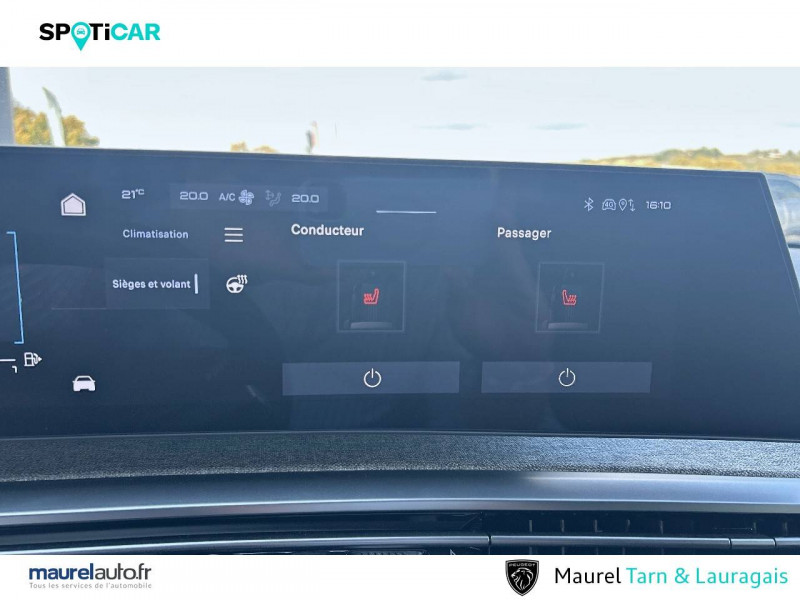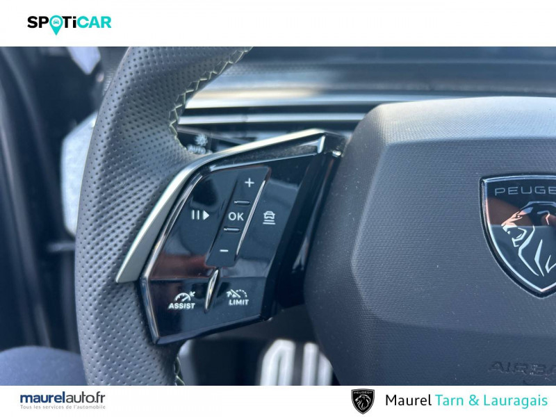 Accès et démarrage mains libres Proximity / Eclairage d'ambiance indirect, jour & nuit sur la planche de bord, les panneaux de portes AV et sous l'écran panoramique 21'', associé aux modes de conduite, personnalisable en 8 couleurs / Hayon motorisé avec accès mains libres / Pack Safety Plus Régulateur / Limiteur de vitesse, Freinage d'urgence automatique avec alerte risque de collision pilotée par caméra et radar, Alerte active de franchissement involontaire de ligne et bas côté, Reconnaissance étendue des panneaux de signalisation et préconisation de vitesse, Alerte attention conducteur / PEUGEOT i-Cockpit panoramique avec écran incurvé et flottant 21 HD / Toit et becquet AR Black Diamond / Visiopark 1 Caméra de recul & aide au stationnement AV et AR, graphique et sonore