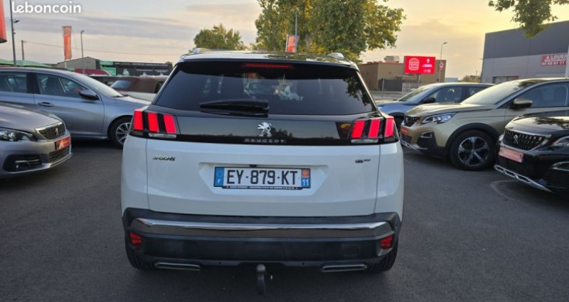 Peugeot 3008 BlueHDi 180ch SetS EAT8 GT tout-terrain, blanc, 9 cv, 5 portes, première mise en circulation le 22/06/2018, garantie 3 mois. 5 places OPTIONS ET ÉQUIPEMENTS : Audio - Télécommunications : - Fonction Mirror Screen - Mirror Screen - Peugeot Connect - Radio 6 HP - Prise audio usb - ecran tactile - radio numérique Conduite : - Accès et démarrage mains libres - Pack Drive Assist - limiteur de vitesse - pack visibilite Couleur : - Coques de rétroviseurs noires - Peinture opaque - Peinture opaque Gris Hurricane Extérieur : - Aide au stationnement AR - Aide au stationnement AV - Aide sonore et graphique au stationnement AR - Canules d'echappement de style chromées - Hayon mains libres - Jantes alliage 19 Washington bi-ton diamantées - Jonc de vitres en inox - Pack City 1 - Projecteurs Peugeot Full Led Technology - Rétroviseurs extérieurs rabattables électriquement avec éclairage d'accueil à LED - barres de toit - jantes : alliage - jantes alliage - rétroviseurs dégivrants - rétroviseurs rabattables - rétroviseurs électriques Intérieur : - Air conditionné automatique bi-zone - Air conditionné automatique bi-zone avec aérateurs aux places AR - Banquette rabattable 1/3 - Boîte à gants floquée et éclairée - Eclairage intérieur LED: plafonnier tactile 3 spots + 2 LEDs d'ambiance - Indicateur de rapport conseillé - Mise en tablette du siège passager - Pack Eclairage d'ambiance - Plancher de coffre 2 positions - Poches/filets aumonières au dos des sièges AV - Pédalier et repose-pied conducteur aluminium - Réglage en hauteur du siège conducteur - Réglage en hauteur du siège passager (mécanique) - Réglage lombaire du siège conducteur - Sécurité enfants électrique des vitres AR - accoudoir central - direction assistée - trappe à ski - verrouillage à distance - vitres électriques Pack : - Boitiers de rétroviseurs extérieurs Noir Perla Nera - Boitiers de rétroviseurs extérieurs chromés - Ceintures de sécurité AV 3 points à enrouleur - Console centrale AV avec 2 porte-gobelets - Driver Sport Pack - Décor intérieur chrome acier - Décor intérieur chrome satin - Décors de planche de bord et panneaux de portes Alcantara - Ecrous de roues antivol - Habitacle et ciel de pavillon Noir Mistral - Miroirs de courtoisie éclairés - PEUGEOT i-Cockpit Amplify - Pack Safety Plus - Planche de bord surpiquée - Poignées de portes couleur carrosserie - Radio bi-tuner - Sabots de pare-chocs AV gris métallisé - Seuils de port - Seuils de portes AV aluminium - ASR - Cockpit numérique - Sieges arrières rabattable - frein parking automatique - nombre de rapports : 8 vitesses Sellerie : - Sellerie TEP & Alcantara Sécurité : - Alerte de franchissement involontaire de ligne - Kit de dépannage de pneumatique - Kit de dépannage de pneumatique : compresseur 12 volts - Reconnaissance des panneaux de vitesse et préconisation de vitesse - latéraux AV et rideaux) - 6 Airbags (frontaux - ABS - Aide au demarrage en pente - aide au freinage d'urgence - airbags frontaux - anti-patinage - contrôle pression des pneus - fixations ISOFIX - phares antibrouillard Autres équipements et informations : - 2/3 - AR de console et coffre) - Appuis-tête à sécurité optimisée réglables en hauteur sur les sièges conducteur et passager AV ainsi que sur les places latérales AR - Avertisseur de temps de conduite - Bandeau de pare-chocs AR chromé - Bouclier AV exclusif et calandre à damier chromé - Calandre avec jonc périphérique chrome brillant et satiné - Calandre avec jonc périphérique et facettes chromés - Ceintures de sécurité AR 3 points à enrouleur (x3) avec prétensionneurs et limiteurs d'effort aux places latérales - Décors de planche de bord et panneaux de portes Grey Oak (bois véritable chêne gris) - Décors intérieurs (baguettes de planche de bord et panneaux de portes - Enjoliveur d'arc de pavillon en inox - Enjoliveur en inox sur les protecteurs de bas de portes - Essuie-vitre AR avec enclenchement automatique en marche AR - Essuie-vitre AV avec système de lavage Magic Wash - Fonction Mirror Screen (Apple Carplay / Android Auto / MirrorLink) - Inserts d'ailes AV chromés - Lunette AR chauffante avec antennes sérigraphiées - Navigation connectée 3D avec reconnaissance vocale - Passages de roues rapportés noirs - Passages de roues rapportés noirs élargis - Poignées de maintien (x4) rétractables avec frein (crochets pour cintres aux places AR) - Prise 12 V (x3 : zone connectique - Prises 12 V (x 3 : zone connectique - REF - Rétroviseurs extérieurs rabattables électriquement avec éclairage d'accueil à LED + 'Lion Spotlight' - Rétroviseurs extérieurs rabattables électriquement avec éclairage d'accueil à LED + 'Lion Spotlight' avec indexation de marche arrière - Classe Crit'air : 2 - Puissance kilowatt : 132 kw - USB - plafonnier avant - puissance réelle : 180 ch Référence annonce : 118VO010615