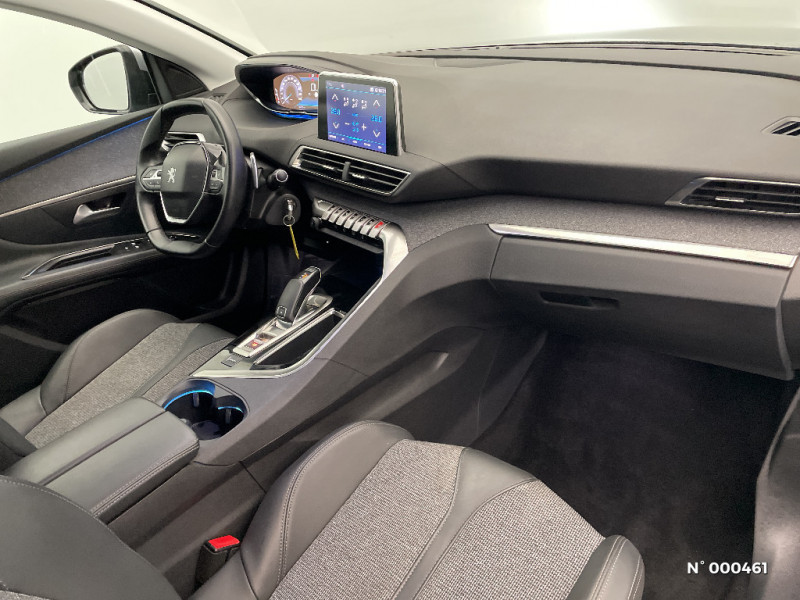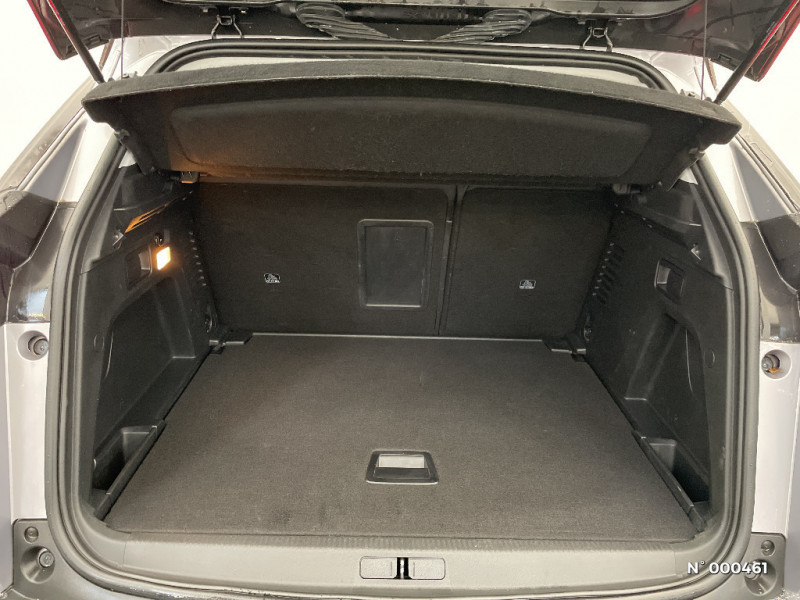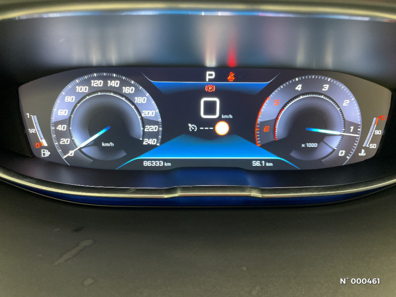 Fixations pour 3 sièges enfants suivant norme ISOFIX aux places passager AV et latérales AR / Fonction DAB (Radio Numérique Terrestre) / Fonction "Mirror Screen" / Fonction Mirror Screen (Apple Carplay / Android Auto / MirrorLink) / Frein de stationnement électrique avec aide au démarrage en pente / Indicateur de rapport conseillé / Inserts d'ailes AV chromés / Jantes alliage 18" "Detroit" bi-ton diamantées / Kit de dépannage de pneumatique / Kit de dépannage de pneumatique : compresseur 12 volts, flacon de produit de colmatage, anneau de remorquage, deux cales de roue, manivelle de frein de stationnement électrique / Lève-vitres AV/AR électriques et séquentiels avec antipincement / Lunette AR chauffante avec antennes sérigraphiées / Mirror Screen / Mise en tablette du siège passager / Navigation connectée 3D avec reconnaissance vocale / Nouveau PEUGEOT i-Cockpit avec dalle numérique tête haute / Pack City 1 / Pack Eclairage d'ambiance / Pack Safety Plus / Pack Visibilité / Passages de roues rapportés noirs / Peinture opaque Gris Hurricane / Peugeot Connect / Plafonnier AV avec spots de lecture (x2) et plafonnier AR à extinction temporisée / Plancher de coffre 2 positions / Poches/filets aumonières au dos des sièges AV / Poignées de maintien (x4) rétractables avec frein (crochets pour cintres aux places AR) / Poignées de portes couleur carrosserie / Prise USB (dans la zone connectique) / Réglage en hauteur du siège passager (mécanique) / Réglage lombaire du siège conducteur / Rétroviseurs extérieurs rabattables électriquement avec éclairage d'accueil à LED avec indexation de marche arrière / Sabots de pare-chocs AV gris métallisé / Sécurité enfants électrique des vitres AR / Sellerie TEP & Tissu "Piedimonte" ou "Evron" / Siège passager AV mécanique avec mise en tablette / Siège passager AV mécanique réglable en hauteur / Spots de lecture (2x) AR / Système d'antiblocage des roues ABS avec répartiteur électronique de freinage REF et assistance au freinage d'urgence AFU / Teinte opaque Gris Hurricane / Toggle Switches chromés (touches piano d'activation des fonctions de l'écran tactile) / Vitres latérales AR et lunette AR surteintées / Volant Cuir pleine fleur / Aide sonore et graphique au stationnement AR / Air conditionné automatique bi-zone avec aérateurs aux places AR / Airbags frontaux conducteur et passager adaptatifs (passager neutralisable par clé), airbags latéraux conducteur et passager AV.airbags rideaux de tête aux places AV/AR / Appuis-tête à sécurité optimisée réglables en hauteur sur les sièges conducteur et passager AV ainsi que sur les places latérales AR / Avertisseur de temps de conduite / Bandeau de pare-chocs AR chromé / Console centrale AV avec 2 porte-gobelets / Contrôle dynamique de stabilité CDS avec antipatinage électronique ASR / Coques de rétroviseurs couleur carrosserie / Décors de planche de bord et panneaux de portes aspect Carbone / Décors de planche de bord et panneaux de portes en maille "Brumeo" / Décors intérieurs (baguettes de planche de bord et panneaux de portes, enjoliveur de console) chromés / Détection de sous-gonflage indirecte / Direction assistée électrique, colonne de direction réglable en hauteur et profondeur (mécanique) / Eclairage intérieur à LED: plafonniers / Ecran tactile capacitif 8" et "Toggles Switches" / Enjoliveur d'arc de pavillon en inox / Enjoliveur en inox sur les protecteurs de bas de portes / Essuie-vitre AR avec enclenchement automatique en marche AR / Essuie-vitre AV avec système de lavage "Magic Wash" / Banquette AR rabattable 1/3 - 2/3 (avec modularité "Magic Flat" et commandes dans le coffre) avec accoudoir et trappe à skis / Prise 12 V (x3 : zone connectique, AR de console et coffre) / Prises 12 V (x 3 : zone connectique, AR de console et coffre) / Projecteurs halogènes à l'AV avec feux diurnes à LED / Radio bi-tuner / Radio 6 HP, bi-tuner compatible MP3 et connectivité Bluetooth (audio streaming, kit mains libres), avec commandes au volant, écran tactile capacitif 8" / Boîte à gants floquée et éclairée / Boitiers de rétroviseurs extérieurs dans la couleur de la carrosserie / Calandre avec jonc périphérique et facettes chromés / Ceintures de sécurité AR 3 points à enrouleur (x3) avec prétensionneurs et limiteurs d'effort aux places latérales / Ceintures de sécurité AV 3 points à enrouleur, réglables en hauteur avec prétensionneurs et limiteurs d'effort / Commande de verrouillage à distance (2 plips) / ABS, AFU, REF / Accès et démarrage mains libres / Accoudoir central AV à ouverture papillon, avec compartiment de rangement éclairé et réfrigérable