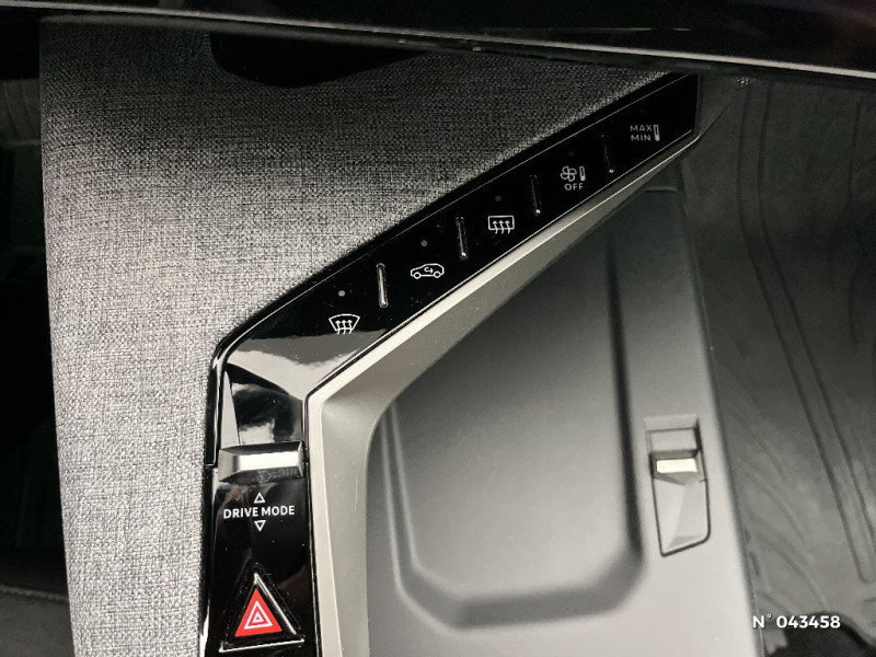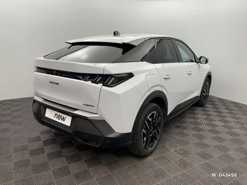 Plancher de coffre modulable 2 positions / Accès et démarrage mains libres Proximity 2 Télécommandes 3 boutons (verrouillage, coffre, déverrouillage) / 4 poignées de maintien rétractables (2 à l'AV et 2 à l'AR) / Eclairage intérieur Plafonnier AV et liseuses AR à LED, Boite à gants et rangement de console éclairés à LED, Eclairage des caves à pieds AV à LED / PEUGEOT i-Cockpit panoramique avec Double écran HD flottant (2 x 10'') / Vitres AR, custodes et lunette AR teintées / Banquette AR avec dossier rabattable 40/20/40 / PEUGEOT i-Connect Radio DAB, Bluetooth (connexion 2 téléphones), Mirror Screen sans fil (Apple CarPlay / Android Auto), Peugeot Connect SOS & Assistance, 1 prise USB C (Data & charge) / PEUGEOT i-Connect - Connect One: Fonctionnalités principales à bord (Mises à jour Over The Air, Géolocalisation), Services de sécurité (Appel d'urgence, Peugeot Assistance), Services d'entretien (Télémaintenance, guide d'utilisation digital), Divertissement (Jeux), (Abonnement 10 ans inclus) / PEUGEOT i-Connect - Connect Plus: Services de sécurité: alarme connectée, Services à distance (E-Remote Control, Remote Control, Find My Car, My Trip Report, Peugeot Skill for Alexa), e-ROUTES par Free2move charge, (Abonnement 6 mois inclus, renouvellement 8 / mois) / Eléments de style éxterieur Bandeau entre les projecteurs Noir laqué avec logo 3008. Calandre couleur caisse, écopes latérales Noir laqué, décor inférieur Gris Meteor, jupe inférieure Noir grainé. Vitres AR, vitres de custode et lunette AR surteintées. Lécheurs de vitres masqués. Enjoliveurs de passages de roues et protections inférieures de portes Noir grainé. Bandeau entre les feux AR Noir laqué avec lettrage PEUGEOT. Pare chocs AR avec décor Gris Meteor et jupe inférieure Noir grainé, Monogrammes AV et AR / PEUGEOT i-Connect - Connect One: Fonctionnalités principales à bord (Mises à jour Over The Air, Géolocalisation), Services de sécurité (Appel d'urgence, Peugeot Assistance), Services d'entretien (Télémaintenance, guide d'utilisation digital), (Abonnement 10 ans inclus) / 3 prises 12 V (Console centrale, AR de la console centrale, coffre) / Projecteurs "Peugeot Led Technology" / Sièges AV à réglage en hauteur manuel / Sellerie tissu CRISPY embossé, accompagnement TEP Isabella, écharpe tissu RIMINI chiné, surpiqures Quartz / 3 prises 12 V (Console centrale, rang 2, coffre) / Rétroviseur intérieur électrochrome / Pare-brise feuilleté acoustique / Lève-vitres électriques AV et AR séquentiels avec antipincement / Kit de dépannage de pneumatique Compresseur 12 volts, flacon de produit de colmatage, anneau de remorquage, deux cales de roue / Frein de stationnement électrique / Détection de sous-gonflage indirecte / Plancher de coffre 2 positions / Prise 12V (x3 : zone connectique, AR de console et coffre) / Projecteurs "Peugeot Full Led Technology" / Essuie-vitre AV à déclenchement automatique / Habitacle et ciel de pavillon noir / 6 haut-parleurs (2 tweeters et 2 woofers à l'AV et 2 larges bandes à l'AR) / 6 haut-parleurs (2 tweeters et 2 woofers à l'AV et 2 haut-parleurs à l'AR) / Rétroviseurs extérieurs dégivrants avec réglage et rabattement électriques,éclairage de seuil / Sièges AV mécaniques à réglage en hauteur / Pack Safety Plus Régulateur / Limiteur de vitesse, Freinage d'urgence automatique avec alerte risque de collision pilotée par caméra et radar, Alerte active de franchissement involontaire de ligne et bas côté, Reconnaissance étendue des panneaux de signalisation et préconisation de vitesse, Alerte attention conducteur / Sellerie tissus UZIRIS embossé et IRIZE embossé, accompagnement TEP Isabella, écharpe tissu RIMINI et surpiqures Quartz / Jantes alliage 19" diamantées BREDA Noir Orbital, vernis brillant / 6 airbags: frontaux conducteur et passager auto-adaptatifs (passager neutralisable par clé), latéraux conducteur et passager AV (thorax et bassin), rideaux aux places AV et AR (tête et thorax) / Visiopark 1 Caméra de recul & aide au stationnement AR, graphique et sonore / Eléments de style éxterieur Bandeau entre les projecteurs Noir laqué avec logo '3008' Calandre couleur caisse, écopes latérales Noir laqué, décor inférieur Gris Meteor, jupe inférieure Noir grainé Vitres AR, vitres de custode et lunette AR surteintées, Lécheurs de vitres masqués, Enjoliveurs de passages de roues et protections inférieures de portes Noir grainé, Bandeau entre les feux AR Noir laqué avec lettrage 'PEUGEOT,' Pare chocs AR avec décor Gris Meteor et jupe inférieure Noir grainé, Becquet AR couleur caisse / Monogrammes AV: blason PEUGEOT et 3008 / Monogrammes AR 3008 et Hybrid / Eléments de style intérieure Planche de bord moussée avec décor tissu RIMINI chiné et alcôve Graphène, faà§ade et aérateurs Noir laqué avec décor Gris Stène, Panneaux de portes avec décor tissu RIMINI chiné, alcôve Graphène et jonc Gris Stène, accoudoirs TEP Isabella, surpiqures Quartz à l'AV, Console centrale avec décor tissu RIMINI chiné, faà§ade Noir laqué et jonc Gris Stène, accoudoir tissu RIMINI chiné / Volant compact croute de cuir avec commandes intégrées Noir laqué, décors Gris Stène