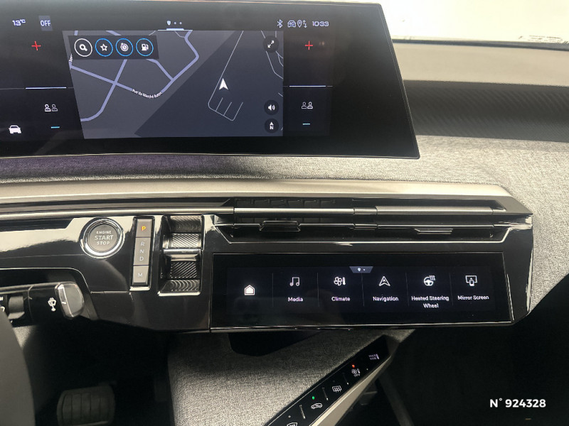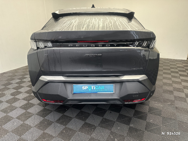 Rétroviseurs extérieurs dégivrants avec réglage et rabattement électriques,éclairage de seuil / Pack Safety Plus Régulateur / Limiteur de vitesse, Freinage d'urgence automatique avec alerte risque de collision, Alerte active de franchissement involontaire de ligne et bas côté, Reconnaissance étendue des panneaux de signalisation et préconisation de vitesse, Alerte attention conducteur / Boîte de vitesse automatique, séquentielle (6 rapports) / Habitacle et ciel de pavillon noir / Sièges AV à réglage en hauteur manuel / Projecteurs "Peugeot Led Technology" / 4 poignées de maintien rétractables (2 à l'AV et 2 à l'AR) / Pare-brise feuilleté acoustique / Plancher de coffre modulable 2 positions / Visiopark 1 Caméra de recul & aide au stationnement AR, graphique et sonore / Monogrammes AV: 'blason PEUGEOT' et '3008' / Rétroviseur intérieur électrochrome / Eléments de style éxterieur Bandeau entre les projecteurs Noir laqué avec logo '3008'. Calandre couleur caisse, écopes latérales Noir laqué, décor inférieur Gris Meteor, jupe inférieure Noir grainé. Vitres AR, vitres de custode et lunette AR surteintées. Lécheurs de vitres masqués. Enjoliveurs de passages de roues et protections inférieures de portes Noir grainé. Bandeau entre les feux AR Noir laqué avec lettrage 'PEUGEOT'. Pare chocs AR avec décor Gris Meteor et jupe inférieure Noir grainé, Monogrammes AV et AR / Pack Safety Plus Régulateur / Limiteur de vitesse, Freinage d'urgence automatique avec alerte risque de collision et protection des usagers de la route vulnérables (piétons, cyclistes,... ) Alerte active de franchissement involontaire de ligne et bas côté, Reconnaissance étendue des panneaux de signalisation et préconisation de vitesse, Alerte attention conducteur / Eléments de style intérieure Planche de bord moussée avec décor tissu RIMINI chiné et alcôve Graphène, faà§ade et aérateurs Noir laqué avec décor Gris Stène, Panneaux de portes avec décor tissu RIMINI chiné, alcôve Graphène et jonc Gris Stène, accoudoirs TEP Isabella, surpiqûres Quartz à l'AV, Console centrale avec décor tissu RIMINI chiné, faà§ade Noir laqué et jonc Gris Stène, accoudoir tissu RIMINI chiné / Monogrammes AR '3008' et 'Hybrid / Banquette AR avec dossier rabattable 40/20/40 / PEUGEOT i-Connect Radio DAB, Bluetooth® (connexion 2 téléphones), Mirror Screen sans fil (Apple CarPlay / Android Auto), Peugeot Connect SOS & Assistance, 1 prise USB C (Data & charge) / Vitres AR, custodes et lunette AR teintées / PEUGEOT i-Connect - Connect One: Fonctionnalités principales à bord (Mises à jour Over The Air, Géolocalisation), Services de sécurité (Appel d'urgence, Peugeot Assistance), Services d'entretien (Télémaintenance, guide d'utilisation digital), (Abonnement 10 ans inclus) / Lève-vitres AV et AR électriques séquentiels avec antipincement / Eclairage intérieur Plafonnier AV et liseuses AR à LED, Boite à gants et rangement de console éclairés à LED, Eclairage des caves à pieds AV à LED / PEUGEOT i-Cockpit panoramique avec Double écran HD flottant (2 x 10'') / PEUGEOT i-Connect - Connect Plus: Services de sécurité: alarme connectée, Services à distance (E-Remote Control, Remote Control, Find My Car, My Trip Report, Peugeot Skill for Alexa), (Abonnement 6 mois inclus, renouvellement 8 / mois) / PEUGEOT i-Connect - Connect One: Fonctionnalités principales à bord (Mises à jour Over The Air, Géolocalisation), Services de sécurité (Appel d'urgence, Peugeot Assistance), Services d'entretien (Télémaintenance, guide d'utilisation digital), e-ROUTES par Free2move charge Services à distance (E Remote Control) (Abonnement 10 ans inclus) / Essuie-vitre AV à déclenchement automatique / 3 prises 12 V (Console centrale, rang 2, coffre) / Volant compact croute de cuir avec commandes intégrées Noir laqué, décors Gris Stène / Accès et démarrage mains libres Proximity 2 Télécommandes 3 boutons (verrouillage, coffre, déverrouillage) / Détection de sous-gonflage indirecte / 6 haut-parleurs (2 tweeters et 2 woofers à l'AV et 2 larges bandes à l'AR) / Sellerie tissu CRISPY embossé, accompagnement TEP Isabella, écharpe tissu RIMINI chiné, surpiqûres Quartz / PEUGEOT i-Connect - Connect Plus: Services de sécurité: alarme connectée (Si véhicule équipé de l'alarme), Services à distance (E-Remote Control, Remote Control, Find My Car, My Trip Report, Peugeot Skill for Alexa), e-ROUTES par Free2move charge, (Abonnement 6 mois inclus, renouvellement 8 / mois) / 6 airbags: frontaux conducteur et passager auto-adaptatifs (passager neutralisable par clé), latéraux conducteur et passager AV (thorax et bassin), rideaux aux places AV et AR (tête et thorax) / Jantes alliage 19" diamantées BREDA Noir Orbital, vernis brillant / Frein de stationnement électrique