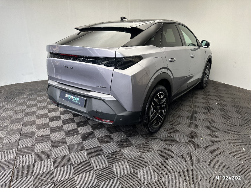 Siège conducteur à réglage lombaire manuel / Rétroviseurs extérieurs dégivrants avec réglage et rabattement électriques,éclairage de seuil / Pack Safety Plus Régulateur / Limiteur de vitesse, Freinage d'urgence automatique avec alerte risque de collision, Alerte active de franchissement involontaire de ligne et bas côté, Reconnaissance étendue des panneaux de signalisation et préconisation de vitesse, Alerte attention conducteur / Monogrammes AV: 'blason PEUGEOT' et '3008' / Visiopark 1 Caméra de recul & aide au stationnement AV et AR, graphique et sonore / PEUGEOT i-Connect Advanced - Connect Plus: Reconnaissance vocale connectée en langage naturel, ChatGPT (Disponibilité ultérieurement) Services de sécurité: alarme connectée (Si véhicule équipé de l'alarme,) Services à distance (E Remote Control, Remote Control, Find My Car, My Trip Report, Peugeot Skill for Alexa), Fonctions de Navigation (Trafic en temps réel, prévisions météorologiques,parking, recherche TomTom, limitations de vitesse, prix du carburant, mise à jour cartographie Over The Air, Send to Nav, Geofenci / Habitacle et ciel de pavillon noir / Volant chauffant / Sièges AV à réglage en hauteur manuel / Pédalier et repose pied aluminium / Banquette AR avec dossier rabattable 40/20/40 / Lève-vitres AV et AR électriques séquentiels avec antipincement / Eléments de style éxterieur Bandeau entre les projecteurs Noir laqué avec logo '3008'. Calandre couleur caisse, écopes latérales Noir laqué, décor inférieur Gris Meteor, jupe inférieure Noir grainé. Vitres AR, vitres de custode et lunette AR surteintées. Lécheurs de vitres masqués. Enjoliveurs de passages de roues et protections inférieures de portes Noir grainé. Bandeau entre les feux AR Noir laqué avec lettrage 'PEUGEOT'. Pare chocs AR avec décor Gris Meteor et jupe inférieure Noir grainé, Monogrammes AV et AR / Monogrammes AR '3008' et 'Hybrid / Hayon motorisé avec accès mains libres / 4 poignées de maintien rétractables (2 à l'AV et 2 à l'AR) / Plancher de coffre modulable 2 positions / Pare-brise feuilleté acoustique / Accès et démarrage mains libres Proximity 2 Télécommandes 3 boutons (verrouillage, coffre, déverrouillage) / 2 prises 12 V (Console centrale, coffre) / Essuie-vitre AV à déclenchement automatique / Recharge smartphone sans fil (puissance 15W) / Vitres AR, custodes et lunette AR teintées / Frein de stationnement électrique / Eclairage d'ambiance indirect, jour & nuit sur la planche de bord, les panneaux de portes AV et sous l'écran panoramique 21'', associé aux modes de conduite, personnalisable en 8 couleurs / PEUGEOT i-Connect Advanced Navigation 3D connectée, 4 prises USB: 1 prise USB C (Data & charge) et 1 prise USB C (Charge) à l'AV, 2 prises USB C (Charge) à l'AR / Toit et becquet AR Black Diamond / Eléments de style intérieure Planche de bord moussée avec décor tissu RIMINI chiné, décor d'alcôve en Aluminium sérigraphié, faà§ade et aérateurs Noir laqué avec décor Cast Iron, Panneaux de portes avec décor tissu RIMINI chiné, décor d'alcôve en Aluminium sérigraphié et jonc Cast Iron, accoudoirs TEP Isabella, surpiqûres Iced Clay à l' AV, Console centrale avec décor tissu RIMINI chiné, faà§ade Noir laqué et jonc Cast Iron, accoudoir tissu RIMINI chiné / Monogrammes ailes AV: 'blason PEUGEOT' / Eclairage intérieur Miroirs de courtoisie conducteur et passager occultables éclairés à LED, Plafonnier AV et lisseuses AR i-DOME tactiles à LED / Projecteurs PEUGEOT PIXEL LED Eclairage adaptatif, commutation automatique des feux de route, feux de route avec fonctions anti éblouissement et boost / Jantes alliage 19" diamantées BREDA Noir Orbital, vernis brillant / 6 airbags: frontaux conducteur et passager auto-adaptatifs (passager neutralisable par clé), latéraux conducteur et passager AV (thorax et bassin), rideaux aux places AV et AR (tête et thorax) / Drive Assist - Régulateur de vitesse adaptatif avec fonction Stop & Go / PEUGEOT i-Cockpit panoramique avec écran incurvé et flottant 21'' HD / PEUGEOT i-Toggles virtuels avec 10 raccourcis personnalisables / Commutation adaptative des projecteurs / Détection de sous-gonflage indirecte / Seuil de portes AV inox avec lettrage 'PEUGEOT' / Surtapis AV et AR avec surpiqûres Iced Clay et logo 'GT' / Volant compact, cuir fleur lisse et perforé avec commandes intégrées Noir Laqué, décors Cast Iron, surpiqûres Iced Clay, insert Noir laqué avec badge 'GT' / 6 haut-parleurs (2 tweeters et 2 woofers à l'AV et 2 larges bandes à l'AR) / Sellerie tissu NEW UZIRIS embossé, accompagnement TEP Isabella, écharpe tissu RIMINI chiné, surpiqûres Iced Clay