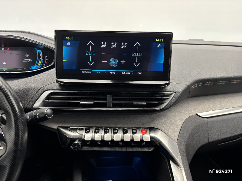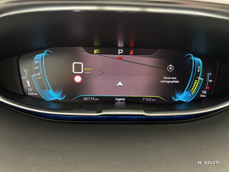 Peugeot i-Cockpit avec combiné tête haute numérique reconfigurable, écran tactile capacitif 10" et volant compact multi-fonctions / Sellerie TEP & "Alcantara" Gris Gréval / Toit "Black Diamond" (toit Noir Perla Nera) / Inserts d'ailes AV chromés / Ceintures de sécurité 3 points à enrouleur (x3) au 2ème rang, avec prétensionneurs et limiteurs d'effort aux places latérales / Surtapis AV et AR / Trappe de recharge électrique sur l'aile AR gauche, avec indicateur lumineux d'état de recharge / Sélecteur de modes (Electric, Hybrid, Sport) / Kit de dépannage de pneumatique : compresseur 12 volts, flacon de produit de colmatage, anneau de remorquage, deux cales de roue, manivelle de frein de stationnement électrique / Airbags frontaux conducteur et passager adaptatifs (passager neutralisable par clé), airbags latéraux conducteur et passager AV, airbags rideaux de tête aux places AV et AR / Frein de stationnement électrique avec aide au démarrage en pente / Avertisseur de temps de conduite / Pack Safety Plus / Pédalier et repose-pied conducteur aluminium / Banquette rabattable 1/3 - 2/3 (commandes dans le coffre) avec accoudoir et trappe à skis / Plancher de coffre fixe avec articulation pour accès au coffre de rangement du câble de recharge / Badge "HYBRID" sur ailes AV et volet de coffre / Sabots de pare-chocs AV gris métallisé / Lunette AR chauffante avec antennes sérigraphiées / Pack Drive Assist Plus / Essuie-vitre AR avec enclenchement automatique en marche AR / Air conditionné automatique bi-zone avec aérateurs aux places AR / Commandes intérieures de portes chromées / Volant cuir fleur perforé avec bagues chromées et badge GT / Détection de sous-gonflage indirecte / Enjoliveur en inox sur les protecteurs de bas de portes / Jonc de vitres en inox / Lève-vitres AV et AR électriques séquentiels avec antipincement / Habitacle et ciel de pavillon Noir Mistral / Passages de roues rapportés noirs / Prises USB de charge (x2) au 2 rang / Drive Mode : Choix de 2 modes de conduite (Eco ou Sport) / Peugeot Connect: Ecran tactile capacitif 10'' HD,navigation 3D connectée avec reconnaissance vocale aux services de Navigation connectée TomTom, SOS & Assistance, Teleservices / Bandeau de pare-chocs AR chromé / Seuils de portes AV en Inox / Pré-chauffage / climatisation du véhicule à distance / Reconnaissance étendue des panneaux (Stop, Sens interdit) et préconisation des panneaux de vitesse / Prise USB (dans la zone connectique) / Prise 12V (x3 : zone connectique, AR de console et coffre) / Sécurité enfants électrique des vitres AR / Ceintures de sécurité AV 3 points à enrouleur, réglables en hauteur avec prétensionneurs et limiteurs d'effort / Canules d'echappement de style chromées / Chargeur embarqué 3,7kW : câble de recharge T2 avec prise murale / Plafonniers AV et AR avec spot de lecture / Rétroviseur intérieur photosensible frameless (sans cadre) avec témoin lumineux d'information roulage mode ELECTRIC / Contrôle de la charge de la batterie à distance / Essuie-vitre AV avec système de lavage "Magic Wash" / Enjoliveur d'arc de pavillon en inox / Eclairage intérieur LED: plafonnier tactile 3 spots + 2 LEDs d'ambiance, 2 liseuses AR, pare-soleil, boîte à gants, accoudoir central, zone connectique, caves à pied, zone coffre (x2) / Pack City 2 / Hayon mains libres / Mirror Screen (compatible Mirrorlink, Apple CarPlay, Android Auto) / "Toggle Switches" chromés (touches "piano" d'activation des fonctions de l'écran tactile) / Accès et démarrage mains libres / Garnissage TEP & "Alcantara" Gris Gréval / Pack Visibilité / Jantes alliage 19" 'San Francisco' bi-ton diamantées Noir Onyx mat / Décors de planche de bord et panneaux de portes Alcantara Gris Greval / Ecrous de roues antivol / Projecteurs "Peugeot Full LED Technology" avec correction automatique de site, fonction Eclairage Virage Statique,"Foggy Mode" et feux diurnes à LED prolongés dans les projecteurs / Calandre GT avec design évolutif chromé / Commandes de lève-vitres avec inserts chromés / Barres de toit longitudinales profilée en Aluminium / Vitres latérales AR et lunette AR surteintées / Pack City 1 / Siège passager AV mécanique avec mise en tablette / Direction assistée électrique, colonne de direction réglable en hauteur et profondeur (mécanique) / Commande de verrouillage à distance (2 plips) / AVAS (système d'alerte sonore du véhicule émis à faible allure en roulage électrique, audible depuis l'extérieur pour la sécurité des piétons) / Système d'antiblocage des roues ABS avec répartiteur électronique de freinage REF et assistance au freinage d'urgence AFU / Coques de rétroviseurs extérieurs Noir Perla Nera / Aide graphique et sonore au stationnement AR / Poches/filets aumonières au dos des sièges AV / Décors intérieurs (baguettes de planche de bord et panneaux de portes, enjoliveur de console) chromés / Système HI-FI Premium FOCAL - La signature acoustique franà§aise 10 haut-parleurs, Woofers / médiums haute-fidélité : Technologie Polyglass, Tweeters TNF : Technologie de dômes inversés en aluminium, Subwoofer : Technologie triple bobine Power Flower 200 mm, Amplification active 12 voies 515 Watts : Technologie hybride Classe AB / Classe D / Driver Sport Pack / Vitres AV feuilletées acoustiques / Teinte métallisée Bleu Celebes / Boîte à gants floquée et éclairée / Radio avec fonction DAB,bi-tuner compatible MP3 et connectivité Bluetooth (audio streaming, kit mains libres), avec commandes au volant, 6 HP, écran tactile capacitif 10" HD / Pack Eclairage d'ambiance / Contrôle dynamique de stabilité CDS avec antipatinage électronique ASR / Indicateur de rapport conseillé / Planche de bord surpiquée / Appuis-tête à sécurité optimisée réglables en hauteur sur les sièges conducteur et passager AV ainsi que sur les places latérales AR