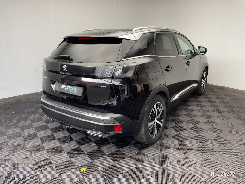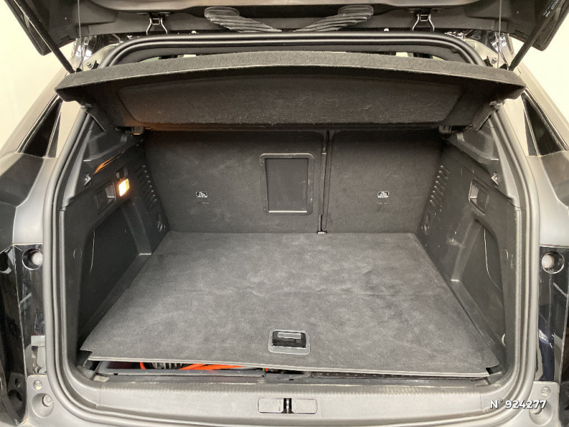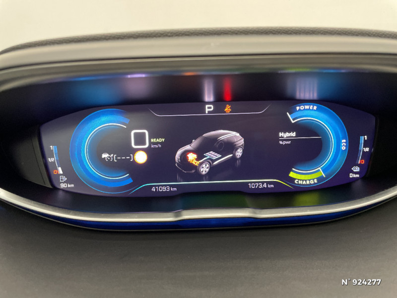 Décors intérieurs chromés / Commande de verrouillage à distance (2 plips) / AVAS (système d'alerte sonore du véhicule émis à faible allure en roulage électrique, audible depuis l'extérieur pour la sécurité des piétons) / Système d'antiblocage des roues ABS avec répartiteur électronique de freinage REF et assistance au freinage d'urgence AFU / Coques de rétroviseurs extérieurs Noir Perla Nera / Peugeot i-Cockpit avec combiné tête haute numérique haute qualité d'affichage, écran tactile capacitif 10" et volant compact multi-fonctions / Lunette et vitres latérales AR surteintée / Aide graphique et sonore au stationnement AR / Poches/filets aumonières au dos des sièges AV / Décors intérieurs (baguettes de planche de bord et panneaux de portes, enjoliveur de console) chromés / Vitres AV feuilletées acoustiques / PEUGEOT Connect SOS & Assistance et Teleservices / Boîte à gants floquée et éclairée / Câble de recharge T2 mode 2 (10 A / 2,3 kW) / Driver Sport Pack / Garnissage Tissu BELOMKA / TEP / Radio avec fonction DAB,bi-tuner compatible MP3 et connectivité Bluetooth (audio streaming, kit mains libres), avec commandes au volant, 6 HP, écran tactile capacitif 10" HD / Pack Eclairage d'ambiance / Accès et démarrage mains libres / Pédalier et repose-pied conducteur en aluminium / Pack Visibilité / Calandre GT avec design évolutif chromé / Jantes alliage 18" "Detroit" bi-ton diamantées Noir Onyx / Décors de planche de bord et panneaux de portes Alcantara Gris Greval / Projecteurs "Peugeot Full LED Technology" avec correction automatique de site, fonction Eclairage Virage Statique,"Foggy Mode" et feux diurnes à LED prolongés dans les projecteurs / Commandes de lève-vitres avec inserts chromés / Barres de toit longitudinales profilée en Aluminium / "Toggle Switches" chromés (touches 'piano' d'activation des fonctions de l'écran tactile) / Pack City 1 / Reconnaissance étendue des panneaux / Direction assistée électrique, colonne de direction réglable en hauteur et profondeur (mécanique) / Mirror Screen (compatible Mirrorlink, Apple CarPlay, Android Auto) / "Toggle Switches" chromés (touches "piano" d'activation des fonctions de l'écran tactile) / Fonction "Mirror Screen" (Apple CarPlay / Android Auto ) / Airbags frontaux conducteur et passager adaptatifs (passager neutralisable par clé), airbags latéraux conducteur et passager AV, airbags rideaux de tête aux places AV et AR / Frein de stationnement électrique avec aide au démarrage en pente / Avertisseur de temps de conduite / Pack Safety Plus / Siège passager AV avec mise en tablette / Pédalier et repose-pied conducteur aluminium / Passages de roues rapportés noirs / Drive Mode : Choix de 2 modes de conduite (Eco ou Sport) / Peugeot Connect: Ecran tactile capacitif 10'' HD,navigation 3D connectée avec reconnaissance vocale aux services de Navigation connectée TomTom, SOS & Assistance, Teleservices / Prises USB de charge (x2) au 2 rang / Sécurité enfants électrique des vitres AR / Seuils de portes AV en Inox / Pré-chauffage / climatisation du véhicule à distance / Reconnaissance étendue des panneaux (Stop, Sens interdit) et préconisation des panneaux de vitesse / Prise USB (dans la zone connectique) / Prise 12V (x3 : zone connectique, AR de console et coffre) / Siège conducteur mécanique avec réglage lombaire / Navigation 3D connectée avec écran tactile capacitif 10" HD Avec reconnaissance vocale, cartographie Europe, services de Navigation connectée TomTom 3 ans inclus, connexion automatique et permanente via carte SIM intégrée au véhicule / Vitres latérales AR et lunette AR surteintées / Ceintures de sécurité AV 3 points à enrouleur, réglables en hauteur avec prétensionneurs et limiteurs d'effort / Canules d'echappement de style chromées / Chargeur embarqué 3,7kW : câble de recharge T2 avec prise murale / Plafonniers AV et AR avec spot de lecture / Contrôle de la charge de la batterie à distance / Enjoliveur d'arc de pavillon en inox / Sièges AV mécaniques réglages en hauteur / Bandeau de pare-chocs AR chromé / Garnissage Mi-TEP/Tissu "Belomka" avec surpiqûres Aikinite / Eclairage intérieur LED : plafonnier et rangement / Inserts d'ailes AV chromés / Toit "Black Diamond" (toit Noir Perla Nera) / Kit de dépannage de pneumatique : compresseur 12 volts, flacon de produit de colmatage, anneau de remorquage, deux cales de roue, manivelle de frein de stationnement électrique / Ceintures de sécurité 3 points à enrouleur (x3) au 2ème rang, avec prétensionneurs et limiteurs d'effort aux places latérales / Surtapis AV et AR / Trappe de recharge électrique sur l'aile AR gauche, avec indicateur lumineux d'état de recharge / Sélecteur de modes (Electric, Hybrid, Sport) / Pack Drive Assist Plus / Indicateur de rapport conseillé / Accoudoir central AV à ouverture papillon, avec compartiment de rangement éclairé et réfrigérable / Contrôle dynamique de stabilité CDS avec antipatinage électronique ASR / Planche de bord surpiquée / Appuis-tête à sécurité optimisée réglables en hauteur sur les sièges conducteur et passager AV ainsi que sur les places latérales AR / Banquette rabattable 1/3 - 2/3 (commandes dans le coffre) avec accoudoir et trappe à skis / Plancher de coffre fixe avec articulation pour accès au coffre de rangement du câble de recharge / Rétroviseur intérieur photosensible sans cadre, avec témoin lumineux de roulage en mode Electric / Badge "HYBRID" sur ailes AV et volet de coffre / Sabots de pare-chocs AV gris métallisé / Lunette AR chauffante avec antennes sérigraphiées / Essuie-vitre AR avec enclenchement automatique en marche AR / Air conditionné automatique bi-zone avec aérateurs aux places AR / Chargeur embarqué 3,7 kW / Lève-vitres AV et AR électriques séquentiels avec antipincement / Joncs de vitres latérales en inox / Peugeot i-Cockpit avec combiné tête haute numérique haute qualité d'affi