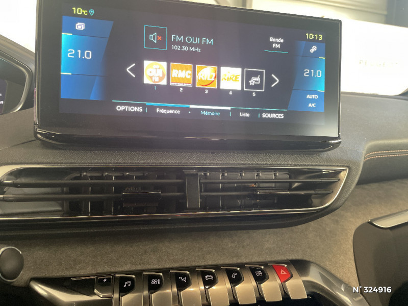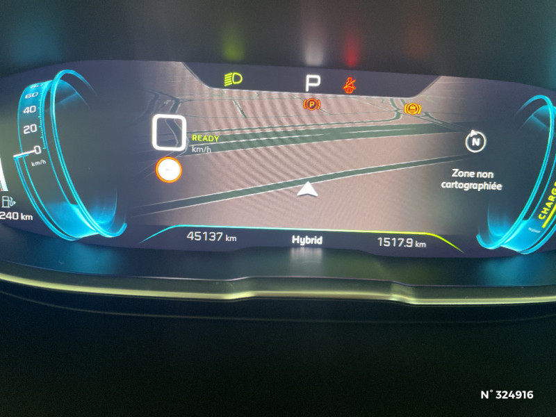 Siège conducteur à réglage lombaire manuel / Sabots de pare-chocs AV gris métallisé / Essuie-vitre AV avec système de lavage "Magic Wash" / Prise 12 V (x3 : zone connectique, AR de console et coffre) / Chargeur embarqué 3,7kW : câble de recharge T2 avec prise murale / Contrôle de la charge de la batterie à distance / Plancher de coffre fixe avec articulation pour accès au coffre de rangement du câble de recharge / Badge "HYBRID" sur ailes AV et volet de coffre / Teinte métallisée Bleu Celebes / Eclairage intérieur LED : plafonnier et rangement / Pack Drive Assist Plus / Pack Visibilité / Radio avec fonction DAB,bi-tuner compatible MP3 et connectivité Bluetooth (audio streaming, kit mains libres), avec commandes au volant, 6 HP, écran tactile capacitif 10" HD / Vitres latérales AR et lunette AR surteintées / Pack Safety Plus / Indicateur de rapport conseillé / Reconnaissance étendue des panneaux (Stop, Sens interdit) et préconisation des panneaux de vitesse / Ceintures de sécurité AV 3 points à enrouleur, réglables en hauteur avec prétensionneurs et limiteurs d'effort / Sécurité enfants électrique des vitres AR / Essuie-vitre AR avec enclenchement automatique en marche AR / Lunette AR chauffante avec antennes sérigraphiées / Poches/filets aumonières au dos des sièges AV / Siège passager AV mécanique avec mise en tablette / Mirror Screen (compatible Mirrorlink, Apple CarPlay, Android Auto) / Direction assistée électrique, colonne de direction réglable en hauteur et profondeur (mécanique) / Rétroviseur intérieur photosensible frameless (sans cadre) avec témoin lumineux d'information roulage mode ELECTRIC / Peugeot Connect: Ecran tactile capacitif 10'' HD,navigation 3D connectée avec reconnaissance vocale aux services de Navigation connectée TomTom, SOS & Assistance, Teleservices / Seuils de portes AV en Inox / Appuis-tête à sécurité optimisée réglables en hauteur sur les sièges conducteur et passager AV ainsi que sur les places latérales AR / Boîte à gants floquée et éclairée / Commande de verrouillage à distance (2 plips) / Ceintures de sécurité 3 points à enrouleur (x3) au 2ème rang, avec prétensionneurs et limiteurs d'effort aux places latérales / Barres de toit longitudinales profilée en Aluminium / "Toggle Switches" chromés (touches "piano" d'activation des fonctions de l'écran tactile) / Sièges AV mécaniques à réglage manuel en hauteur / Pré-chauffage / climatisation du véhicule à distance / Pack Drive Assist Plus / Toggle Switches chromés (touches piano d'activation des fonctions de l'écran tactile) / Garnissage Mi-TEP/Tissu "Belomka" avec surpiqûres Aikinite / Coques de rétroviseurs extérieurs Noir Perla Nera / Eclairage intérieur LED: plafonnier tactile 3 spots + 2 LEDs d'ambiance, 2 liseuses AR, pare-soleil, boîte à gants, accoudoir central, zone connectique, caves à pied, zone coffre (x2) / AVAS (système d'alerte sonore du véhicule émis à faible allure en roulage électrique, audible depuis l'extérieur pour la sécurité des piétons) / Toit "Black Diamond" (toit Noir Perla Nera) / Sélecteur de modes de conduite (Electric, Hybrid, Sport) / Drive Mode : Choix de 2 modes de conduite (Eco ou Sport) / Navigation 3D connectée avec écran tactile capacitif 10" HD Avec reconnaissance vocale, cartographie Europe, services de Navigation connectée TomTom 3 ans inclus, connexion automatique et permanente via carte SIM intégrée au véhicule / PEUGEOT Connect SOS & Assistance et Teleservices / Sièges AV mécaniques réglages en hauteur / Prise USB (dans la zone connectique) / Kit de dépannage de pneumatique : compresseur 12 volts, flacon de produit de colmatage, anneau de remorquage, deux cales de roue, manivelle de frein de stationnement électrique / Peugeot i-Cockpit avec combiné tête haute numérique haute qualité d'affichage, écran tactile capacitif 10" HD et volant compact multi-fonctions / Aide graphique et sonore au stationnement AR / Air conditionné automatique bi-zone avec aérateurs aux places AR / Peugeot i-Cockpit avec combiné tête haute numérique reconfigurable, écran tactile capacitif 10" et volant compact multi-fonctions / Jantes alliage 18" "Detroit" bi-ton diamantées Noir Onyx / Prises USB de charge (x2) au 2ème rang / Sabot de pare-chocs AV gris métallisé / Joncs de vitres latérales en inox / Garnissage Tissu BELOMKA / TEP / Pack Drive Assist Plus / Jonc de vitres en inox / Accoudoir central AV à ouverture papillon, avec compartiment de rangement éclairé et réfrigérable / Commandes de lève-vitres avec inserts chromés / Plafonniers AV et AR avec spot de lecture / Frein de stationnement électrique avec aide au démarrage en pente / Détection de sous-gonflage indirecte / Avertisseur de temps de conduite / Inserts d'ailes AV chromés / Contrôle dynamique de stabilité CDS avec antipatinage électronique ASR / Passages de roues rapportés noirs / Système d'antiblocage des roues ABS avec répartiteur électronique de freinage REF et assistance au freinage d'urgence AFU / Pack City 1 / Volant cuir fleur perforé avec bagues chromées et badge GT / Banquette rabattable 1/3 - 2/3 (commandes dans le coffre) avec accoudoir et trappe à skis / Sellerie TEP & "Alcantara" Gris Gréval / Siège passager AV avec mise en tablette / Peugeot i-Cockpit avec combiné tête haute numérique haute qualité d'affichage, écran tactile capacitif 10" et volant compact multi-fonctions / Rétroviseur intérieur photosensible sans cadre, avec témoin lumineux de roulage en mode Electric / Bandeau de pare-chocs AR chromé / Commandes intérieures de portes chromées / Surtapis AV/AR / Enjoliveur en inox sur les protecteurs de bas de portes / Pack Eclairage d'ambiance / Airbags frontaux conducteur et passager adaptatifs (passager neutralisable par clé), airbags latéraux conducteur et passager AV.airbags rideaux de tête aux places AV/AR / Trappe de recharge électrique sur l'aile AR