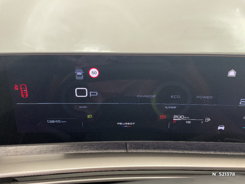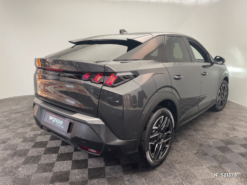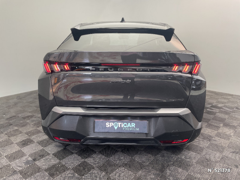 Monogrammes AR '3008' et 'Hybrid / Monogrammes AV: 'blason PEUGEOT' et '3008' / Sellerie tissu CRISPY embossé, accompagnement TEP Isabella, écharpe tissu RIMINI chiné, surpiqûres Quartz / Détection de sous-gonflage indirecte / Jantes alliage 19" diamantées BREDA Noir Orbital, vernis brillant / Eclairage intérieur Plafonnier AV et liseuses AR à LED, Boite à gants et rangement de console éclairés à LED, Eclairage des caves à pieds AV à LED / Eléments de style intérieure Planche de bord moussée avec décor tissu RIMINI chiné et alcôve Graphène, faà§ade et aérateurs Noir laqué avec décor Gris Stène, Panneaux de portes avec décor tissu RIMINI chiné, alcôve Graphène et jonc Gris Stène, accoudoirs TEP Isabella, surpiqûres Quartz à l'AV, Console centrale avec décor tissu RIMINI chiné, faà§ade Noir laqué et jonc Gris Stène, accoudoir tissu RIMINI chiné / Frein de stationnement électrique / Volant compact croute de cuir avec commandes intégrées Noir laqué, décors Gris Stène / Accès et démarrage mains libres Proximity 2 Télécommandes 3 boutons (verrouillage, coffre, déverrouillage) / 6 haut-parleurs (2 tweeters et 2 woofers à l'AV et 2 larges bandes à l'AR) / PEUGEOT i-Connect - Connect Plus: Services de sécurité: alarme connectée (Si véhicule équipé de l'alarme), Services à distance (E-Remote Control, Remote Control, Find My Car, My Trip Report, Peugeot Skill for Alexa), e-ROUTES par Free2move charge, (Abonnement 6 mois inclus, renouvellement 8 / mois) / 3 prises 12 V (Console centrale, rang 2, coffre) / Lève-vitres AV et AR électriques séquentiels avec antipincement / Plancher de coffre modulable 2 positions / Eléments de style éxterieur Bandeau entre les projecteurs Noir laqué avec logo '3008'. Calandre couleur caisse, écopes latérales Noir laqué, décor inférieur Gris Meteor, jupe inférieure Noir grainé. Vitres AR, vitres de custode et lunette AR surteintées. Lécheurs de vitres masqués. Enjoliveurs de passages de roues et protections inférieures de portes Noir grainé. Bandeau entre les feux AR Noir laqué avec lettrage 'PEUGEOT'. Pare chocs AR avec décor Gris Meteor et jupe inférieure Noir grainé, Monogrammes AV et AR / PEUGEOT i-Cockpit panoramique avec Double écran HD flottant (2 x 10'') / Vitres AR, custodes et lunette AR teintées / Banquette AR avec dossier rabattable 40/20/40 / Rétroviseur intérieur électrochrome / PEUGEOT i-Connect Radio DAB, Bluetooth® (connexion 2 téléphones), Mirror Screen sans fil (Apple CarPlay / Android Auto), Peugeot Connect SOS & Assistance, 1 prise USB C (Data & charge) / Projecteurs "Peugeot Led Technology" / Sièges AV à réglage en hauteur manuel / Habitacle et ciel de pavillon noir / Essuie-vitre AV à déclenchement automatique / Boîte de vitesse automatique, séquentielle (6 rapports) / 4 poignées de maintien rétractables (2 à l'AV et 2 à l'AR) / PEUGEOT i-Connect - Connect One: Fonctionnalités principales à bord (Mises à jour Over The Air, Géolocalisation), Services de sécurité (Appel d'urgence, Peugeot Assistance), Services d'entretien (Télémaintenance, guide d'utilisation digital), (Abonnement 10 ans inclus) / Rétroviseurs extérieurs dégivrants avec réglage et rabattement électriques,éclairage de seuil / Pack Safety Plus Régulateur / Limiteur de vitesse, Freinage d'urgence automatique avec alerte risque de collision, Alerte active de franchissement involontaire de ligne et bas côté, Reconnaissance étendue des panneaux de signalisation et préconisation de vitesse, Alerte attention conducteur / Pack Safety Plus Régulateur / Limiteur de vitesse, Freinage d'urgence automatique avec alerte risque de collision et protection des usagers de la route vulnérables (piétons, cyclistes,... ) Alerte active de franchissement involontaire de ligne et bas côté, Reconnaissance étendue des panneaux de signalisation et préconisation de vitesse, Alerte attention conducteur / Pare-brise feuilleté acoustique / Visiopark 1 Caméra de recul & aide au stationnement AR, graphique et sonore / 6 airbags: frontaux conducteur et passager auto-adaptatifs (passager neutralisable par clé), latéraux conducteur et passager AV (thorax et bassin), rideaux aux places AV et AR (tête et thorax)
