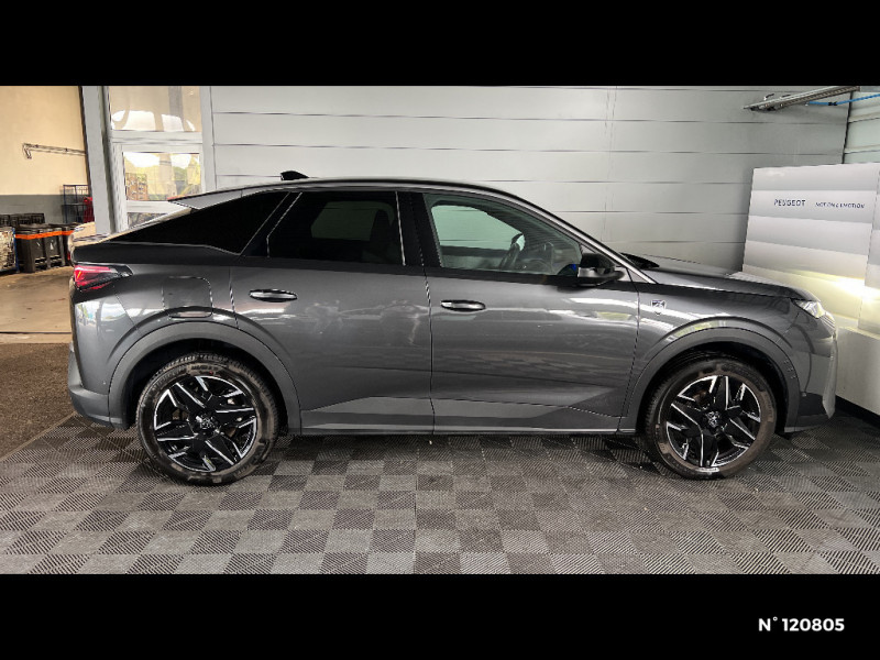 Recharge smartphone sans fil (puissance 15W) / Plancher de coffre 2 positions / 6 haut-parleurs (2 tweeters et 2 woofers à l'AV et 2 larges bandes à l'AR) / Drive Assist - Régulateur de vitesse adaptatif avec fonction Stop & Go / Pédalier et repose pied aluminium / Surtapis AV et AR avec surpiqûres Iced Clay et logo 'GT' / Volant compact, cuir fleur lisse et perforé avec commandes intégrées Noir Laqué, décors Cast Iron, surpiqûres Iced Clay, insert Noir laqué avec badge 'GT' / Frein de stationnement électrique / PEUGEOT i-Cockpit panoramique avec écran incurvé et flottant 21'' HD / PEUGEOT i-Toggles virtuels avec 10 raccourcis personnalisables / PEUGEOT i-Connect Advanced Navigation 3D connectée, 4 prises USB: 1 prise USB C (Data & charge) et 1 prise USB C (Charge) à l'AV, 2 prises USB C (Charge) à l'AR / PEUGEOT i-Connect Advanced - Connect Plus: Reconnaissance vocale connectée en langage naturel, Services de sécurité: alarme connectée (Si véhicule équipé de l'alarme,) Services à distance (E Remote Control, Remote Control, Find My Car, My Trip Report, Peugeot Skill for Alexa), Fonctions de Navigation (Trafic en temps réel, prévisions météorologiques,parking, recherche TomTom, limitations de vitesse, prix du carburant, mise à our cartographie Over The Air, Send to Nav, Geofencing, / Sellerie Alcantara REFLECTION embossé, accompagnement TEP Isabella, écharpe tissu RIMINI chiné, surpiqûres Iced Clay / Jantes alliage 19" diamantées BREDA Noir Orbital, vernis brillant / Vitres AR, custodes et lunette AR teintées / Banquette AR avec dossier rabattable 40/20/40 / Projecteurs PEUGEOT PIXEL LED Eclairage adaptatif, commutation automatique des feux de route, feux de route avec fonctions anti éblouissement et boost / Eléments de style éxterieur Becquet AR Noir brillant / Monogrammes ailes AV: 'blason PEUGEOT' / Toit et becquet AR Black Diamond / Eléments de style intérieure Planche de bord moussée avec décor tissu RIMINI chiné, décor d'alcôve en Aluminium sérigraphié, faà§ade et aérateurs Noir laqué avec décor Cast Iron, Panneaux de portes avec décor tissu RIMINI chiné, décor d'alcôve en Aluminium sérigraphié et jonc Cast Iron, accoudoirs TEP Isabella, surpiqûres Iced Clay à l' AV, Console centrale avec décor tissu RIMINI chiné, faà§ade Noir laqué et jonc Cast Iron, accoudoir tissu RIMINI chiné / Eclairage d'ambiance indirect, jour & nuit sur la planche de bord, les panneaux de portes AV et sous l'écran panoramique 21'', associé aux modes de conduite, personnalisable en 8 couleurs / Seuil de portes AV inox avec lettrage 'PEUGEOT' / Commutation adaptative des projecteurs / Eclairage intérieur Miroirs de courtoisie conducteur et passager occultables éclairés à LED, Plafonnier AV et lisseuses AR i-DOME tactiles à LED / 4 poignées de maintien rétractables (2 à l'AV et 2 à l'AR) / Pare-brise feuilleté acoustique / Lève-vitres AV et AR électriques séquentiels avec antipincement / Plancher de coffre modulable 2 positions / Habitacle et ciel de pavillon noir / Essuie-vitre AV à déclenchement automatique / Volant chauffant / Sièges AV à réglage en hauteur manuel / Hayon motorisé avec accès mains libres / Prise 12V (x3 : zone connectique, AR de console et coffre) / Kit de dépannage de pneumatique Compresseur 12 volts, flacon de produit de colmatage, anneau de remorquage, deux cales de roue / Visiopark 1 Caméra de recul & aide au stationnement AV et AR, graphique et sonore / Monogrammes AV: 'blason PEUGEOT' et '3008' / Monogrammes AR '3008' et 'Hybrid / Accès et démarrage mains libres Proximity 2 Télécommandes 3 boutons (verrouillage, coffre, déverrouillage) / Détection de sous-gonflage indirecte / Siège conducteur à réglage lombaire manuel / 6 haut-parleurs (2 tweeters et 2 woofers à l'AV et 2 haut-parleurs à l'AR) / Eléments de style éxterieur Bandeau entre les projecteurs Noir laqué avec logo '3008'. Calandre couleur caisse, écopes latérales Noir laqué, décor inférieur Gris Meteor, jupe inférieure Noir grainé. Vitres AR, vitres de custode et lunette AR surteintées. Lécheurs de vitres masqués. Enjoliveurs de passages de roues et protections inférieures de portes Noir grainé. Bandeau entre les feux AR Noir laqué avec lettrage 'PEUGEOT'. Pare chocs AR avec décor Gris Meteor et jupe inférieure Noir grainé, Monogrammes AV et AR / PEUGEOT i-Connect Advanced - Connect Plus: Reconnaissance vocale connectée en langage naturel, ChatGPT (Disponibilité ultérieurement) Services de sécurité: alarme connectée (Si véhicule équipé de l'alarme,) Services à distance (E Remote Control, Remote Control, Find My Car, My Trip Report, Peugeot Skill for Alexa), Fonctions de Navigation (Trafic en temps réel, prévisions météorologiques,parking, recherche TomTom, limitations de vitesse, prix du carburant, mise à jour cartographie Over The Air, Send to Nav, Geofenci / 3 prises 12V 3 prises 12 V (Console centrale, AR de la console centrale, coffre) / Sellerie tissu NEW UZIRIS embossé, accompagnement TEP Isabella, écharpe tissu RIMINI chiné, surpiqûres Iced Clay / Rétroviseur intérieur électrochrome sans cadre / Rétroviseurs extérieurs dégivrants avec réglage et rabattement électriques,éclairage de seuil / 2 prises 12 V (Console centrale, coffre) / Sièges AV mécaniques à réglage en hauteur / Pack Safety Plus Régulateur / Limiteur de vitesse, Freinage d'urgence automatique avec alerte risque de collision, Alerte active de franchissement involontaire de ligne et bas côté, Reconnaissance étendue des panneaux de signalisation et préconisation de vitesse, Alerte attention conducteur / 6 airbags: frontaux conducteur et passager auto-adaptatifs (passager neutralisable par clé), latéraux conducteur et passager AV (thorax et bassin), rideaux aux places AV et AR (tête et thorax)