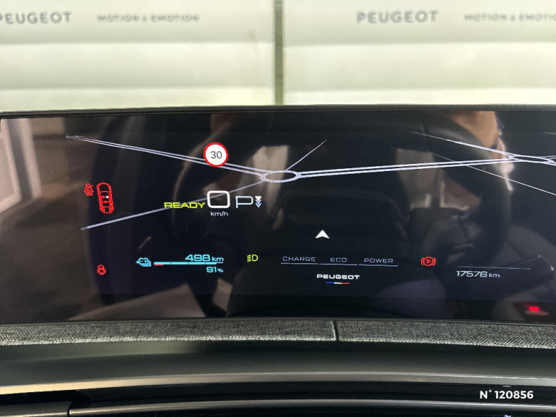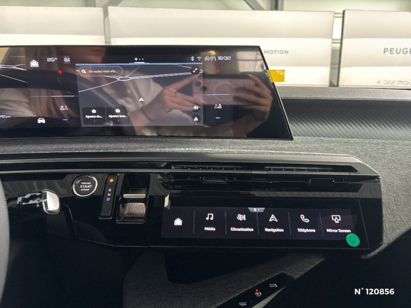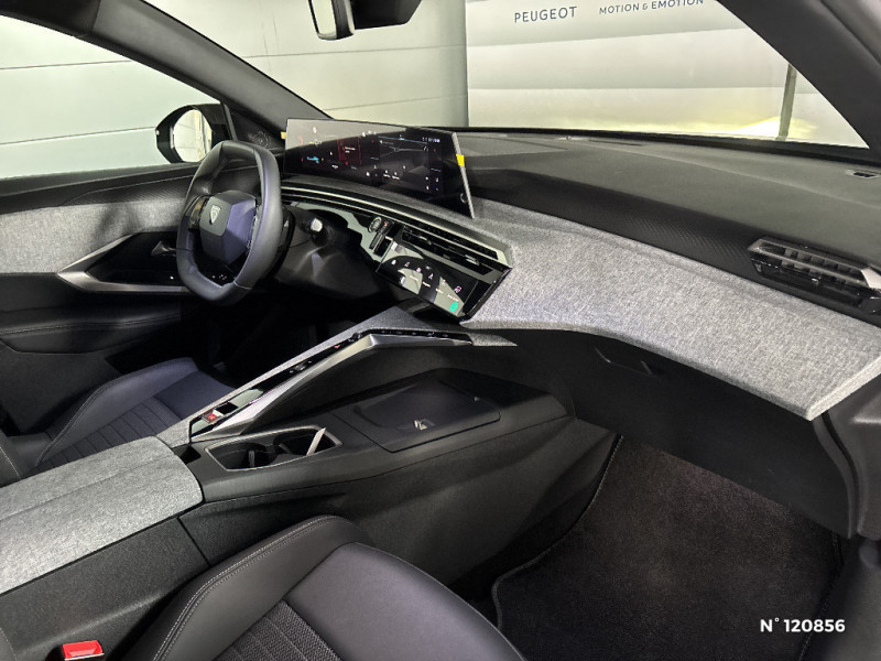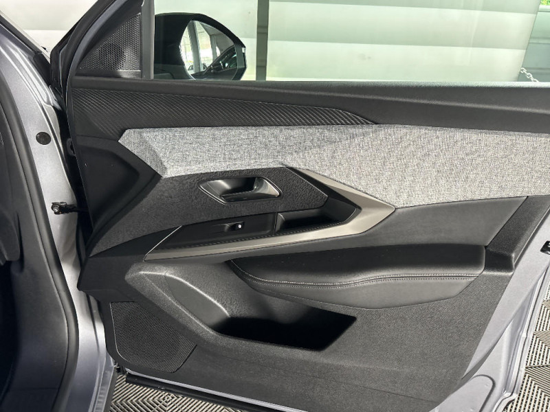 Frein de stationnement électrique / Sellerie tissus UZIRIS embossé et IRIZE embossé, accompagnement TEP Isabella, écharpe tissu RIMINI et surpiqûres Quartz / Jantes alliage 19'' diamantées LULEA Noir Orbital, vernis brillant / Vitres AR, custodes et lunette AR teintées / Banquette AR avec dossier rabattable 40/20/40 / PEUGEOT i-Connect Radio DAB, Bluetooth® (connexion 2 téléphones), Mirror Screen sans fil (Apple CarPlay / Android Auto), Peugeot Connect SOS & Assistance, 1 prise USB C (Data & charge) / PEUGEOT i-Connect - Connect One: Fonctionnalités principales à bord (Mises à jour Over The Air, Géolocalisation), Services de sécurité (Appel d'urgence, Peugeot Assistance), Services d'entretien (Télémaintenance, guide d'utilisation digital), Divertissement (Jeux), (Abonnement 10 ans inclus) / PEUGEOT i-Connect - Connect Plus: Services de sécurité: alarme connectée (Si véhicule équipé de l'alarme), Services à distance (E-Remote Control, Remote Control, Find My Car, My Trip Report, Peugeot Skill for Alexa), e-ROUTES par Free2move charge, (Abonnement 6 mois inclus, renouvellement 8 / mois) / Chargeur embarqué 11 kW triphasé / Monogrammes AR 'E3008' / Rétroviseur intérieur électrochrome / 4 poignées de maintien rétractables (2 à l'AV et 2 à l'AR) / 6 airbags: frontaux conducteur et passager auto-adaptatifs (passager neutralisable par clé), latéraux conducteur et passager AV (thorax et bassin), rideaux aux places AV et AR (tête et thorax) / Pack Safety Plus Régulateur / Limiteur de vitesse, Freinage d'urgence automatique avec alerte risque de collision, Alerte active de franchissement involontaire de ligne et bas côté, Reconnaissance étendue des panneaux de signalisation et préconisation de vitesse, Alerte attention conducteur / Plancher de coffre 2 positions / Lève-vitres AV et AR électriques séquentiels avec antipincement / Habitacle et ciel de pavillon noir / Essuie-vitre AV à déclenchement automatique / Câble électrique mode 3 triphasé 22 kW / Prise 12V (x3 : zone connectique, AR de console et coffre) / Kit de dépannage de pneumatique Compresseur 12 volts, flacon de produit de colmatage, anneau de remorquage, deux cales de roue / Visiopark 1 Caméra de recul & aide au stationnement AR, graphique et sonore / Eléments de style éxterieur Bandeau entre les projecteurs Noir laqué avec logo '3008' Calandre couleur caisse, écopes latérales Noir laqué, décor inférieur Gris Meteor, jupe inférieure Noir grainé Vitres AR, vitres de custode et lunette AR surteintées, Lécheurs de vitres masqués, Enjoliveurs de passages de roues et protections inférieures de portes Noir grainé, Bandeau entre les feux AR Noir laqué avec lettrage 'PEUGEOT,' Pare chocs AR avec décor Gris Meteor et jupe inférieure Noir grainé, Becquet AR couleur caisse / Monogrammes AV: 'blason PEUGEOT' et '3008' / Eléments de style intérieure Planche de bord moussée avec décor tissu RIMINI chiné et alcôve Graphène, faà§ade et aérateurs Noir laqué avec décor Gris Stène, Panneaux de portes avec décor tissu RIMINI chiné, alcôve Graphène et jonc Gris Stène, accoudoirs TEP Isabella, surpiqûres Quartz à l'AV, Console centrale avec décor tissu RIMINI chiné, faà§ade Noir laqué et jonc Gris Stène, accoudoir tissu RIMINI chiné / Volant compact croute de cuir avec commandes intégrées Noir laqué, décors Gris Stène / Accès et démarrage mains libres Proximity 2 Télécommandes 3 boutons (verrouillage, coffre, déverrouillage) / Eclairage intérieur Plafonnier AV et liseuses AR à LED, Boite à gants et rangement de console éclairés à LED, Eclairage des caves à pieds AV à LED / PEUGEOT i-Cockpit panoramique avec Double écran HD flottant (2 x 10'') / Projecteurs "Peugeot Full Led Technology" / Détection de sous-gonflage indirecte / 6 haut-parleurs (2 tweeters et 2 woofers à l'AV et 2 haut-parleurs à l'AR) / Rétroviseurs extérieurs dégivrants avec réglage et rabattement électriques,éclairage de seuil / Sièges AV mécaniques à réglage en hauteur