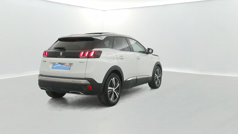 Aide sonore et graphique au stationnement AR: / Air conditionné automatique bi-zone avec aérateurs aux places AR: / Driver Sport Pack: / Eclairage intérieur LED: plafonnier tactile 3 spots + 2 LEDs d'ambiance, 2 liseuses AR, pare-soleil, boîte à gants, accoudoir central, zone connectique, caves à pied, zone coffre (x2): / Essuie-vitre AR avec enclenchement automatique en marche AR: / Frein de stationnement électrique avec aide au démarrage en pente: / Jantes alliage 18" "Detroit" bi-ton diamantées: / Pack City 1: / Pack Eclairage d'ambiance: / Pack Safety Plus: / Pack Visibilité: / Projecteurs "Peugeot Full Led Technology": / Pré-chauffage / climatisation du véhicule à distance: / Volant Cuir pleine fleur perforé avec bagues chromées et badge GT Line: / ABS, AFU, REF: / Accoudoir central AV à ouverture papillon, avec compartiment de rangement éclairé et réfrigérable: / Accès et démarrage mains libres: / Airbags frontaux conducteur et passager adaptatifs (passager neutralisable par clé), airbags latéraux conducteur et passager AV. airbags rideaux de tête aux places AV/AR: / Appuis-tête à sécurité optimisée réglables en hauteur sur les sièges conducteur et passager AV ainsi que sur les places latérales AR: / Avertisseur de temps de conduite: / Badge "HYBRID" sur ailes AV et volet de coffre: / Bandeau de pare-chocs AR chromé: / Banquette rabattable 1/3 - 2/3 (commandes dans le coffre) avec accoudoir et trappe à skis: / Boitiers de rétroviseurs extérieurs Noir Perla Nera: / Bouclier AV exclusif et calandre à damier chromé: / Boîte à gants floquée et éclairée: / Calandre avec jonc périphérique chrome brillant et satiné, damier chromé et lettrage Peugeot noir: / Canules d'echappement de style chromées: / Ceintures de sécurité AR 3 points à enrouleur (x3) avec prétensionneurs et limiteurs d'effort aux places latérales: / Ceintures de sécurité AV 3 points à enrouleur, réglables en hauteur avec prétensionneurs et limiteurs d'effort: / Chargeur embarqué 3,7kW : câble de recharge T2 avec prise murale: / Commande de verrouillage à distance (2 plips): / Console centrale AV avec 2 porte-gobelets: / Contrôle de la charge de la batterie à distance: / Contrôle dynamique de stabilité CDS avec antipatinage électronique ASR: / Direction assistée électrique, colonne de direction réglable en hauteur et profondeur (mécanique): / Décors de planche de bord et panneaux de portes en maille "Brumeo": / Décors intérieurs chromés: / Détection de sous-gonflage indirecte: / Ecran tactile capacitif 8" et "Toggles Switches": / Enjoliveur d'arc de pavillon en inox: / Enjoliveur en inox sur les protecteurs de bas de portes: / Essuie-vitre AV avec système de lavage "Magic Wash": / Fixations pour 3 sièges enfants suivant norme ISOFIX aux places passager AV et latérales AR: / Fonction "Mirror Screen": / Fonction DAB (Radio Numérique Terrestre): / Habitacle et ciel de pavillon Noir Mistral: / Indicateur de rapport conseillé: / Inserts d'ailes AV chromés: / Jonc de vitres en inox: / Kit de dépannage de pneumatique: / Lunette AR chauffante avec antennes sérigraphiées: / Lève-vitres AV/AR électriques et séquentiels avec antipincement: / Mise en tablette du siège passager: / Nouveau PEUGEOT i-Cockpit avec dalle numérique tête haute: / Passages de roues rapportés noirs: / Peugeot Connect: / Plafonnier AV avec spots de lecture (x2) et plafonnier AR à extinction temporisée: / Plancher de coffre fixe avec articulation pour accès au coffre de rangement du câble de recharge: / Poches/filets aumonières au dos des sièges AV: / Poignées de maintien (x4) rétractables avec frein (crochets pour cintres aux places AR): / Poignées de portes couleur carrosserie: / Prise 12 V (x3 : zone connectique, AR de console et coffre): / Prise USB (dans la zone connectique): / Radio 6 HP, bi-tuner compatible MP3 et connectivité Bluetooth (audio streaming, kit mains libres), avec commandes au volant, écran tactile capacitif 8": / Rétroviseur intérieur photosensible sans cadre, avec témoin lumineux de roulage en mode Electric: / Sabots de pare-chocs AV gris métallisé: / Seuils de portes AV en Inox: / Siège passager AV mécanique avec mise en tablette: / Siège passager AV mécanique réglable en hauteur: / Spots de lecture (2x) AR: / Surtapis AV/AR: / Sécurité enfants électrique des vitres AR: / Sélecteur de modes de conduite (Electric, Hybrid, Sport): / Toit "Black Diamond" (toit Noir Perla Nera): / Vitres AV feuilletées acoustiques: / Vitres latérales AR et lunette AR surteintées: / Peinture opaque Gris Hurricane: / Sellerie TEP & Tissu "Imila" avec médaillons de portes AV en injecté: / / Véhicules équivalents: C5 Aircross - Tiguan - X3
