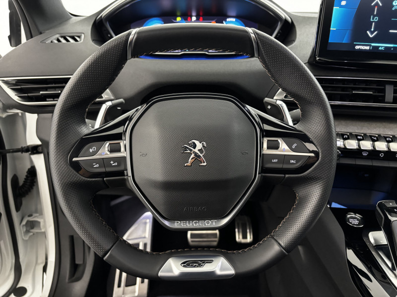 Aide graphique et sonore au stationnement AR: / Air conditionné automatique bi-zone avec aérateurs aux places AR: / Barres de toit longitudinales profilée en Aluminium: / Driver Sport Pack: / Essuie-vitre AR avec enclenchement automatique en marche AR: / Frein de stationnement électrique avec aide au démarrage en pente: / Jantes alliage 18" "Detroit" bi-ton diamantées Noir Onyx: / Kit de dépannage de pneumatique : compresseur 12 volts, flacon de produit de colmatage, anneau de remorquage, deux cales de roue, manivelle de frein de stationnement électrique: / Navigation 3D connectée avec écran tactile capacitif 10" HD Avec reconnaissance vocale, cartographie Europe, services de Navigation connectée TomTom 3 ans inclus, connexion automatique et permanente via carte SIM intégrée au véhicule: / Pack City 1: / Pack Drive Assist Plus: / Pack Eclairage d'ambiance: / Pack Safety Plus: / Pack Visibilité: / Projecteurs "Peugeot Full LED Technology" avec correction automatique de site, fonction Eclairage Virage Statique,"Foggy Mode" et feux diurnes à LED prolongés dans les projecteurs: / Pré-chauffage / climatisation du véhicule à distance: / Pédalier et repose-pied conducteur en aluminium: / Volant cuir fleur perforé avec bagues chromées et badge GT: / Accoudoir central AV à ouverture papillon, avec compartiment de rangement éclairé et réfrigérable: / Accès et démarrage mains libres: / Airbags frontaux conducteur et passager adaptatifs (passager neutralisable par clé), airbags latéraux conducteur et passager AV. airbags rideaux de tête aux places AV/AR: / Appuis-tête à sécurité optimisée réglables en hauteur sur les sièges conducteur et passager AV ainsi que sur les places latérales AR: / AVAS (système d'alerte sonore du véhicule émis à faible allure en roulage électrique, audible depuis l'extérieur pour la sécurité des piétons): / Avertisseur de temps de conduite: / Badge "HYBRID" sur ailes AV et volet de coffre: / Bandeau de pare-chocs AR chromé: / Banquette rabattable 1/3 - 2/3 (commandes dans le coffre) avec accoudoir et trappe à skis: / Boîte à gants floquée et éclairée: / Calandre GT avec design évolutif chromé: / Canules d'echappement de style chromées: / Chargeur embarqué 3,7kW: / Commande de verrouillage à distance (2 plips): / Commandes de lève-vitres avec inserts chromés: / Contrôle de la charge de la batterie à distance: / Contrôle dynamique de stabilité CDS avec antipatinage électronique ASR: / Coques de rétroviseurs extérieurs Noir Perla Nera: / Câble de recharge T2 mode 2 (10 A / 2,3 kW): / Direction assistée électrique, colonne de direction réglable en hauteur et profondeur (mécanique): / Décors de planche de bord et panneaux de portes Alcantara Gris Greval: / Décors intérieurs chromés: / Détection de sous-gonflage indirecte: / Enjoliveur d'arc de pavillon en inox: / Enjoliveur en inox sur les protecteurs de bas de portes: / Essuie-vitre AV avec système de lavage "Magic Wash": / Fonction "Mirror Screen" (Apple CarPlay / Android Auto ): / Garnissage Tissu BELOMKA / TEP: / Habitacle et ciel de pavillon Noir Mistral: / Indicateur de rapport conseillé: / Inserts d'ailes AV chromés: / Joncs de vitres latérales en inox: / Lunette AR chauffante avec antennes sérigraphiées: / Lève-vitres AV/AR électriques et séquentiels avec antipincement: / Passages de roues rapportés noirs: / PEUGEOT Connect SOS & Assistance et Teleservices: / Peugeot i-Cockpit avec combiné tête haute numérique haute qualité d'affichage, écran tactile capacitif 10" HD et volant compact multi-fonctions: / Plafonniers AV et AR avec spot de lecture: / Planche de bord surpiquée: / Plancher de coffre fixe avec articulation pour accès au coffre de rangement du câble de recharge: / Poches/filets aumonières au dos des sièges AV: / Prise USB (dans la zone connectique): / Prises USB de charge (x2) au 2ème rang: / Rétroviseur intérieur photosensible sans cadre, avec témoin lumineux de roulage en mode Electric: / Sabot de pare-chocs AV gris métallisé: / Seuils de portes AV en Inox: / Siège conducteur mécanique avec réglage lombaire: / Siège passager AV avec mise en tablette: / Sièges AV mécaniques réglages en hauteur: / Surtapis AV/AR: / Système d'antiblocage des roues ABS avec répartiteur électronique de freinage REF et assistance au freinage d'urgence AFU: / Sécurité enfants électrique des vitres AR: / Sélecteur de modes de conduite (Electric, Hybrid, Sport): / Toggle Switches chromés (touches piano d'activation des fonctions de l'écran tactile): / Toit "Black Diamond" (toit Noir Perla Nera): / Trappe de recharge électrique sur l'aile AR gauche, avec indicateur lumineux d'état de recharge: / Vitres AV feuilletées acoustiques: / Vitres latérales AR et lunette AR surteintées: / / Véhicules équivalents: C5 Aircross - Tiguan - X3