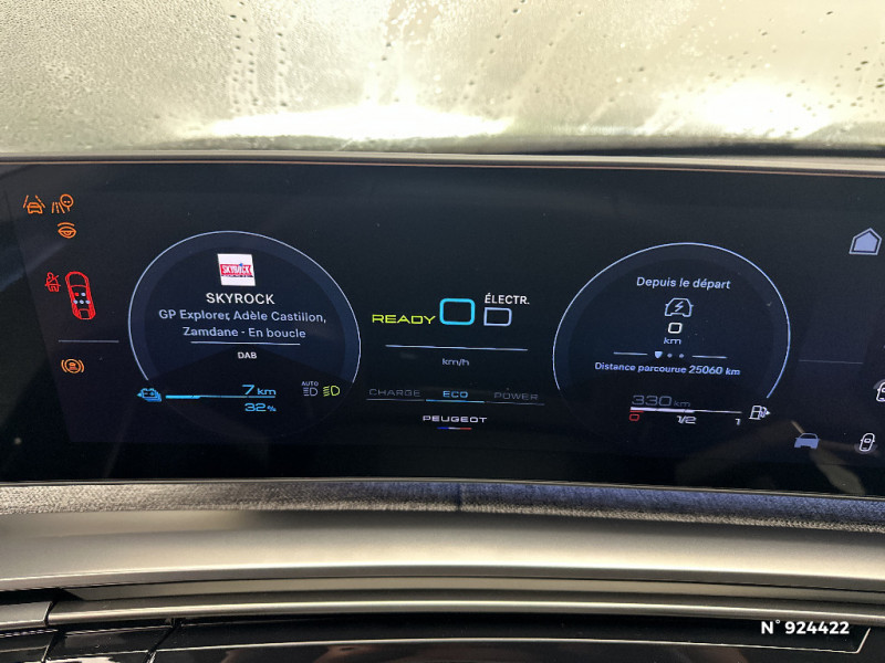 3 prises 12V 3 prises 12 V (Console centrale, AR de la console centrale, coffre) / PEUGEOT i-Connect Advanced - Connect Plus: Reconnaissance vocale connectée en langage naturel, ChatGPT (Disponibilité ultérieurement) Services de sécurité: alarme connectée (Si véhicule équipé de l'alarme,) Services à distance (E Remote Control, Remote Control, Find My Car, My Trip Report, Peugeot Skill for Alexa), Fonctions de Navigation (Trafic en temps réel, prévisions météorologiques,parking, recherche TomTom, limitations de vitesse, prix du carburant, mise à jour cartographie Over The Air, Send to Nav, Geofenci / Habitacle et ciel de pavillon noir / 6 haut-parleurs (2 tweeters et 2 woofers à l'AV et 2 larges bandes à l'AR) / Eléments de style éxterieur Bandeau entre les projecteurs Noir laqué avec logo '3008'. Calandre couleur caisse, écopes latérales Noir laqué, décor inférieur Gris Meteor, jupe inférieure Noir grainé. Vitres AR, vitres de custode et lunette AR surteintées. Lécheurs de vitres masqués. Enjoliveurs de passages de roues et protections inférieures de portes Noir grainé. Bandeau entre les feux AR Noir laqué avec lettrage 'PEUGEOT'. Pare chocs AR avec décor Gris Meteor et jupe inférieure Noir grainé, Monogrammes AV et AR / Monogrammes AR 3008 et Plug-in / Essuie-vitre AV à déclenchement automatique / Rétroviseurs extérieurs dégivrants avec réglage et rabattement électriques,éclairage de seuil / Chargeur embarqué 3,7 kW / 4 poignées de maintien rétractables (2 à l'AV et 2 à l'AR) / Surtapis AV et AR avec surpiqûres Iced Clay et logo 'GT' / Seuil de portes AV inox avec lettrage 'PEUGEOT' / Volant chauffant / Sièges AV à réglage en hauteur manuel / Rétroviseur intérieur électrochrome sans cadre / Pédalier et repose pied aluminium / Visiopark 1 Caméra de recul & aide au stationnement AV et AR, graphique et sonore / Monogrammes ailes AV: 'blason PEUGEOT' / Toit et becquet AR Black Diamond / Accès et démarrage mains libres Proximity 2 Télécommandes 3 boutons (verrouillage, coffre, déverrouillage) / Commutation adaptative des projecteurs / Volant compact, cuir fleur lisse et perforé avec commandes intégrées Noir Laqué, décors Cast Iron, surpiqûres Iced Clay, insert Noir laqué avec badge 'GT' / Drive Assist - Régulateur de vitesse adaptatif avec fonction Stop & Go / PEUGEOT i-Cockpit panoramique avec écran incurvé et flottant 21'' HD / Pare-brise feuilleté acoustique / PEUGEOT i-Toggles virtuels avec 10 raccourcis personnalisables / PEUGEOT i-Connect Advanced Navigation 3D connectée, 4 prises USB: 1 prise USB C (Data & charge) et 1 prise USB C (Charge) à l'AV, 2 prises USB C (Charge) à l'AR / Kit de dépannage de pneumatique Compresseur 12 volts, flacon de produit de colmatage, anneau de remorquage, deux cales de roue / 6 airbags: frontaux conducteur et passager auto-adaptatifs (passager neutralisable par clé), latéraux conducteur et passager AV (thorax et bassin), rideaux aux places AV et AR (tête et thorax) / Projecteurs PEUGEOT PIXEL LED Eclairage adaptatif, commutation automatique des feux de route, feux de route avec fonctions anti éblouissement et boost / Eclairage d'ambiance indirect, jour & nuit sur la planche de bord, les panneaux de portes AV et sous l'écran panoramique 21'', associé aux modes de conduite, personnalisable en 8 couleurs / Frein de stationnement électrique / Détection de sous-gonflage indirecte / Sellerie Alcantara REFLECTION embossé, accompagnement TEP Isabella, écharpe tissu RIMINI chiné, surpiqûres Iced Clay / Banquette AR avec dossier rabattable 40/20/40 / Eclairage intérieur Miroirs de courtoisie conducteur et passager occultables éclairés à LED, Plafonnier AV et lisseuses AR i-DOME tactiles à LED / Lève-vitres AV et AR électriques séquentiels avec antipincement / Jantes alliage 20'' diamantées SOFIA Noir Orbital, vernis mat avec inserts aéro, vernis brillant / Eléments de style intérieure Planche de bord moussée avec décor tissu RIMINI chiné, décor d'alcôve en Aluminium sérigraphié, faà§ade et aérateurs Noir laqué avec décor Cast Iron, Panneaux de portes avec décor tissu RIMINI chiné, décor d'alcôve en Aluminium sérigraphié et jonc Cast Iron, accoudoirs TEP Isabella, surpiqûres Iced Clay à l' AV, Console centrale avec décor tissu RIMINI chiné, faà§ade Noir laqué et jonc Cast Iron, accoudoir tissu RIMINI chiné / Monogrammes AV: 'blason PEUGEOT' et '3008' / Vitres AR, custodes et lunette AR teintées / Recharge smartphone sans fil (puissance 15W) / Câble de recharge T2 mode 2 (10 A / 2,3 kW) / Pack Safety Plus Régulateur / Limiteur de vitesse, Freinage d'urgence automatique avec alerte risque de collision, Alerte active de franchissement involontaire de ligne et bas côté, Reconnaissance étendue des panneaux de signalisation et préconisation de vitesse, Alerte attention conducteur / Plancher de coffre modulable 2 positions / Hayon motorisé avec accès mains libres / Siège conducteur à réglage lombaire manuel