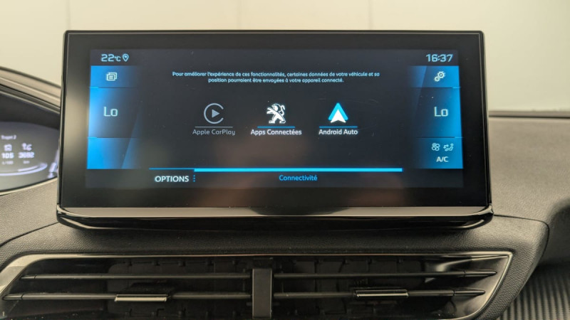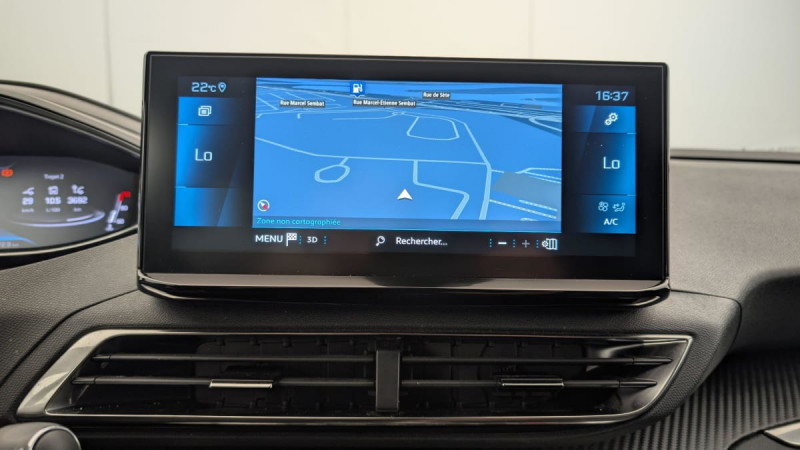 Accès et démarrage mains libres / Détection de sous-gonflage indirecte / Coques de rétroviseurs extérieurs Noir Perla Nera / Avertisseur de temps de conduite / Plancher de coffre 2 positions / Rétroviseur intérieur photosensible / Pack Safety Plus : Alerte Risque de Collision (Distance Alert) Alerte attention conducteur Commutation automatique des feux de route / feux de croisement Alerte active de franchissement involontaire de ligne et bas côté Freinage d'urgence automatique par caméra / Pack Eclairage d'ambiance : Eclairage à LED des caves à pied / Indicateur de rapport conseillé / Sécurité enfants électrique des vitres AR / Accoudoir central AV à ouverture papillon, avec compartiment de rangement éclairé et réfrigérable / Direction assistée électrique, colonne de direction réglable en hauteur et profondeur (mécanique) / Essuie-vitre AV avec système de lavage "Magic Wash" / Poches/filets aumonières au dos des sièges AV / Prise 12 V (x3 : zone connectique, AR de console et coffre) / Plafonniers AV/AR à LED avec 2 spots de lecture / Air conditionné automatique bi-zone avec aérateurs aux places AR / Kit de dépannage de pneumatique : compresseur 12 volts, flacon de produit de colmatage, anneau de remorquage, deux cales de roue, manivelle de frein de stationnement électrique / Toggle Switches chromés (touches piano d'activation des fonctions de l'écran tactile) / Calandre á damiers chromés / Frein de stationnement électrique avec aide au démarrage en pente et serrage automatique / Projecteurs "Peugeot LED Technology" avec feux diurnes à LED sous projecteurs / Drive Mode : Choix de 2 modes de conduite (Eco ou Sport) / Fonction "Mirror Screen" (Apple CarPlay / Android Auto ) / Garnissage TEP avec Tissu Colyn Mistral / Rétroviseurs extérieurs dégivrants avec réglage et rabattement électriques / Pack Visibilité : Eclairage d'accompagnement automatique Allumage automatique des feux de croisement Essuie-vitre AV à déclenchement automatique / Navigation 3D connectée avec écran tactile capacitif 10" HD Avec reconnaissance vocale, cartographie Europe / 6 airbags (Frontaux adaptatifs, latéraux AV, rideaux AV/AR) / Appuis-tête à sécurité optimisée réglables en hauteur (conducteur, passager et AR x3) / Banquette AR rabattable 1/3 - 2/3 avec accoudoir central, trappe à skis et commandes de rabattement depuis le coffre / Enjoliveur d'arc de pavillon en Inox Brillant / Enjoliveurs d'ailes AV chromés / Jantes alliage 18" diamantées DETROIT bi-ton Gris Storm brillant avec pneumatiques 225/55 R18 102 V / Pares-soleil avec miroirs de courtoisie éclairés / Passages de roues rapportés Noir Mat / Peugeot i-Cockpit avec combiné tête haute numérique, volant compact multi-fonctions / Sabot de pare-chocs AV peint Métallure / Vitres latérales AR et lunette AR chauffante surteintées / Feux AR à LED avec effet 3D, clignotants à défilement / Lève-vitres AV/AR électriques et séquentiels avec antipincement / / Véhicules équivalents: C5 Aircross - Tiguan - X3