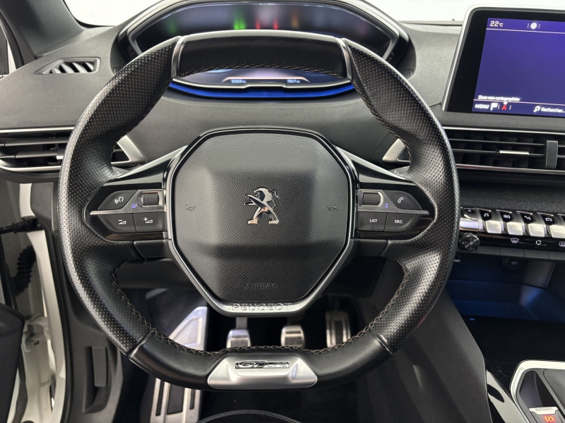 ABS, AFU, REF / Accès et démarrage mains libres / Aide sonore et graphique au stationnement AR / Airbags frontaux conducteur et passager adaptatifs (passager neutralisable par clé), airbags latéraux conducteur et passager AV. airbags rideaux de tête aux places AV/AR / Air conditionné automatique bi-zone avec aérateurs aux places AR / Avertisseur de temps de conduite / Boitiers de rétroviseurs extérieurs Noir Perla Nera / Bouclier AV exclusif et calandre à damier chromé / Calandre avec jonc périphérique et facettes chromés / Canules d'echappement de style chromées / Ceintures de sécurité AR 3 points à enrouleur (x3) avec prétensionneurs et limiteurs d'effort aux places latérales / Ceintures de sécurité AV 3 points à enrouleur, réglables en hauteur avec prétensionneurs et limiteurs d'effort / Commande de verrouillage à distance (2 plips) / Console centrale AV avec 2 porte-gobelets / Contrôle dynamique de stabilité CDS avec antipatinage électronique ASR / Décors de planche de bord et panneaux de portes en maille "Brumeo" / Décors intérieurs chromés / Détection de sous-gonflage indirecte / Eclairages intérieurs à LED / Ecran tactile capacitif 8" et "Toggles Switches" / Enjoliveur d'arc de pavillon en inox / Enjoliveur en inox sur les protecteurs de bas de portes / Fixations pour 3 sièges enfants suivant norme ISOFIX aux places passager AV et latérales AR / Fonction "Mirror Screen" / Frein de stationnement électrique avec aide au démarrage en pente / Habitacle et ciel de pavillon Noir Mistral / Inserts d'ailes AV chromés / Jantes alliage 18" "Detroit" bi-ton diamantées vernis mat / Jonc de vitres en inox / Lève-vitres AV/AR électriques et séquentiels avec antipincement / Passages de roues rapportés noirs / Pédalier et repose-pied conducteur aluminium / Peinture opaque / PEUGEOT i-Cockpit Amplify / Plafonnier AV avec spots de lecture (x2) et plafonnier AR à extinction temporisée / Plancher de coffre 2 positions / Poignées de maintien (x4) rétractables avec frein (crochets pour cintres aux places AR) / Prise 12 V (x3 : zone connectique, AR de console et coffre) / Prise USB (dans la zone connectique) / Radio 6 HP, bi-tuner compatible MP3 et connectivité Bluetooth (audio streaming, kit mains libres), avec commandes au volant, écran tactile capacitif 8" / Sabots de pare-chocs AV gris métallisé / Sécurité enfants électrique des vitres AR / Sellerie TEP & Tissu "Imila" / Seuils de portes AV en Inox / Siège passager AV mécanique avec mise en tablette / Siège passager AV mécanique réglable en hauteur / Spots de lecture (2x) AR / Surtapis AV/AR / Toit "Black Diamond" (toit Noir Perla Nera) / Vitres latérales AR et lunette AR surteintées / Volant Cuir pleine fleur perforé avec bagues chromées et badge GT Line / Kit de dépannage de pneumatique / Pack City 1 / Pack Eclairage d'ambiance / Pack Safety Plus / Pack Visibilité / Peugeot Connect / Projecteurs "Peugeot Full Led Technology" / / Véhicules équivalents: C5 Aircross - Tiguan - X3