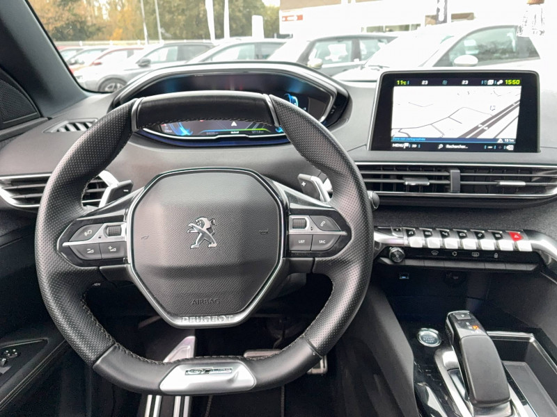Accès et démarrage mains libres / Accoudoir central AV à ouverture papillon, avec compartiment de rangement éclairé et réfrigérable / Aide graphique et sonore au stationnement AV / Airbags frontaux conducteur et passager adaptatifs (passager neutralisable par clé), airbags latéraux conducteur et passager AV.airbags rideaux de tête aux places AV/AR / Air conditionné automatique bi-zone avec aérateurs aux places AR / AVAS (système d'alerte sonore du véhicule émis à faible allure en roulage électrique, audible depuis l'extérieur pour la sécurité des piétons) / Avertisseur de temps de conduite / Badge "HYBRID" sur ailes AV et volet de coffre / Bandeau de pare-chocs AR chromé / Banquette rabattable 1/3 - 2/3 (commandes dans le coffre) avec accoudoir et trappe à skis / Boîte à gants floquée et éclairée / Boitiers de rétroviseurs extérieurs Noir Perla Nera / Bouclier AV exclusif et calandre à damier chromé / Calandre avec jonc périphérique chrome brillant et satiné, damier chromé et lettrage Peugeot noir / Canules d'echappement de style chromées / Ceintures de sécurité AR 3 points à enrouleur (x3) avec prétensionneurs et limiteurs d'effort aux places latérales / Ceintures de sécurité AV 3 points à enrouleur, réglables en hauteur avec prétensionneurs et limiteurs d'effort / Chargeur embarqué 3,7kW : câble de recharge T2 avec prise murale / Commande de verrouillage à distance (2 plips) / Contrôle de la charge de la batterie à distance / Coques de rétroviseurs extérieurs noir mat / Décors de planche de bord et panneaux de portes en maille "Brumeo" / Décors intérieurs chromés / Détection de sous-gonflage indirecte / Direction assistée électrique, colonne de direction réglable en hauteur et profondeur (mécanique) / Driver Sport Pack / Eclairage intérieur LED: plafonnier tactile 3 spots + 2 LEDs d'ambiance, 2 liseuses AR, pare-soleil, boîte à gants, accoudoir central, zone connectique, caves à pied, zone coffre (x2) / Enjoliveur d'arc de pavillon en inox / Essuie-vitre AR avec enclenchement automatique en marche AR / Essuie-vitre AV avec système de lavage "Magic Wash" / Fixations pour 3 sièges enfants suivant norme ISOFIX aux places passager AV et latérales AR / Fonction "Mirror Screen" / Frein de stationnement électrique avec aide au démarrage en pente / Habitacle et ciel de pavillon Noir Mistral / Indicateur de rapport conseillé / Inserts d'ailes AV chromés / Jantes alliage 18" "Detroit" bi-ton diamantées / Jonc de vitres en inox / Kit de dépannage de pneumatique : compresseur 12 volts, flacon de produit de colmatage, anneau de remorquage, deux cales de roue, manivelle de frein de stationnement électrique / Lève-vitres AV/AR électriques et séquentiels avec antipincement / Lunette AR chauffante avec antennes sérigraphiées / Mirror Screen / Mise en tablette du siège passager / Nouveau PEUGEOT i-Cockpit avec dalle numérique tête haute / Pack City 1 / Pack Eclairage d'ambiance / Pack Safety Plus / Pack Visibilité / Passages de roues rapportés noirs élargis / Peinture opaque Gris Hurricane / Peugeot Connect / Plafonnier AV avec spots de lecture (x2) et plafonnier AR à extinction temporisée / Plancher de coffre fixe avec articulation pour accès au coffre de rangement du câble de recharge / Poches/filets aumonières au dos des sièges AV / Poignées de portes couleur carrosserie / Pré-chauffage / climatisation du véhicule à distance / Prises 12 V (x 3 : zone connectique, AR de console et coffre) / Prise USB (dans la zone connectique) / Projecteurs antibrouillard à LED avec fonction cornering / Projecteurs "Peugeot Full Led Technology" / Radio avec écran LCD, 6HP, MP3, Bluetooth, kit mains libres, une prise USB / Réglage lombaire du siège conducteur / Rétroviseur intérieur photosensible frameless (sans cadre) avec témoin lumineux d'information roulage mode ELECTRIC / Sécurité enfants électrique des vitres AR / Sélecteur de modes de conduite (Electric, Hybrid, Sport) / Sellerie TEP & Tissu "Imila" avec médaillons de portes AV en injecté / Seuils de porte AV aluminium / Siège passager AV mécanique avec mise en tablette / Siège passager AV mécanique réglable en hauteur / Spots de lecture (2x) AR / Surtapis AV/AR / Système d'antiblocage des roues ABS avec répartiteur électronique de freinage REF et assistance au freinage d'urgence AFU / "Toggle Switches" chromés (touches "piano" d'activation des fonctions de l'écran tactile) / Toit "Black Diamond" (toit Noir Perla Nera) / Trappe de recharge électrique sur l'aile AR gauche, avec indicateur lumineux d'état de recharge / Vitres AV feuilletées acoustiques / Vitres latérales AR et lunette AR surteintées / Volant cuir fleur perforé avec bagues chromées et badge GT Line / Volant Cuir pleine fleur perforé