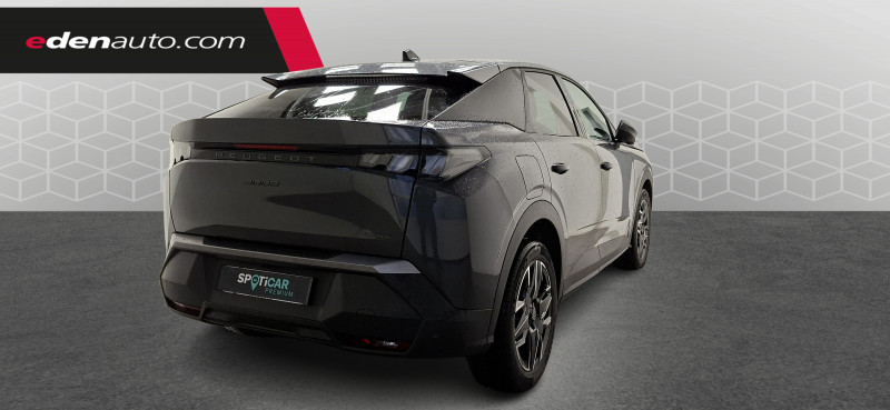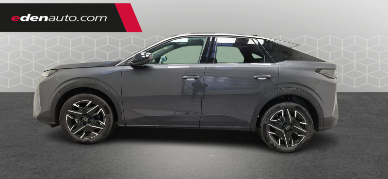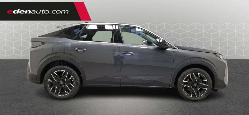 3 prises 12 V (Console centrale, rang 2, coffre) / 4 poignées de maintien rétractables (2 à l'AV et 2 à l'AR) / 6 airbags: frontaux conducteur et passager auto-adaptatifs (passager neutralisable par clé), latéraux conducteur et passager AV (thorax et bassin), rideaux aux places AV et AR (tête et thorax) / 6 HP (2 tweeters et 2 woofers à l'AV et 2 larges bandes à l'AR) / Accès et démarrage mains libres Proximity / Banquette AR avec dossier rabattable 40/20/40 / Boîte de vitesse automatique, séquentielle (6 rapports) / Détection de sous-gonflage indirecte / Eclairage intérieur Plafonnier AV et liseuses AR à LED, Boite à gants et rangement de console éclairés à LED, Eclairage des caves à pieds AV à LED / Eléments de style éxterieur Bandeau entre les projecteurs Noir laqué avec logo 3008. Calandre couleur caisse, écopes latérales Noir laqué, décor inférieur Gris Meteor, jupe inférieure Noir grainé. Vitres AR, vitres de custode et lunette AR surteintées. Lécheurs de vitres masqués. Enjoliveurs de passages de roues et protections inférieures de portes Noir grainé. Bandeau entre les feux AR Noir laqué avec lettrage PEUGEOT. Pare chocs AR avec décor Gris Meteor et jupe inférieure Noir grainé, Monogrammes AV et AR / Eléments de style intérieure Planche de bord moussée avec décor tissu RIMINI chiné et alcôve Graphène, façade et aérateurs Noir laqué avec décor Gris Stène, Panneaux de portes avec décor tissu RIMINI chiné, alcôve Graphène et jonc Gris Stène, accoudoirs TEP Isabella, surpiqûres Quartz à l'AV, Console centrale avec décor tissu RIMINI chiné, façade Noir laqué et jonc Gris Stène, accoudoir tissu RIMINI chiné / Essuie-vitre AV à déclenchement automatique / Frein de stationnement électrique / Habitacle et ciel de pavillon Noir / Jantes alliage 19" diamantées Lulea Noir Orbital, vernis brillant / Lève-vitres AV/AR électriques et séquentiels avec antipincement / Monogrammes AR 3008 et Hybrid / Monogrammes AV: blason PEUGEOT et 3008 / Pack Safety Plus Régulateur / Limiteur de vitesse, Freinage d'urgence automatique avec alerte risque de collision et protection des usagers de la route vulnérables (piétons, cyclistes,... ) Alerte active de franchissement involontaire de ligne et bas côté, Reconnaissance étendue des panneaux de signalisation et préconisation de vitesse, Alerte attention conducteur / Pare-brise feuilleté acoustique / PEUGEOT i-Cockpit panoramique avec Double écran HD flottant (2 x 10'') / PEUGEOT i-Connect - Connect One: Fonctionnalités principales à bord (Mises à jour Over The Air, Géolocalisation), Services de sécurité (Appel d'urgence, Peugeot Assistance), Services d'entretien (Télémaintenance, guide d'utilisation digital), (Abonnement 10 ans inclus) / PEUGEOT i-Connect - Connect Plus: Services de sécurité: alarme connectée, Services à distance (E-Remote Control, Remote Control, Find My Car, My Trip Report, Peugeot Skill for Alexa), e-ROUTES par Free2move charge, (Abonnement 6 mois inclus, renouvellement 8 ? / mois) / PEUGEOT i-Connect Radio DAB, Bluetooth (connexion 2 téléphones), Mirror Screen sans fil (Apple CarPlay / Android Auto), Peugeot Connect SOS & Assistance, 1 prise USB C (Data & charge) / Plancher de coffre modulable 2 positions / Projecteurs "Peugeot Led Technology" / Rétroviseur intérieur électrochrome / Rétroviseurs extérieurs dégivrants avec réglage et rabattement électriques, éclairage de seuil / Sellerie tissu CRISPY embossé, accompagnement TEP Isabella, écharpe tissu RIMINI chiné, surpiqûres Quartz / Sièges AV à réglage en hauteur manuel / Visiopark 1 Caméra de recul & aide au stationnement AR, graphique et sonore / Volant compact croûte de cuir avec commandes intégrées Noir laqué, décors Gris Stène