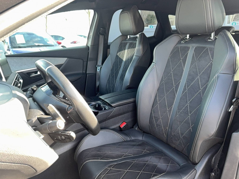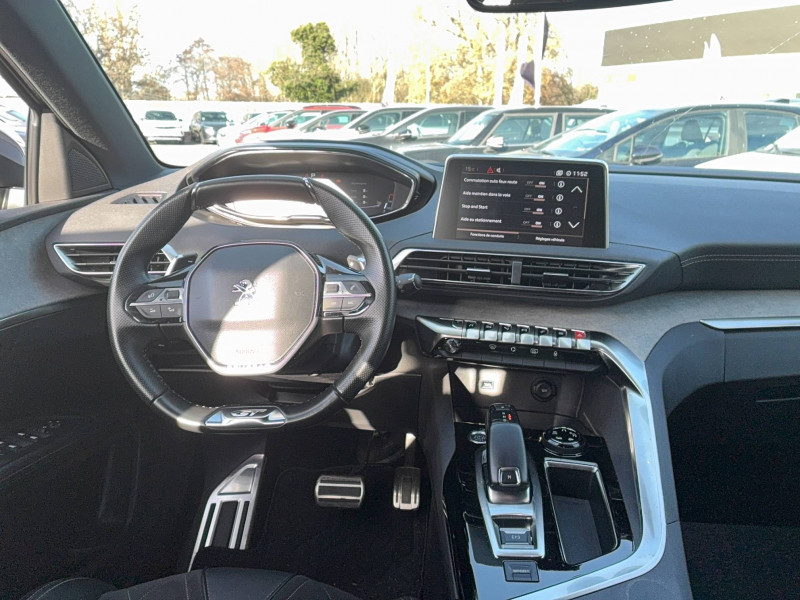 ABS, AFU, REF / Accès et démarrage mains libres / Accoudoir central AV à ouverture papillon, avec compartiment de rangement éclairé et réfrigérable / Aide sonore et graphique au stationnement AR / Airbags frontaux conducteur et passager adaptatifs (passager neutralisable par clé), airbags latéraux conducteur et passager AV.airbags rideaux de tête aux places AV/AR / Air conditionné automatique bi-zone avec aérateurs aux places AR / Appuis-tête à sécurité optimisée réglables en hauteur sur les sièges conducteur et passager AV ainsi que sur les places latérales AR / Avertisseur de temps de conduite / Bandeau de pare-chocs AR chromé / Banquette AR rabattable 1/3 - 2/3 (avec modularité "Magic Flat" et commandes dans le coffre) avec accoudoir et trappe à skis / Barres de toit longitudinales profilée en Aluminium / Boîte à gants floquée et éclairée / Boitiers de rétroviseurs extérieurs chromés / Calandre avec jonc périphérique chrome brillant et satiné, damier chromé et lettrage Peugeot noir / Canules d'echappement de style chromées / Ceintures de sécurité AR 3 points à enrouleur (x3) avec prétensionneurs et limiteurs d'effort aux places latérales / Ceintures de sécurité AV 3 points à enrouleur, réglables en hauteur avec prétensionneurs et limiteurs d'effort / Commande de verrouillage à distance (2 plips) / Console centrale AV avec 2 porte-gobelets / Contrôle dynamique de stabilité CDS avec antipatinage électronique ASR / Décor intérieur chrome satin / Décors de planche de bord et panneaux de portes Alcantara / Détection de sous-gonflage indirecte / Direction assistée électrique, colonne de direction réglable en hauteur et profondeur (mécanique) / Eclairage intérieur LED: plafonnier tactile 3 spots + 2 LEDs d'ambiance, 2 liseuses AR, pare-soleil, boîte à gants, accoudoir central, zone connectique, caves à pied, zone coffre (x2) / Ecran tactile capacitif 8" et "Toggles Switches" / Ecrous de roues antivol / Enjoliveur d'arc de pavillon en inox / Enjoliveur en inox sur les protecteurs de bas de portes / Essuie-vitre AR avec enclenchement automatique en marche AR / Essuie-vitre AV avec système de lavage "Magic Wash" / Fixations pour 3 sièges enfants suivant norme ISOFIX aux places passager AV et latérales AR / Fonction "Mirror Screen" / Frein de stationnement électrique avec aide au démarrage en pente / Habitacle et ciel de pavillon Noir Mistral / Hayon mains libres / Indicateur de rapport conseillé / Inserts d'ailes AV chromés / Jantes alliage 19" "Boston" bi-ton diamantées vernis mat / Jonc de vitres en inox / Kit de dépannage de pneumatique / Lève-vitres AV/AR électriques et séquentiels avec antipincement / Lunette AR chauffante avec antennes sérigraphiées / Pack City 1 / Pack Drive Assist / Pack Eclairage d'ambiance / Pack Safety Plus / Pack Visibilité / Passages de roues rapportés noirs élargis / Pédalier et repose-pied conducteur aluminium / Peinture opaque / Peugeot Connect / PEUGEOT i-Cockpit Amplify / Plafonnier AV avec spots de lecture (x2) et plafonnier AR à extinction temporisée / Planche de bord surpiquée / Plancher de coffre 2 positions / Poches/filets aumonières au dos des sièges AV / Poignées de maintien (x4) rétractables avec frein (crochets pour cintres aux places AR) / Poignées de portes couleur carrosserie / Prise 12 V (x3 : zone connectique, AR de console et coffre) / Prise USB (dans la zone connectique) / Projecteurs "Peugeot Full Led Technology" / Radio 6 HP, bi-tuner compatible MP3 et connectivité Bluetooth (audio streaming, kit mains libres), avec commandes au volant, écran tactile capacitif 8" / Sabots de pare-chocs AV gris métallisé / Sécurité enfants électrique des vitres AR / Seuils de portes AV en Inox / Siège passager AV mécanique avec mise en tablette / Siège passager AV mécanique réglable en hauteur / Spots de lecture (2x) AR / Surtapis AV/AR / Toit "Black Diamond" (toit Noir Perla Nera) / Vitres latérales AR et lunette AR surteintées / Volant Cuir pleine fleur perforé avec bagues chromé et badge GT
