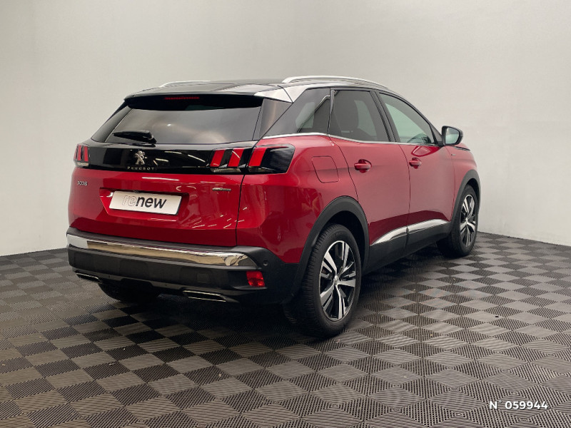 Surtapis AV et AR / Peinture opaque / Projecteurs "Peugeot Full Led Technology" / Pack City 1 / Visiopark 1 / Toit "Black Diamond" (toit Noir Perla Nera) / Ceintures de sécurité AV 3 points à enrouleur, réglables en hauteur avec prétensionneurs et limiteurs d'effort / Accès et démarrage mains libres / Ceintures de sécurité AR 3 points à enrouleur (x3) avec prétensionneurs et limiteurs d'effort aux places latérales / Contrôle dynamique de stabilité CDS avec antipatinage électronique ASR / Sécurité enfants électrique des vitres AR / Passages de roues rapportés noirs / Décors intérieurs chromés / Console centrale AV avec 2 porte-gobelets / Plafonnier AV avec spots de lecture (x2) et plafonnier AR à extinction temporisée / Poignées de maintien (x4) rétractables avec frein (crochets pour cintres aux places AR) / Prise USB (dans la zone connectique) / Prise 12V (x3 : zone connectique, AR de console et coffre) / Fixations pour 3 sièges enfants suivant norme ISOFIX aux places passager AV et latérales AR / Aide sonore et graphique au stationnement AR / Air conditionné automatique bi-zone avec aérateurs aux places AR / Commande de verrouillage à distance (2 plips) / Mirror Screen / Airbags frontaux conducteur et passager adaptatifs (passager neutralisable par clé), airbags latéraux conducteur et passager AV, airbags rideaux de tête aux places AV et AR / Siège passager AV mécanique réglable en hauteur / Siège passager AV mécanique avec mise en tablette / Spots de lecture (2x) AR / Fonction "Mirror Screen" / Radio 6 HP, bi-tuner compatible MP3 et connectivité Bluetooth (audio streaming, kit mains libres), avec commandes au volant, écran tactile capacitif 8" / Pack Visibilité / ABS, AFU, REF / Lève-vitres électriques AV et AR séquentiels avec antipincement / Kit de dépannage de pneumatique / Frein de stationnement électrique avec aide au démarrage en pente / Vitres latérales AR et lunette AR surteintées / PEUGEOT i-Cockpit Amplify / Peugeot Connect / Avertisseur de temps de conduite / Calandre avec jonc périphérique et facettes chromés / Enjoliveur d'arc de pavillon en inox / Plancher de coffre 2 positions / Réglage en hauteur du siège conducteur / Inserts d'ailes AV chromés / Ecran tactile capacitif 8" et "Toggles Switches" / Pack Safety Plus / Jantes alliage 18" "Detroit" bi-ton diamantées / Enjoliveur en inox sur les protecteurs de bas de portes / Sabots de pare-chocs AV gris métallisé / Décors de planche de bord et panneaux de portes en maille "Brumeo" / Pack Eclairage d'ambiance / Mise en tablette du siège passager / Projecteurs antibrouillard à LED avec fonction cornering / Jantes alliage 18" "Detroit" bi-ton diamantées vernis mat / Boitiers de rétroviseurs extérieurs Noir Perla Nera / Sellerie TEP & Tissu "Imila" / Bouclier AV exclusif et calandre à damier chromé / Canules d'echappement de style chromées / Jonc de vitres en inox / Habitacle et ciel de pavillon Noir Mistral / Volant Cuir pleine fleur perforé avec bagues chromées et badge GT Line / Pédalier et repose-pied conducteur aluminium / Détection de sous-gonflage indirecte / Réglage en hauteur du siège passager (mécanique) / Seuils de portes AV inox