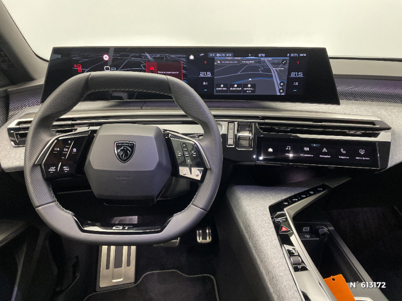 Sellerie tissu NEW UZIRIS embossé, accompagnement TEP Isabella, écharpe tissu RIMINI chiné, surpiqûres Iced Clay / Pack Safety Plus Régulateur / Limiteur de vitesse, Freinage d'urgence automatique avec alerte risque de collision, Alerte active de franchissement involontaire de ligne et bas côté, Reconnaissance étendue des panneaux de signalisation et préconisation de vitesse, Alerte attention conducteur / Sellerie Alcantara REFLECTION embossé, accompagnement TEP Isabella, écharpe tissu RIMINI chiné, surpiqûres Iced Clay / Recharge smartphone sans fil (puissance 15W) / Drive Assist - Régulateur de vitesse adaptatif avec fonction Stop & Go / PEUGEOT i-Cockpit panoramique avec écran incurvé et flottant 21'' HD / PEUGEOT i-Toggles virtuels avec 10 raccourcis personnalisables / Habitacle et ciel de pavillon noir / Plancher de coffre modulable 2 positions / Kit de dépannage de pneumatique Compresseur 12 volts, flacon de produit de colmatage, anneau de remorquage, deux cales de roue / Frein de stationnement électrique / Essuie-vitre AV à déclenchement automatique / Vitres AR, custodes et lunette AR teintées / Banquette AR avec dossier rabattable 40/20/40 / Pédalier et repose pied aluminium / Eléments de style éxterieur Bandeau entre les projecteurs Noir laqué avec logo '3008'. Calandre couleur caisse, écopes latérales Noir laqué, décor inférieur Gris Meteor, jupe inférieure Noir grainé. Vitres AR, vitres de custode et lunette AR surteintées. Lécheurs de vitres masqués. Enjoliveurs de passages de roues et protections inférieures de portes Noir grainé. Bandeau entre les feux AR Noir laqué avec lettrage 'PEUGEOT'. Pare chocs AR avec décor Gris Meteor et jupe inférieure Noir grainé, Monogrammes AV et AR / Monogrammes AV: 'blason PEUGEOT' et '3008' / Monogrammes AR '3008' et 'Hybrid / Accès et démarrage mains libres Proximity 2 Télécommandes 3 boutons (verrouillage, coffre, déverrouillage) / Sièges AV à réglage en hauteur manuel / Siège conducteur à réglage lombaire manuel / Pare-brise feuilleté acoustique / PEUGEOT i-Connect Advanced - Connect Plus: Reconnaissance vocale connectée en langage naturel, ChatGPT (Disponibilité ultérieurement) Services de sécurité: alarme connectée (Si véhicule équipé de l'alarme,) Services à distance (E Remote Control, Remote Control, Find My Car, My Trip Report, Peugeot Skill for Alexa), Fonctions de Navigation (Trafic en temps réel, prévisions météorologiques,parking, recherche TomTom, limitations de vitesse, prix du carburant, mise à jour cartographie Over The Air, Send to Nav, Geofenci / 3 prises 12V 3 prises 12 V (Console centrale, AR de la console centrale, coffre) / Lève-vitres AV et AR électriques séquentiels avec antipincement / Détection de sous-gonflage indirecte / Monogrammes ailes AV: 'blason PEUGEOT' / Toit et becquet AR Black Diamond / Eléments de style intérieure Planche de bord moussée avec décor tissu RIMINI chiné, décor d'alcôve en Aluminium sérigraphié, faà§ade et aérateurs Noir laqué avec décor Cast Iron, Panneaux de portes avec décor tissu RIMINI chiné, décor d'alcôve en Aluminium sérigraphié et jonc Cast Iron, accoudoirs TEP Isabella, surpiqûres Iced Clay à l' AV, Console centrale avec décor tissu RIMINI chiné, faà§ade Noir laqué et jonc Cast Iron, accoudoir tissu RIMINI chiné / Eclairage d'ambiance indirect, jour & nuit sur la planche de bord, les panneaux de portes AV et sous l'écran panoramique 21'', associé aux modes de conduite, personnalisable en 8 couleurs / Seuil de portes AV inox avec lettrage 'PEUGEOT' / Surtapis AV et AR avec surpiqûres Iced Clay et logo 'GT' / Volant compact, cuir fleur lisse et perforé avec commandes intégrées Noir Laqué, décors Cast Iron, surpiqûres Iced Clay, insert Noir laqué avec badge 'GT' / Commutation adaptative des projecteurs / Eclairage intérieur Miroirs de courtoisie conducteur et passager occultables éclairés à LED, Plafonnier AV et lisseuses AR i-DOME tactiles à LED / Volant chauffant / Jantes alliage 19" diamantées BREDA Noir Orbital, vernis brillant / 6 airbags: frontaux conducteur et passager auto-adaptatifs (passager neutralisable par clé), latéraux conducteur et passager AV (thorax et bassin), rideaux aux places AV et AR (tête et thorax) / Visiopark 1 Caméra de recul & aide au stationnement AV et AR, graphique et sonore / Projecteurs PEUGEOT PIXEL LED Eclairage adaptatif, commutation automatique des feux de route, feux de route avec fonctions anti éblouissement et boost / Hayon motorisé avec accès mains libres / Rétroviseur intérieur électrochrome sans cadre / Rétroviseurs extérieurs dégivrants avec réglage et rabattement électriques,éclairage de seuil / 6 haut-parleurs (2 tweeters et 2 woofers à l'AV et 2 larges bandes à l'AR) / 2 prises 12 V (Console centrale, coffre) / 4 poignées de maintien rétractables (2 à l'AV et 2 à l'AR) / PEUGEOT i-Connect Advanced Navigation 3D connectée, 4 prises USB: 1 prise USB C (Data & charge) et 1 prise USB C (Charge) à l'AV, 2 prises USB C (Charge) à l'AR