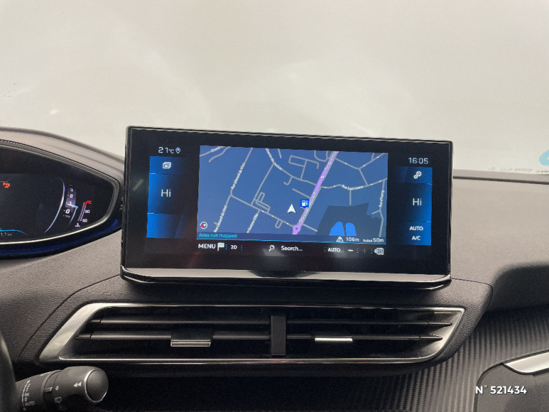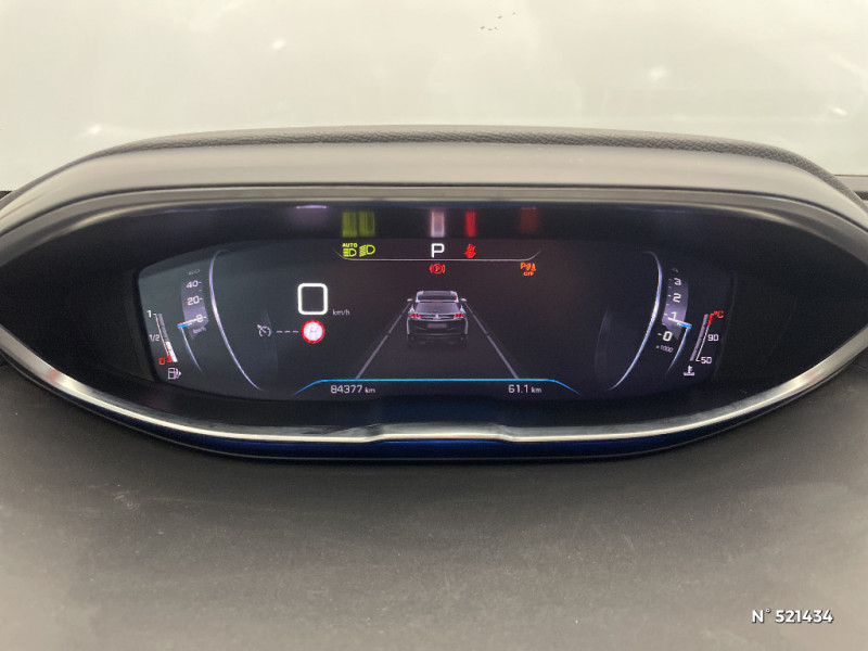 Pack Safety Plus / Enjoliveur en inox sur les protecteurs de bas de portes / Bandeau de pare-chocs AR chromé / Prise 12V (x3 : zone connectique, AR de console et coffre) / Détection de sous-gonflage indirecte / Sabots de pare-chocs AV gris métallisé / Ceintures de sécurité AV 3 points à enrouleur, réglables en hauteur avec prétensionneurs et limiteurs d'effort / Commande de verrouillage à distance (2 plips) / Appuis-tête à sécurité optimisée réglables en hauteur sur les sièges conducteur et passager AV ainsi que sur les places latérales AR / Banquette AR rabattable 1/3 - 2/3 (avec modularité "Magic Flat" et commandes dans le coffre) avec accoudoir et trappe à skis / Prise USB (dans la zone connectique) / Passages de roues rapportés noirs / Décors intérieurs chromés / Accoudoir central AV à ouverture papillon, avec compartiment de rangement éclairé et réfrigérable / Radio avec fonction DAB,bi-tuner compatible MP3 et connectivité Bluetooth (audio streaming, kit mains libres), avec commandes au volant, 6 HP, écran tactile capacitif 10" HD / Peugeot i-Cockpit avec combiné tête haute numérique haute qualité d'affichage, écran tactile capacitif 10" HD et volant compact multi-fonctions / Sabot de pare-chocs AV gris métallisé / Boîte à gants floquée et éclairée / Décors intérieurs (baguettes de planche de bord et panneaux de portes, enjoliveur de console) chromés / Lève-vitres AV et AR électriques séquentiels avec antipincement / Système d'antiblocage des roues ABS avec répartiteur électronique de freinage REF et assistance au freinage d'urgence AFU / Calandre à¡ damiers chromés / Coques de rétroviseurs extérieurs Noir Perla Nera / Vitres latérales AR et lunette AR surteintées / Eclairage intérieur à LED: plafonniers / Navigation 3D connectée avec écran tactile capacitif 10" HD Avec reconnaissance vocale, cartographie Europe, services de Navigation connectée TomTom 3 ans inclus, connexion automatique et permanente via carte SIM intégrée au véhicule / Sièges AV mécaniques réglages en hauteur / Plafonniers AV et AR avec spot de lecture / Peugeot i-Cockpit avec combiné tête haute numérique haute qualité d'affichage, écran tactile capacitif 10" et volant compact multi-fonctions / "Toggle Switches" chromés (touches "piano" d'activation des fonctions de l'écran tactile) / PEUGEOT Connect SOS & Assistance et Teleservices / Seuils de portes AV en Inox / Peugeot Connect: Ecran tactile capacitif 10'' HD,navigation 3D connectée avec reconnaissance vocale aux services de Navigation connectée TomTom, SOS & Assistance, Teleservices / Radio avec fonction DAB,bi-tuner compatible MP3 et connectivité Bluetooth (audio streaming, kit mains libres), avec commandes au volant, 6 HP, écran tactile capacitif 8'' / Drive Mode : Choix de 2 modes de conduite (Eco ou Sport) / Siège conducteur mécanique avec réglage lombaire / Projecteurs "Peugeot LED Technology" avec feux diurnes à LED sous projecteurs / Jantes alliage 18" "Detroit" bi-ton diamantées Gris Storm / Pack Visibilité / Reconnaissance étendue des panneaux (Stop, Sens interdit) et préconisation des panneaux de vitesse / Kit de dépannage de pneumatique : compresseur 12 volts, flacon de produit de colmatage, anneau de remorquage, deux cales de roue, manivelle de frein de stationnement électrique / Inserts d'ailes AV chromés / Plancher de coffre 2 positions / Aide graphique et sonore au stationnement AR / Air conditionné automatique bi-zone avec aérateurs aux places AR / Poches/filets aumonières au dos des sièges AV / Reconnaissance étendue des panneaux / Pack City 1 / Fonction "Mirror Screen" (Apple CarPlay / Android Auto ) / Contrôle dynamique de stabilité CDS avec antipatinage électronique ASR / Garnissage TEP avec Tissu Colyn Mistral / Lunette AR chauffante avec antennes sérigraphiées / Indicateur de rapport conseillé / Sécurité enfants électrique des vitres AR / Essuie-vitre AR avec enclenchement automatique en marche AR / Surtapis AV et AR / Frein de stationnement électrique avec aide au démarrage en pente / Mirror Screen (compatible Mirrorlink, Apple CarPlay, Android Auto) / Sans barres de toit longitudinales / Enjoliveur d'arc de pavillon en inox / Décors de planche de bord et panneaux de portes aspect carbone / Direction assistée électrique, colonne de direction réglable en hauteur et profondeur (mécanique) / Lunette et vitres latérales AR surteintée / "Toggle Switches" chromés (touches 'piano' d'activation des fonctions de l'écran tactile) / Essuie-vitre AV avec système de lavage "Magic Wash" / Avertisseur de temps de conduite / Ceintures de sécurité 3 points à enrouleur (x3) au 2ème rang, avec prétensionneurs et limiteurs d'effort aux places latérales / Airbags frontaux conducteur et passager adaptatifs (passager neutralisable par clé), airbags latéraux conducteur et passager AV, airbags rideaux de tête aux places AV et AR