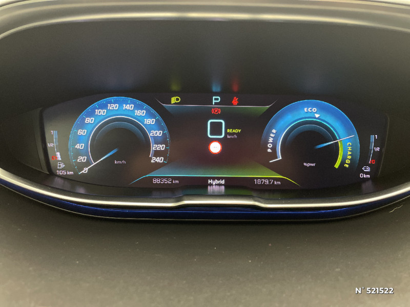 Accoudoir central AV à ouverture papillon, avec compartiment de rangement éclairé et réfrigérable / Système d'antiblocage des roues ABS avec répartiteur électronique de freinage REF et assistance au freinage d'urgence AFU / Calandre à¡ damiers chromés / Chargeur embarqué 3,7 kW / Lève-vitres AV et AR électriques séquentiels avec antipincement / Eclairage intérieur à LED: plafonniers / Sièges AV mécaniques réglages en hauteur / Coques de rétroviseurs extérieurs Noir Perla Nera / Plafonniers AV et AR avec spot de lecture / Siège conducteur mécanique avec réglage lombaire / Vitres latérales AR et lunette AR surteintées / PEUGEOT Connect SOS & Assistance et Teleservices / Seuils de portes AV en Inox / Navigation 3D connectée avec écran tactile capacitif 10" HD Avec reconnaissance vocale, cartographie Europe, services de Navigation connectée TomTom 3 ans inclus, connexion automatique et permanente via carte SIM intégrée au véhicule / Peugeot Connect: Ecran tactile capacitif 10'' HD,navigation 3D connectée avec reconnaissance vocale aux services de Navigation connectée TomTom, SOS & Assistance, Teleservices / Pack Visibilité / Peugeot i-Cockpit avec combiné tête haute numérique haute qualité d'affichage, écran tactile capacitif 10" et volant compact multi-fonctions / "Toggle Switches" chromés (touches "piano" d'activation des fonctions de l'écran tactile) / Projecteurs "Peugeot LED Technology" avec feux diurnes à LED sous projecteurs / Jantes alliage 18" "Detroit" bi-ton diamantées Gris Storm / Radio avec fonction DAB,bi-tuner compatible MP3 et connectivité Bluetooth (audio streaming, kit mains libres), avec commandes au volant, 6 HP, écran tactile capacitif 10" HD / Drive Mode : Choix de 2 modes de conduite (Eco ou Sport) / Reconnaissance étendue des panneaux (Stop, Sens interdit) et préconisation des panneaux de vitesse / Rétroviseur intérieur photosensible frameless (sans cadre) avec témoin lumineux d'information roulage mode ELECTRIC / Siège conducteur à réglage lombaire manuel / Frein de stationnement électrique avec aide au démarrage en pente / Direction assistée électrique, colonne de direction réglable en hauteur et profondeur (mécanique) / Essuie-vitre AV avec système de lavage "Magic Wash" / "Toggle Switches" chromés (touches 'piano' d'activation des fonctions de l'écran tactile) / Lunette et vitres latérales AR surteintée / Peugeot i-Cockpit avec combiné tête haute numérique reconfigurable, écran tactile capacitif 10" et volant compact multi-fonctions / Kit de dépannage de pneumatique : compresseur 12 volts, flacon de produit de colmatage, anneau de remorquage, deux cales de roue, manivelle de frein de stationnement électrique / Ceintures de sécurité 3 points à enrouleur (x3) au 2ème rang, avec prétensionneurs et limiteurs d'effort aux places latérales / Eclairage intérieur à LED / Détection de sous-gonflage indirecte / Chargeur embarqué 3,7kW : câble de recharge T2 avec prise murale / Pack Safety Plus / Enjoliveur en inox sur les protecteurs de bas de portes / Bandeau de pare-chocs AR chromé / Sabots de pare-chocs AV gris métallisé / Avertisseur de temps de conduite / Ceintures de sécurité AV 3 points à enrouleur, réglables en hauteur avec prétensionneurs et limiteurs d'effort / Prise USB (dans la zone connectique) / Prise 12V (x3 : zone connectique, AR de console et coffre) / Commande de verrouillage à distance (2 plips) / Boîte à gants floquée et éclairée / Peugeot i-Cockpit avec combiné tête haute numérique haute qualité d'affichage, écran tactile capacitif 10" HD et volant compact multi-fonctions / Sabot de pare-chocs AV gris métallisé / Câble de recharge T2 mode 2 (10 A / 2,3 kW) / Airbags frontaux conducteur et passager adaptatifs (passager neutralisable par clé), airbags latéraux conducteur et passager AV, airbags rideaux de tête aux places AV et AR / Décors intérieurs chromés / Inserts d'ailes AV chromés / Pack City 1 / Décors intérieurs (baguettes de planche de bord et panneaux de portes, enjoliveur de console) chromés / Sièges AV mécaniques à réglage manuel en hauteur / Lunette AR chauffante avec antennes sérigraphiées / Air conditionné automatique bi-zone avec aérateurs aux places AR / Poches/filets aumonières au dos des sièges AV / Reconnaissance étendue des panneaux / Appuis-tête à sécurité optimisée réglables en hauteur sur les sièges conducteur et passager AV ainsi que sur les places latérales AR / Garnissage TEP avec Tissu Colyn Mistral / Vitres AV feuilletées acoustiques / Aide graphique et sonore au stationnement AR / Sécurité enfants électrique des vitres AR / Passages de roues rapportés noirs / Fonction "Mirror Screen" (Apple CarPlay / Android Auto ) / Contrôle dynamique de stabilité CDS avec antipatinage électronique ASR / Indicateur de rapport conseillé / Contrôle de la charge de la batterie à distance / Pré-chauffage / climatisation du véhicule à distance / Banquette rabattable 1/3 - 2/3 (commandes dans le coffre) avec accoudoir et trappe à skis / Plancher de coffre fixe avec articulation pour accès au coffre de rangement du câble de recharge / Rétroviseur intérieur photosensible sans cadre, avec témoin lumineux de roulage en mode Electric / Badge "HYBRID" sur ailes AV et volet de coffre / Enjoliveur d'arc de pavillon en inox / Sélecteur de modes (Electric, Hybrid, Sport) / Mirror Screen (compatible Mirrorlink, Apple CarPlay, Android Auto) / Essuie-vitre AR avec enclenchement automatique en marche AR / Sans barres de toit longitudinales / Décors de planche de bord et panneaux de portes aspect carbone / AVAS (système d'alerte sonore du véhicule émis à faible allure en roulage électrique, audible depuis l'extérieur pour la sécurité des piétons) / Trappe de recharge électrique sur l'aile AR gauche, avec indicateur lumineux d'état de recharge