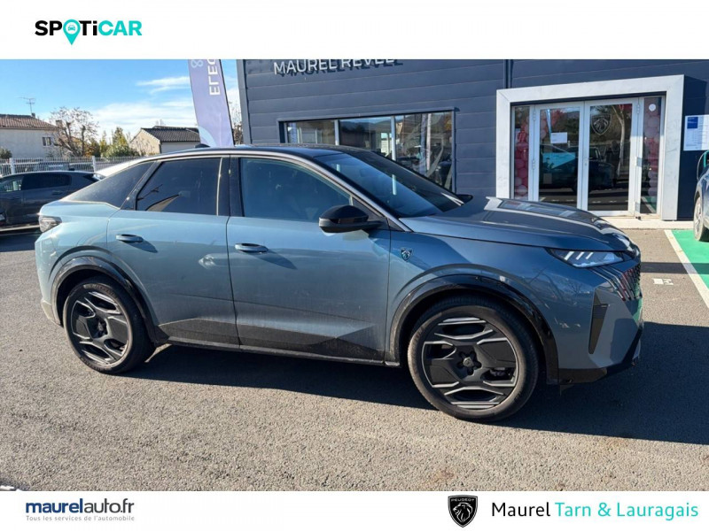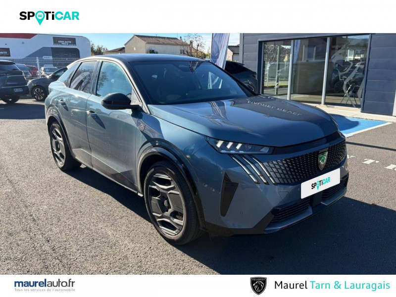 Accès et démarrage mains libres Proximity / Boîte automatique à variation continue / Commutation automatique des feux de route / Eclairage d'ambiance indirect, jour & nuit sur la planche de bord, les panneaux de portes AV et sous l'écran panoramique 21'', associé aux modes de conduite, personnalisable en 8 couleurs / Eclairage intérieur Miroirs de courtoisie conducteur et passager occultables éclairés à LED / Eléments de style intérieure Planche de bord moussée avec décor tissu RIMINI chiné, décor d'alcôve en Aluminium sérigraphié, façade et aérateurs Noir laqué avec décor Cast Iron, Panneaux de portes avec décor tissu RIMINI chiné, décor d'alcôve en Aluminium sérigraphié et jonc Cast Iron, accoudoirs TEP Isabella, surpiqûres Iced Clay à l' AV, Console centrale avec décor tissu RIMINI chiné, façade Noir laqué et jonc Cast Iron, accoudoir tissu RIMINI chiné / Essuie-vitre AV à déclenchement automatique / Frein de stationnement électrique / Hayon motorisé avec accès mains libres / Jantes alliage 20'' diamantées SOFIA Noir Orbital, vernis mat avec inserts aéro, vernis brillant / Pack Safety Plus Régulateur / Limiteur de vitesse, Freinage d'urgence automatique avec alerte risque de collision et protection des usagers de la route vulnérables (piétons, cyclistes,... ) Alerte active de franchissement involontaire de ligne et bas côté, Reconnaissance étendue des panneaux de signalisation et préconisation de vitesse, Alerte attention conducteur / PEUGEOT i-Cockpit panoramique avec écran incurvé et flottant 21'' HD / PEUGEOT i-Connect Advanced Navigation 3D connectée, 4 prises USB: 1 prise USB C (Data & charge) et 1 prise USB C (Charge) à l'AV, 2 prises USB C (Charge) à l'AR / PEUGEOT i-Connect Advanced: - Connect Plus: reconnaissance vocale connectée en langage naturel, Services de sécurité: alarme connectée, Services à distance (E Remote Control, Remote Control, Find My Car, My Trip Report, Peugeot Skill for Alexa), Fonctions de Navigation (Trafic en temps réel, prévisions météorologiques,parking, recherche TomTom, limitations de vitesse, prix du carburant, mise à jour cartographie Over The Air, Send to Nav, Geofencing, recharges publiques, Trip Planner / EV routing, e ROUTE par Free2move charge / Projecteurs PEUGEOT PIXEL LED Eclairage adaptatif, commutation automatique des feux de route, feux de route avec fonctions anti éblouissement et boost / Pédalier et repose pied aluminium / Toit et becquet AR Black Diamond / Visiopark 1 Caméra de recul & aide au stationnement AV et AR, graphique et sonore / Volant compact, cuir fleur lisse et perforé avec commandes intégrées Noir Laqué, décors Cast Iron, surpiqûres Iced Clay, insert Noir laqué avec badge ?GT' / 2 prises 12 V (Console centrale, coffre) / 4 poignées de maintien rétractables (2 à l'AV et 2 à l'AR) / 6 airbags: frontaux conducteur et passager auto-adaptatifs (passager neutralisable par clé), latéraux conducteur et passager AV (thorax et bassin), rideaux aux places AV et AR (tête et thorax) / 6 HP (2 tweeters et 2 woofers à l'AV et 2 larges bandes à l'AR) / Banquette AR avec dossier rabattable 40/20/40 / Chargeur embarqué 11kW triphasé / Commutation adaptative des projecteurs / Câble électrique mode 3 triphasé 22 kW / Drive Assist - Régulateur de vitesse adaptatif avec fonction Stop & Go / Détection de sous-gonflage indirecte / Eléments de style extérieur Jupes inférieures AV et AR, enjoliveurs de passages de roues et protections inférieures de portes Noir laqué / Fonction préchauffage de la batterie de traction / Habitacle et ciel de pavillon Noir / Lève-vitres AV/AR électriques et séquentiels avec antipincement / Monogrammes ailes AV: 'blason PEUGEOT' / Monogrammes AR E3008 / Monogrammes AV: blason PEUGEOT et 3008 / Pare-brise feuilleté acoustique / PEUGEOT i-Toggles virtuels avec 10 raccourcis personnalisables / Plancher de coffre modulable 2 positions / Rétroviseurs extérieurs dégivrants avec réglage et rabattement électriques, éclairage de seuil / Seuil de portes AV inox avec lettrage PEUGEOT / Siège conducteur à réglage lombaire manuel / Sièges AV à réglage en hauteur manuel / Surtapis AV et AR avec surpiqûres Iced Clay et logo GT / Volant chauffant